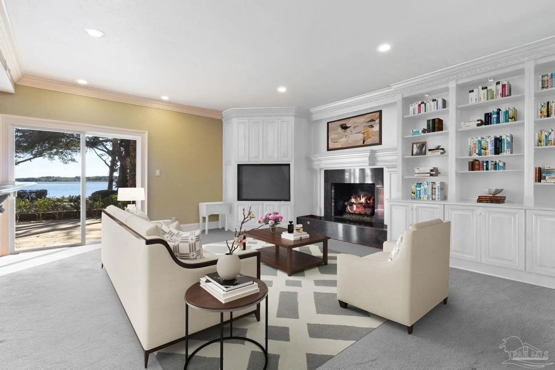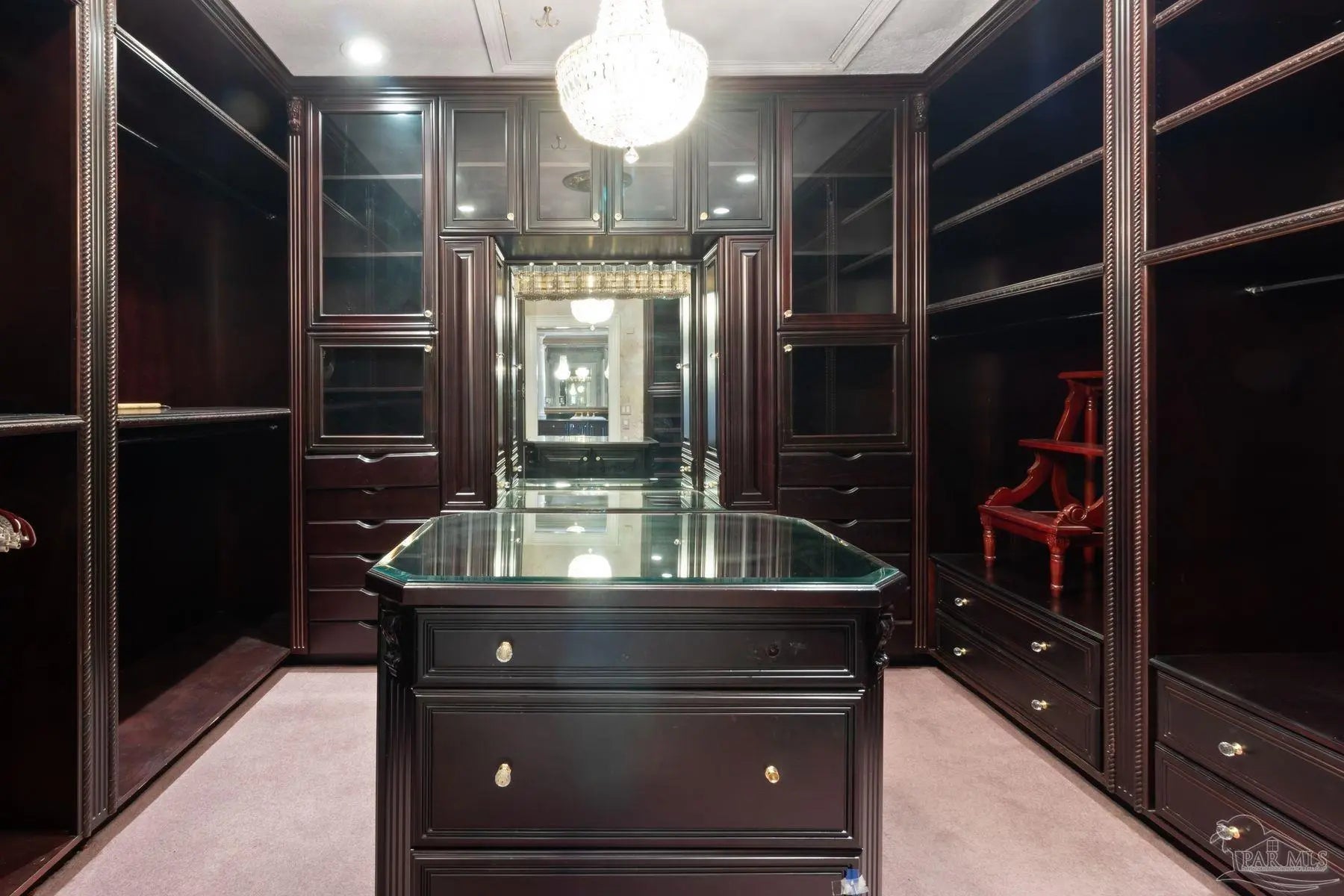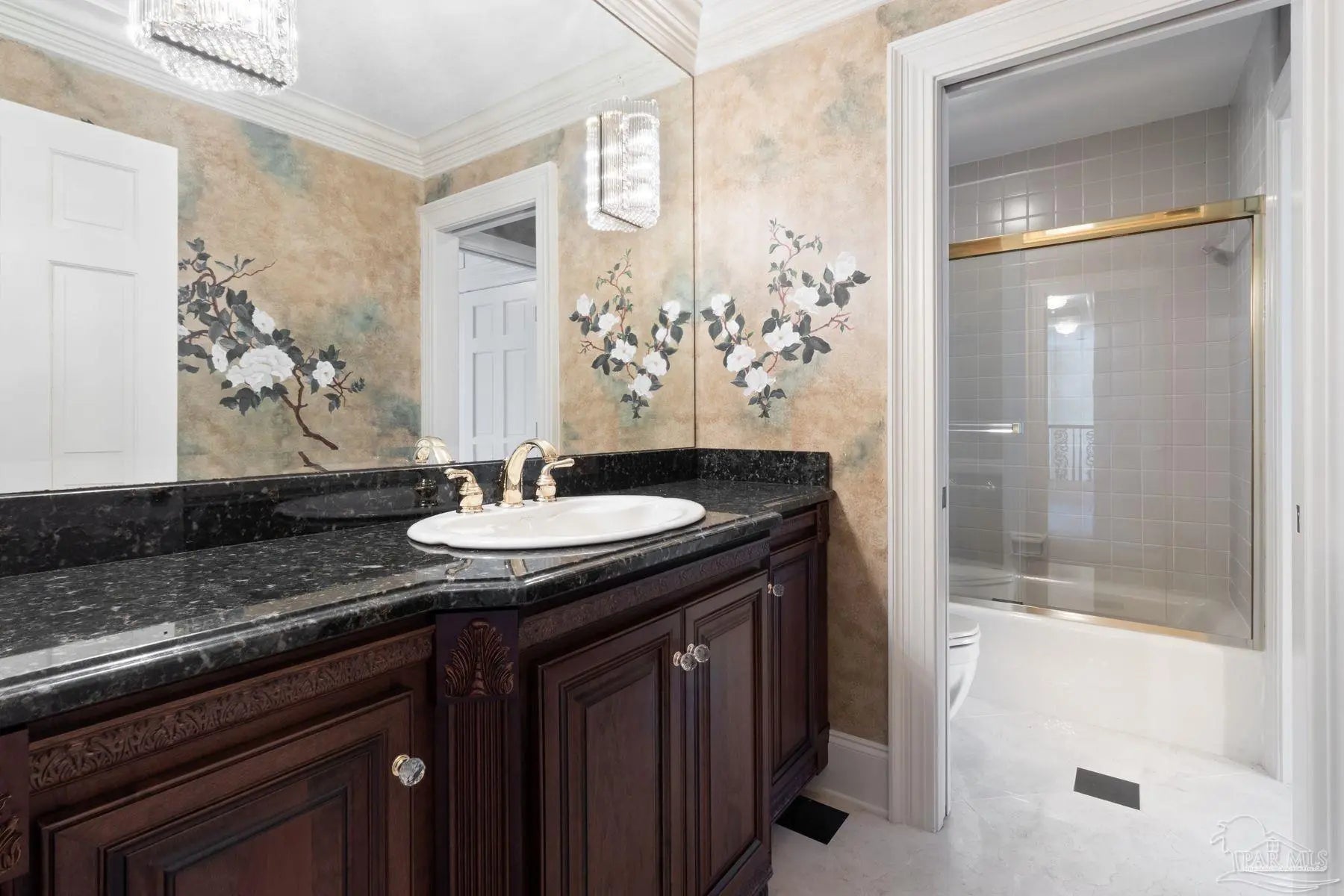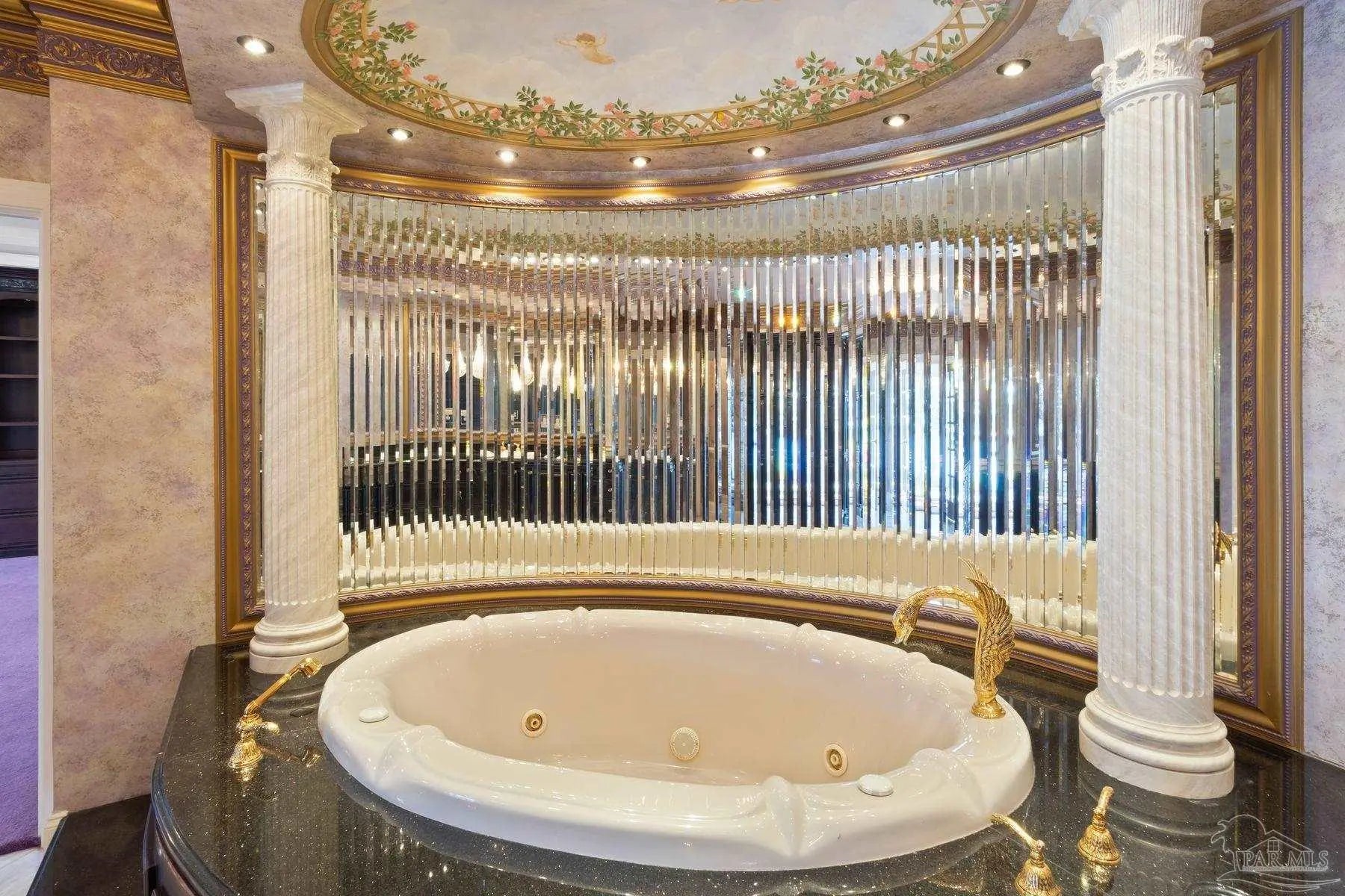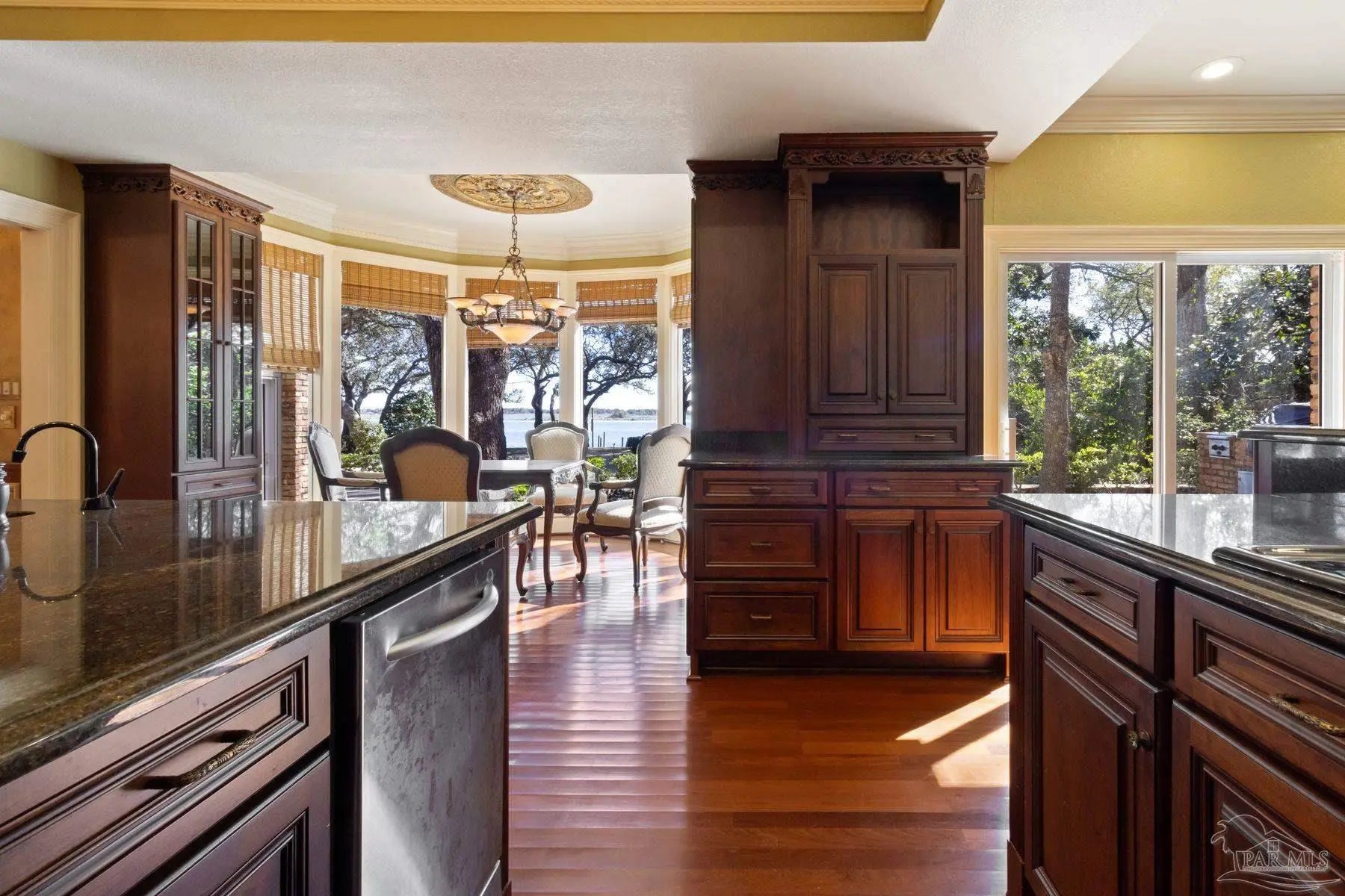 Tucked away on 2.75 acres along the Santa Rosa Sound, this stately waterfront estate offers an extraordinary combination of privacy, deep water access and breathtaking views of the barrier islands and the gulf. A 600-foot oak-lined driveway leads to this impressive 5,120-square-foot Old Chicago brick home, where timeless elegance meets the beauty of the Intracoastal Waterway. With 150 feet of private sandy beach and deep water frontage, this property provides unparalleled access to the water. Whether launching a kayak, paddleboard or jet ski right from your backyard or simply enjoying the serenity of the water from the verandas, this is a retreat like no other. Inside, architectural details abound. Crystal chandeliers, imported mahogany millwork, and soaring 25-ft. ceilings frame a home built for both grandeur and comfort. A wall of windows in the main living area captures stunning water views, while three fireplaces add warmth and charm. The primary suite is a private sanctuary, complete with a fireplace, balcony and an opulent dressing area. A library with a wet bar offers a quiet escape, and the kitchen is equipped with designer Sub-Zero and Thermador appliances, including warming and refrigeration drawers. Outdoor living is equally remarkable with covered porches, open patios and a separate artist studio, all set against the backdrop of sweeping waterfront vistas. The gated entrance and long paver driveway enhance the estate’s exclusivity. For those seeking a private deepwater retreat, this property offers an unparalleled lifestyle. Alternatively, its expansive acreage presents an exceptional development opportunity, with potential for multiple waterfront homesites and additional residences with water access. Whether as a grand estate or an exclusive residential enclave, this Mary Esther property is a rare and remarkable find.