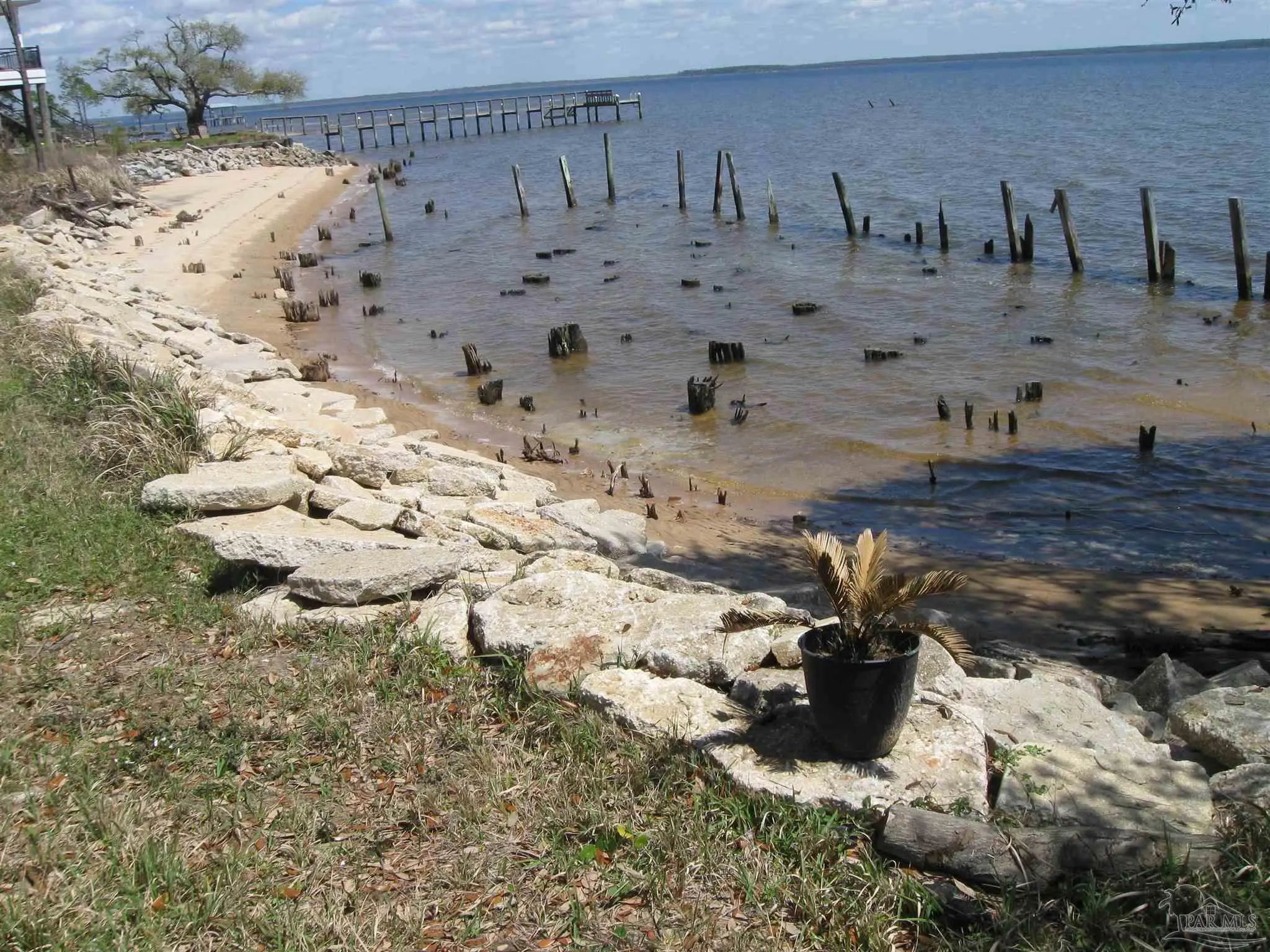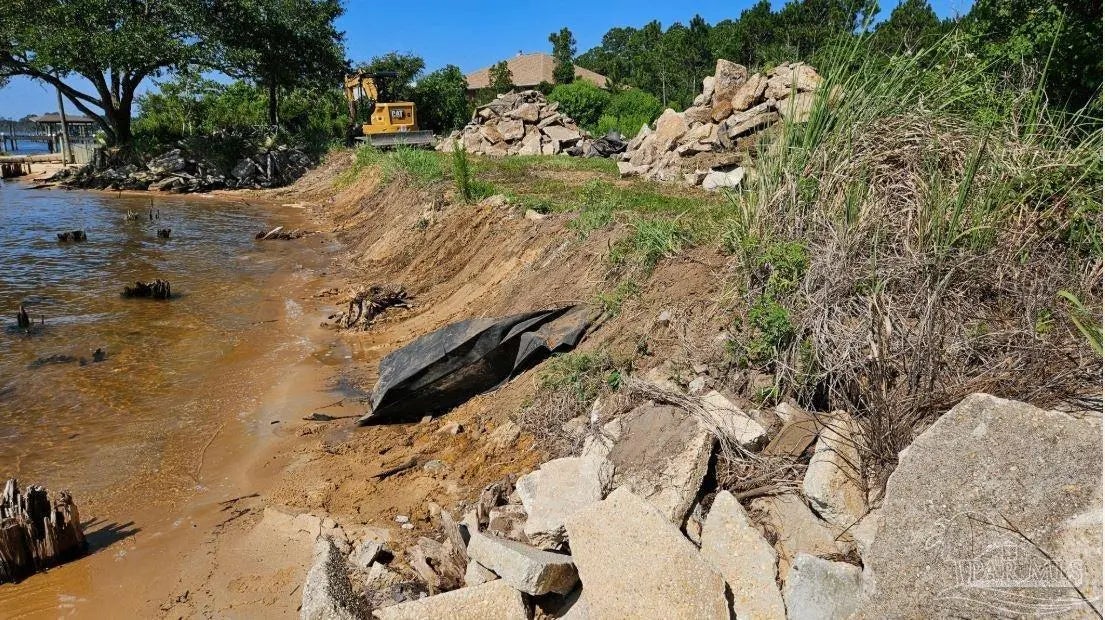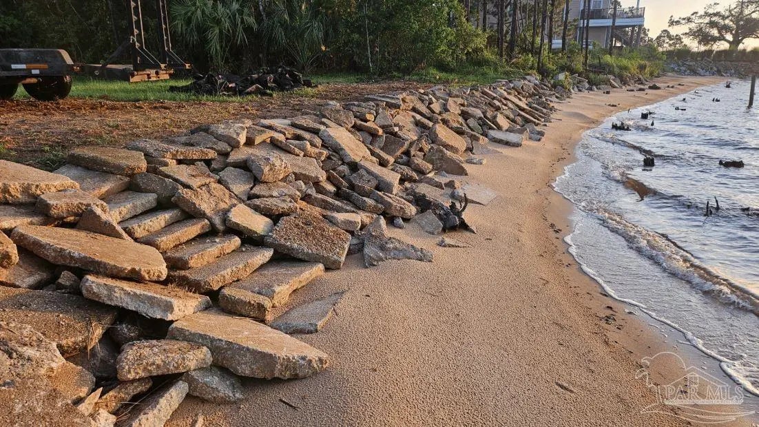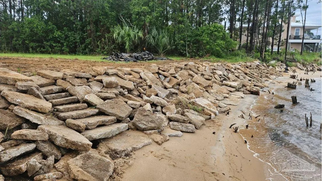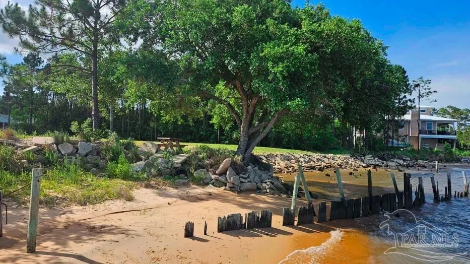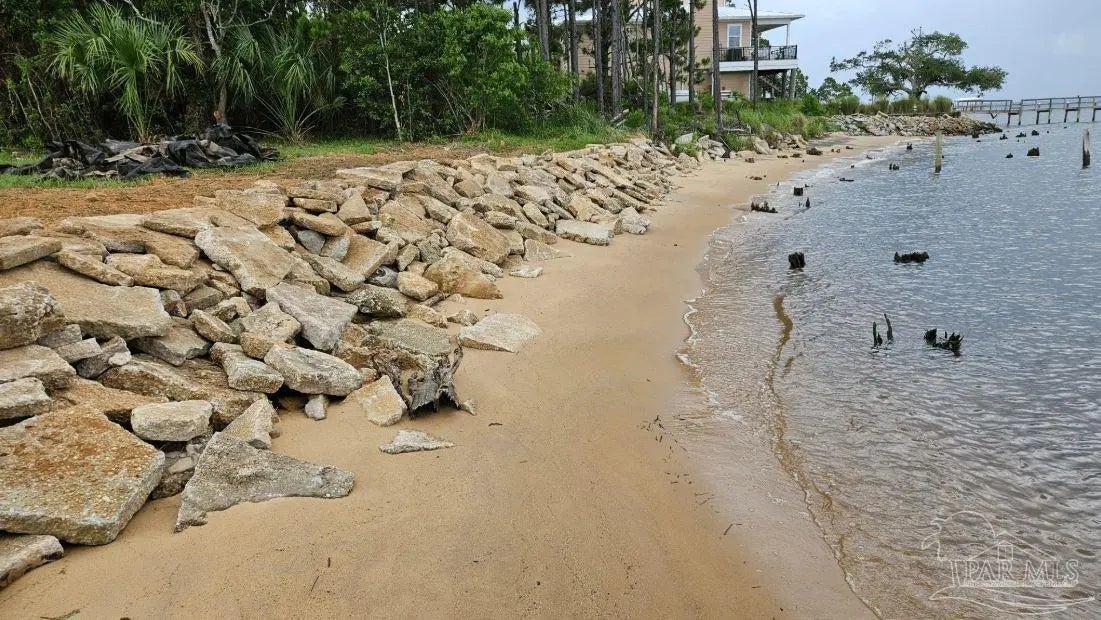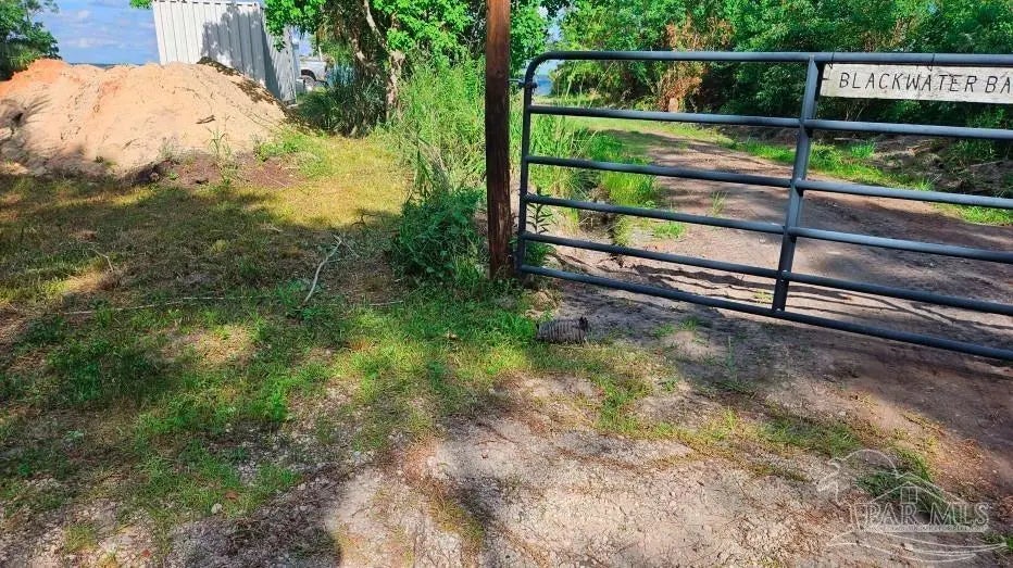 Talk about your Big Water views. Very nice lot on Blackwater Bay. Lot has been cleared and filled and is ready to go. No wetlands. Rip rap protection along shoreline. Large storage container on concrete slab can stay or go. 2 very nice kayaks can stay or go. Abuts seldom used community boat launch. Good proximity to I10 and beaches.