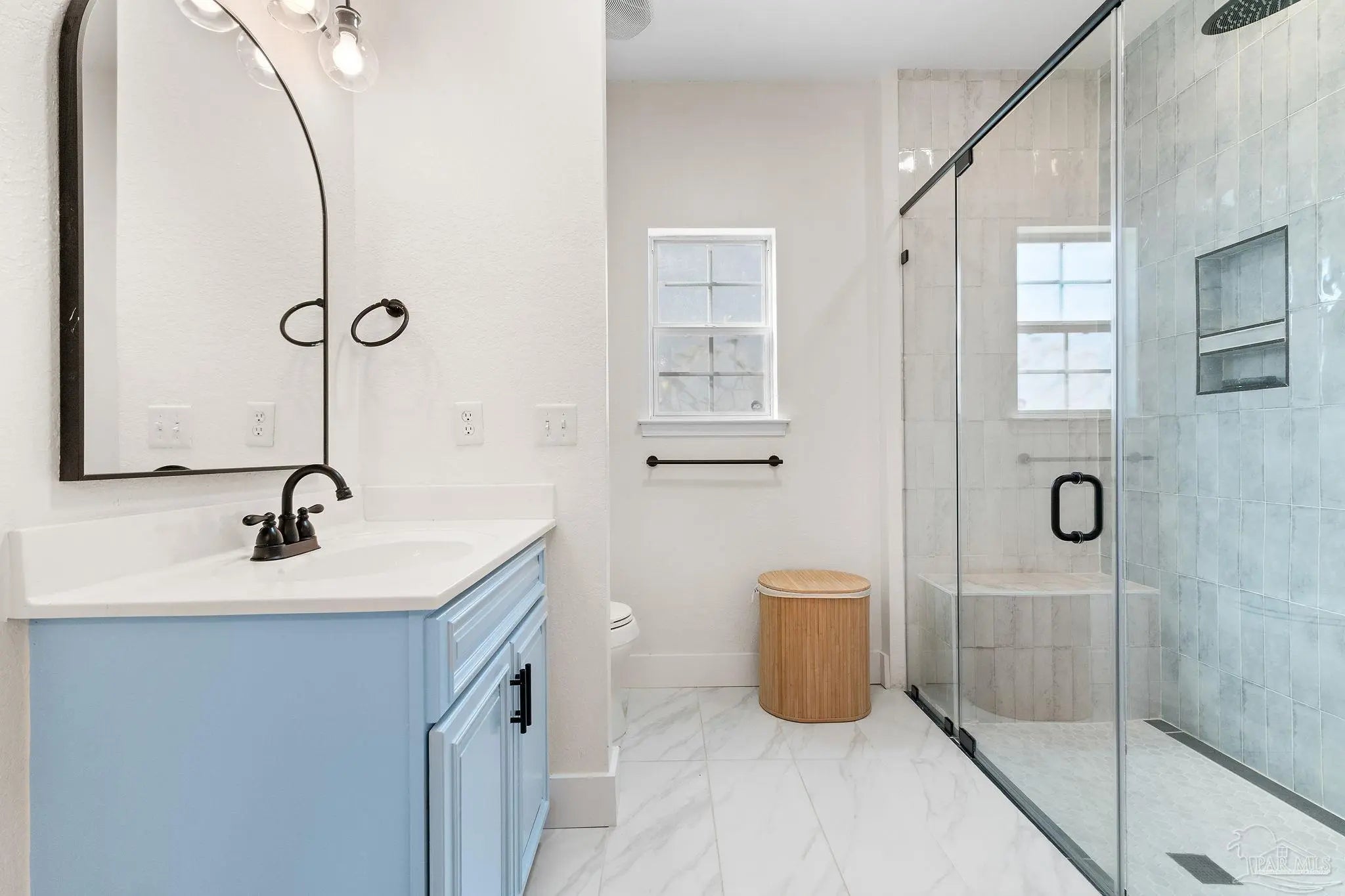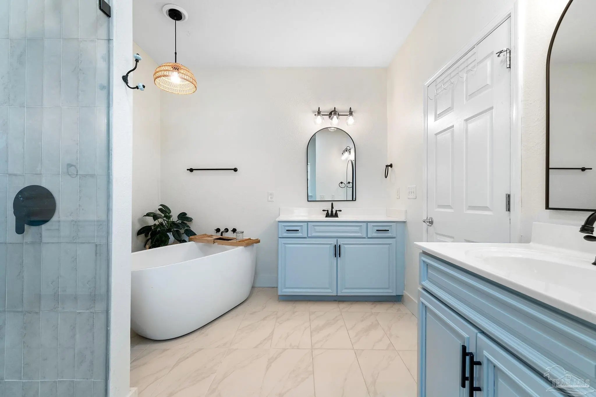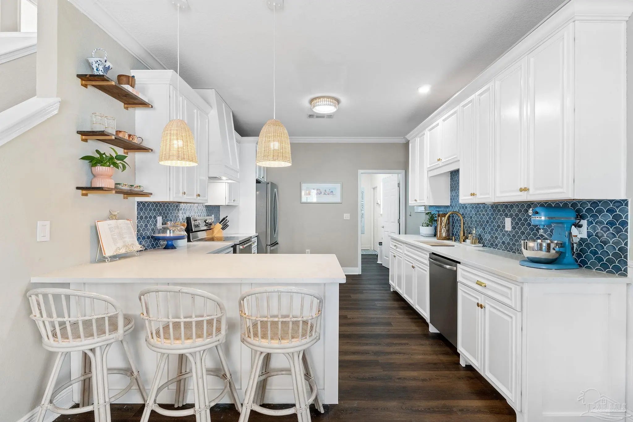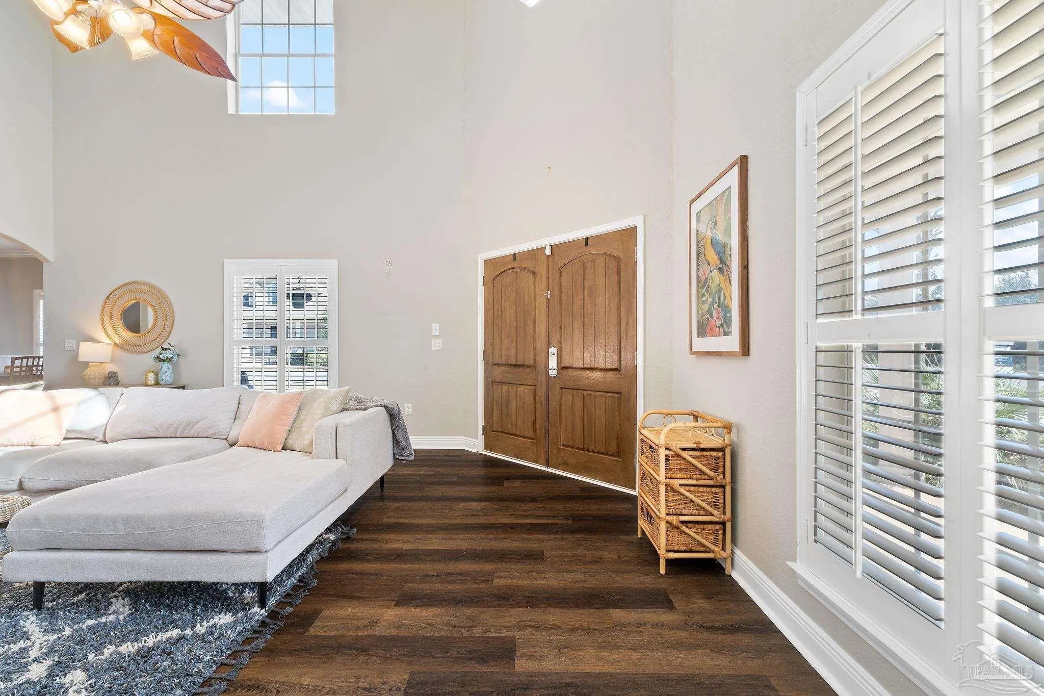 ASSUMABLE LOAN! Situated on a desirable corner lot, this breathtaking 4-bedroom, 3.5-bathroom coastal home is packed with luxurious updates! Step through the newly stained double wooden doors into a bright and airy living space, where soaring ceilings and brand-new wood-look flooring create a seamless and inviting atmosphere. The open layout flows effortlessly into the dining area and beautifully renovated kitchen, designed for both style and functionality. The kitchen is a true showpiece, featuring light quartz countertops, a breakfast bar, sleek stainless steel appliances, a stunning new backsplash, modern light fixtures, and stylish floating shelves for added charm and convenience. Located on the first floor, the spacious primary suite is a private retreat with double walk-in closets and oversized windows that fill the room with natural light. The newly remodeled ensuite bathroom is pure luxury, boasting a soaking tub, dual vanities, a beautifully tiled walk-in shower, and elegant new tile flooring. Additional highlights include a detached two-car garage, extra storage space, and a low-maintenance yard with a paved open patio—fantastic for relaxing or entertaining. Situated in a sought-after neighborhood just minutes from the beach, this home offers the ultimate coastal lifestyle. HOA amenities include a sparkling community pool, picnic area, and more. Don’t miss this incredible opportunity—schedule your showing today and experience all this vibrant community has to offer!