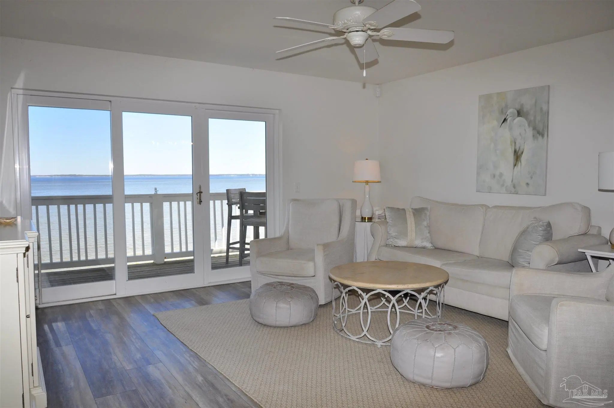 PRICE ADJUSTMENT! Waterfront Living at Innerarity Townhomes – A Boater’s Paradise! Experience the feeling of being on a luxury cruise every day with exceptional, expansive waterfront views from this stunning 2-bedroom/2.5 bath townhome in the gated community of Innerarity Townhomes. Perfectly positioned at the central, protruding point of the building, this unit offers unmatched panoramic views of Perdido Bay on one side and the Intracoastal Waterway on the other, with balconies designed for peaceful serenity and breathtaking sunrises and sunsets. One of the few units to include a fully paid-for boat slip (Monthly fee $100) with added mooring poles in the highly anticipated ITH Marina. This turnkey, fully furnished home is ready for personal use or rental income. Interior Features Include: 1244 sqft of interior space (as per a previous appraisal) plus covered outdoor areas and storage closet. An open concept living, dining, and kitchen on the second level with private deck(s) overlooking Perdido Bay. A fully equipped kitchen with white cabinets, granite counter tops modern appliances and ample storage. Convenient half bath and laundry room on the main floor. Primary suite is on the third floor with an En Suite bath featuring a granite-topped double vanity and a private balcony overlooking the bay. The second bedroom has Inter-Coastal views and an adjacent full bath. Community & Amenities: Private community beach just steps away. The complex offers a Resort-style with a pool, gym, and gated security. Landscaping, pool maintenance, and more are covered by the HOA for stress-free living. Kayaks included with unit for exploring the surrounding waters. Whether you're seeking a full-time residence, a vacation getaway, or a high-income rental, this coastal retreat has it all. With dolphins playing right outside your door, and boating, fishing, and kayaking at your fingertips, your waterfront dream awaits! New Central Heat/Air just installed April 4, 2025.