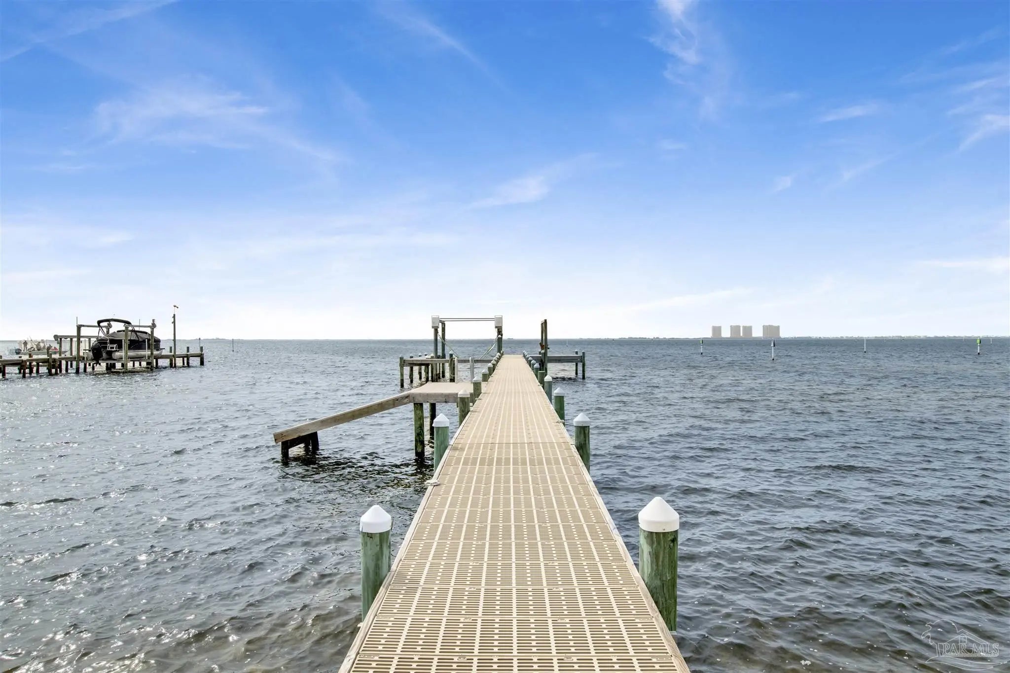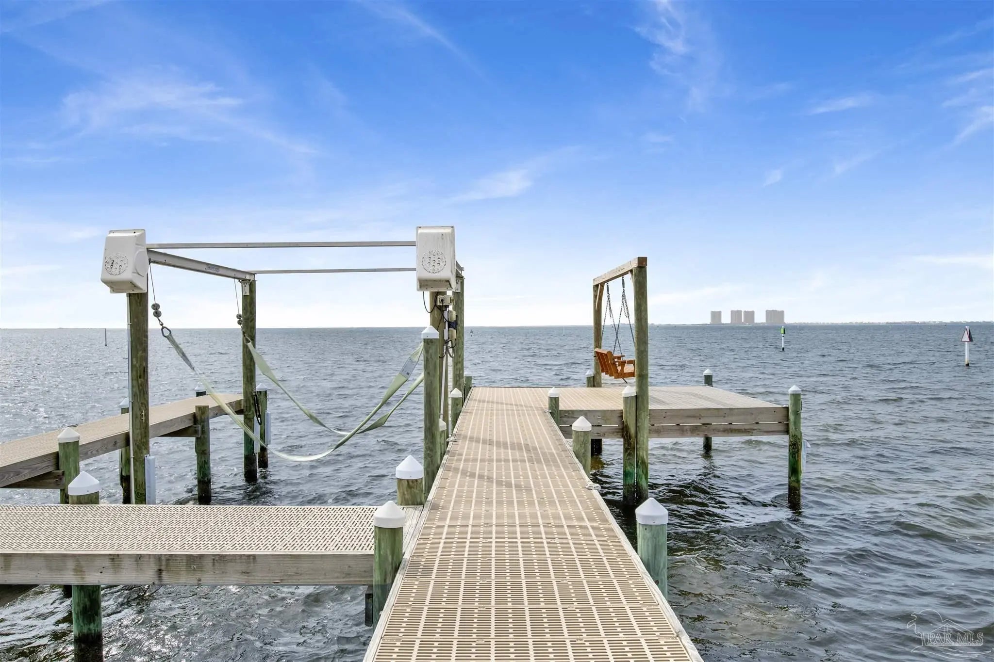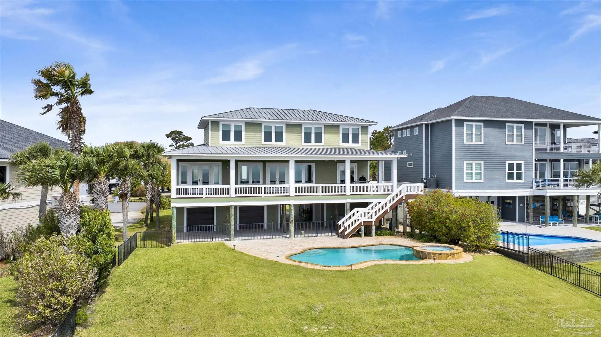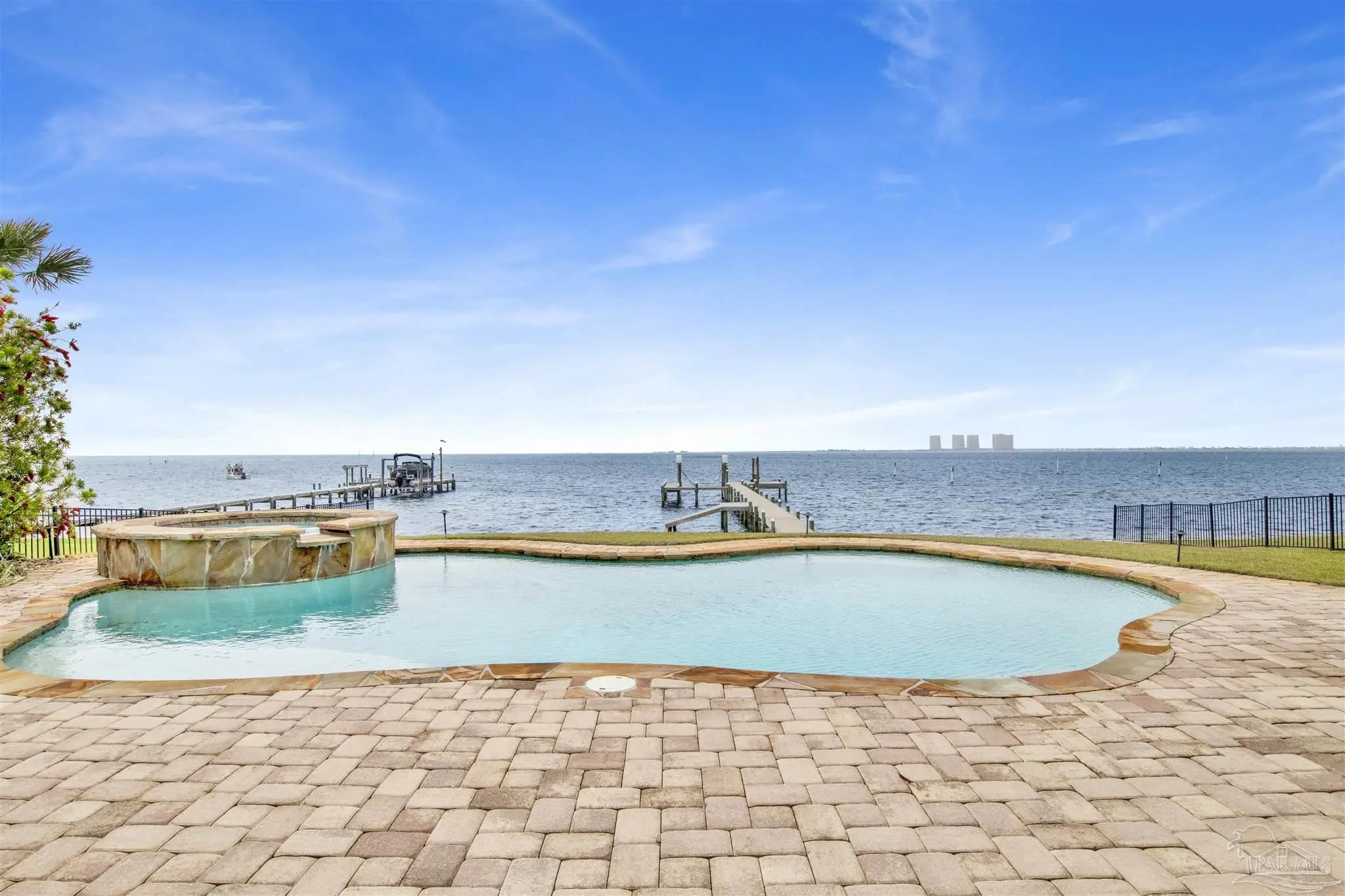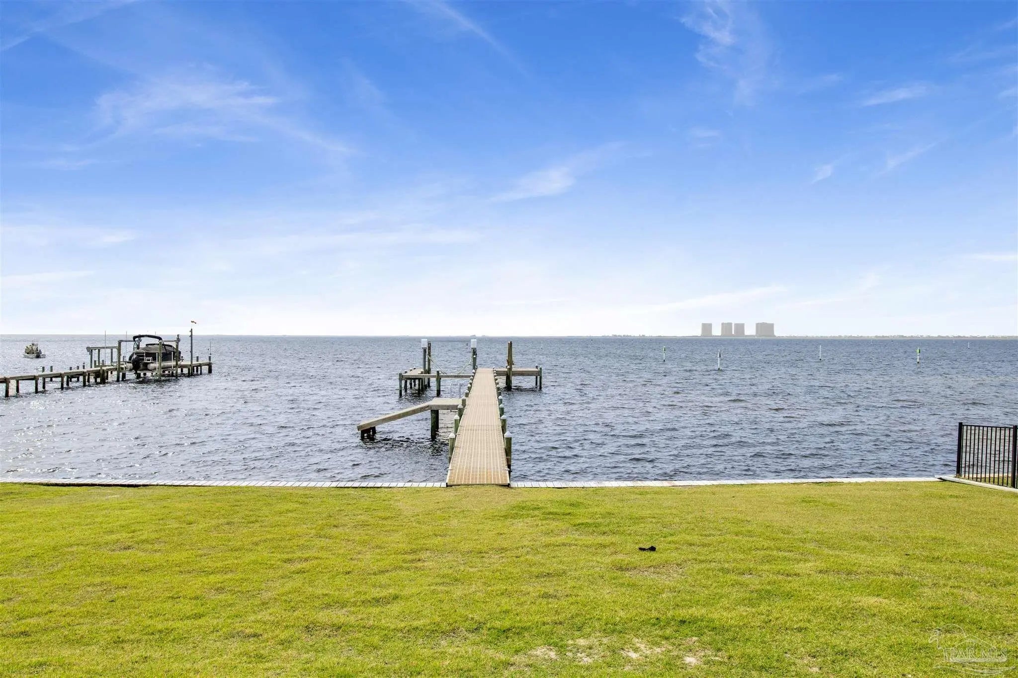 Welcome to this exquisite 6-bedroom, 4 1/2-bath custom home, nestled in the highly coveted Santa Rosa Shores neighborhood. Designed with elegance and functionality in mind, this home offers a lifestyle of luxury with no detail overlooked. From the moment you step inside, you'll be greeted by upscale fixtures, sophisticated finishes, and custom shades throughout, elevating every room. The exceptional floor plan ensures both privacy and convenience, with the primary suite located on the lower level for ultimate comfort and accessibility. Every bedroom enjoys the added benefit of its own en-suite bathroom, providing a perfect blend of privacy and luxury. The open-concept living area boasts stunning views of Santa Rosa Sound from every corner, creating a seamless flow between indoors and out. The chef’s kitchen is a true highlight, featuring a large center island, sleek granite countertops, a walk-in pantry, wine cooler, and premium stainless-steel appliances, including a gas stove – perfect for preparing gourmet meals. The adjacent dining area is complemented by custom built-in banquette seating, adding both style and functionality. Step outside to discover multiple outdoor living spaces, including a large covered deck with a gas firepit, ideal for relaxing or entertaining while taking in the breathtaking waterfront views. The expansive lower-level covered patio overlooks a beautifully landscaped lawn, complete with an inground pool and spa – your own private oasis. For those who love boating, the property includes a private pier with a boat lift, offering direct access to the pristine waters of Santa Rosa Sound. This home is the epitome of waterfront living, offering both tranquility and elegance in one of the area's most desirable neighborhoods. Don’t miss the opportunity to call this exceptional property your home.