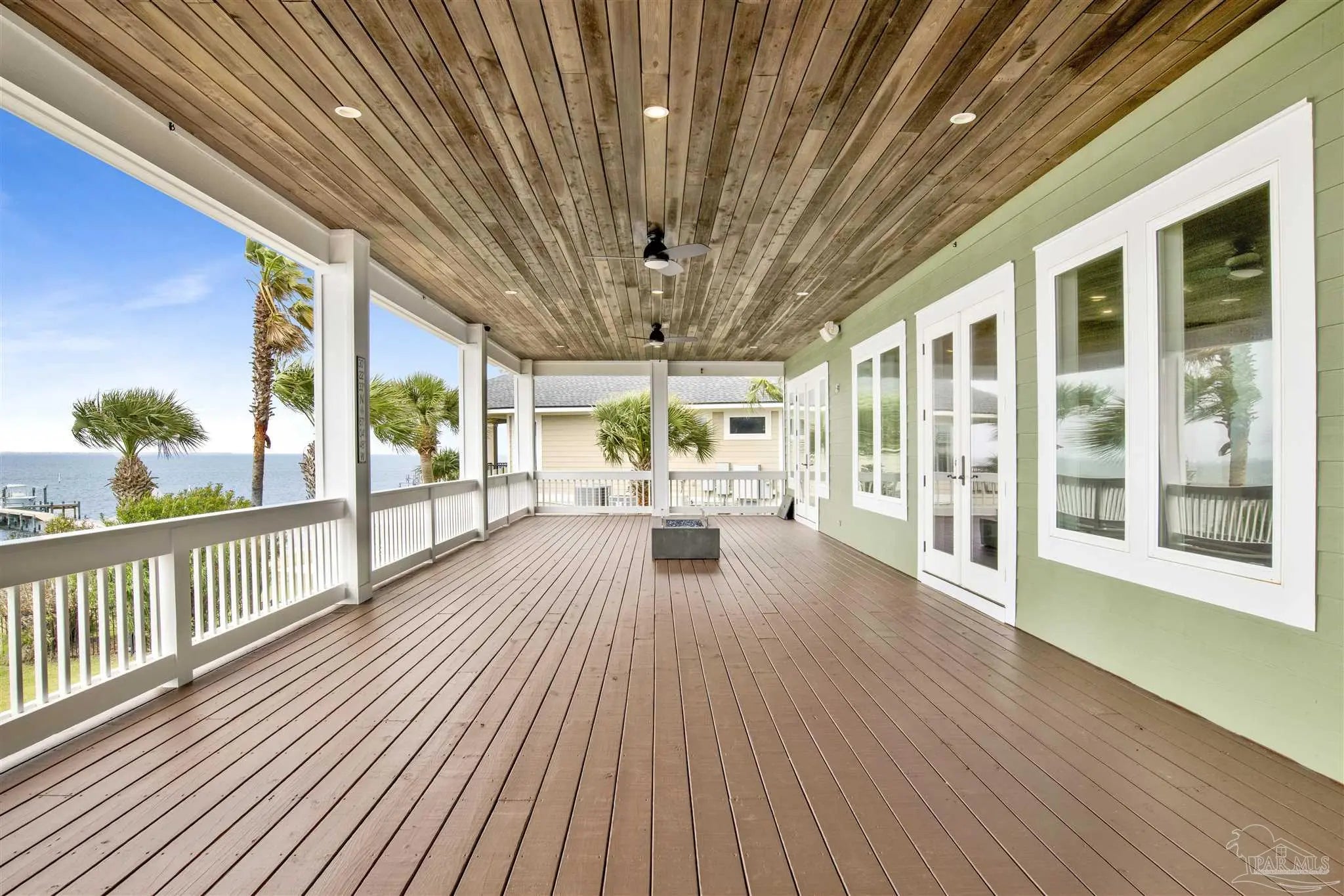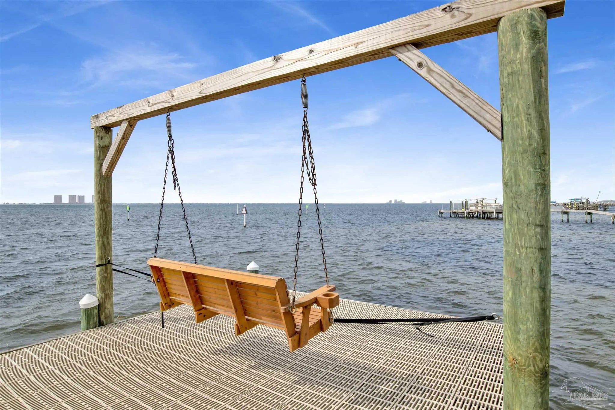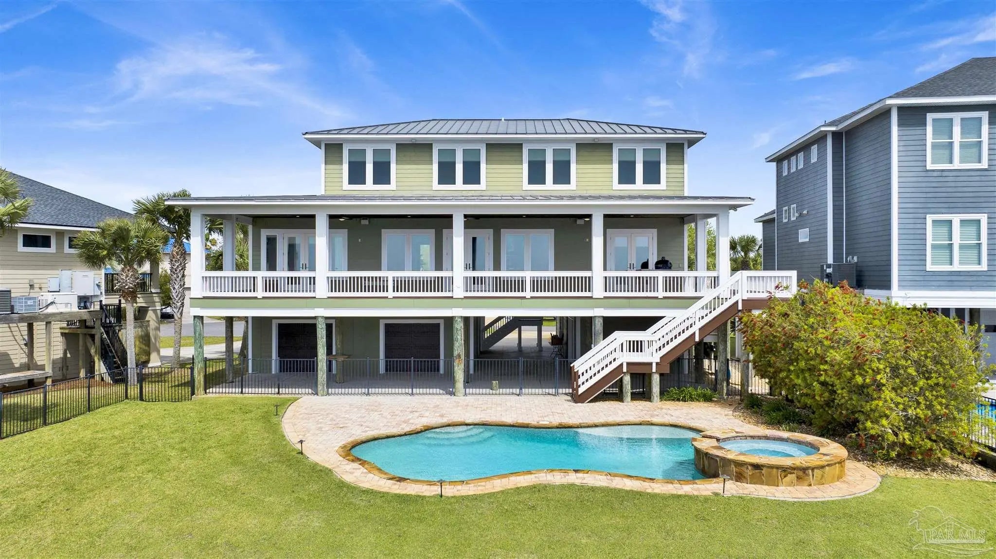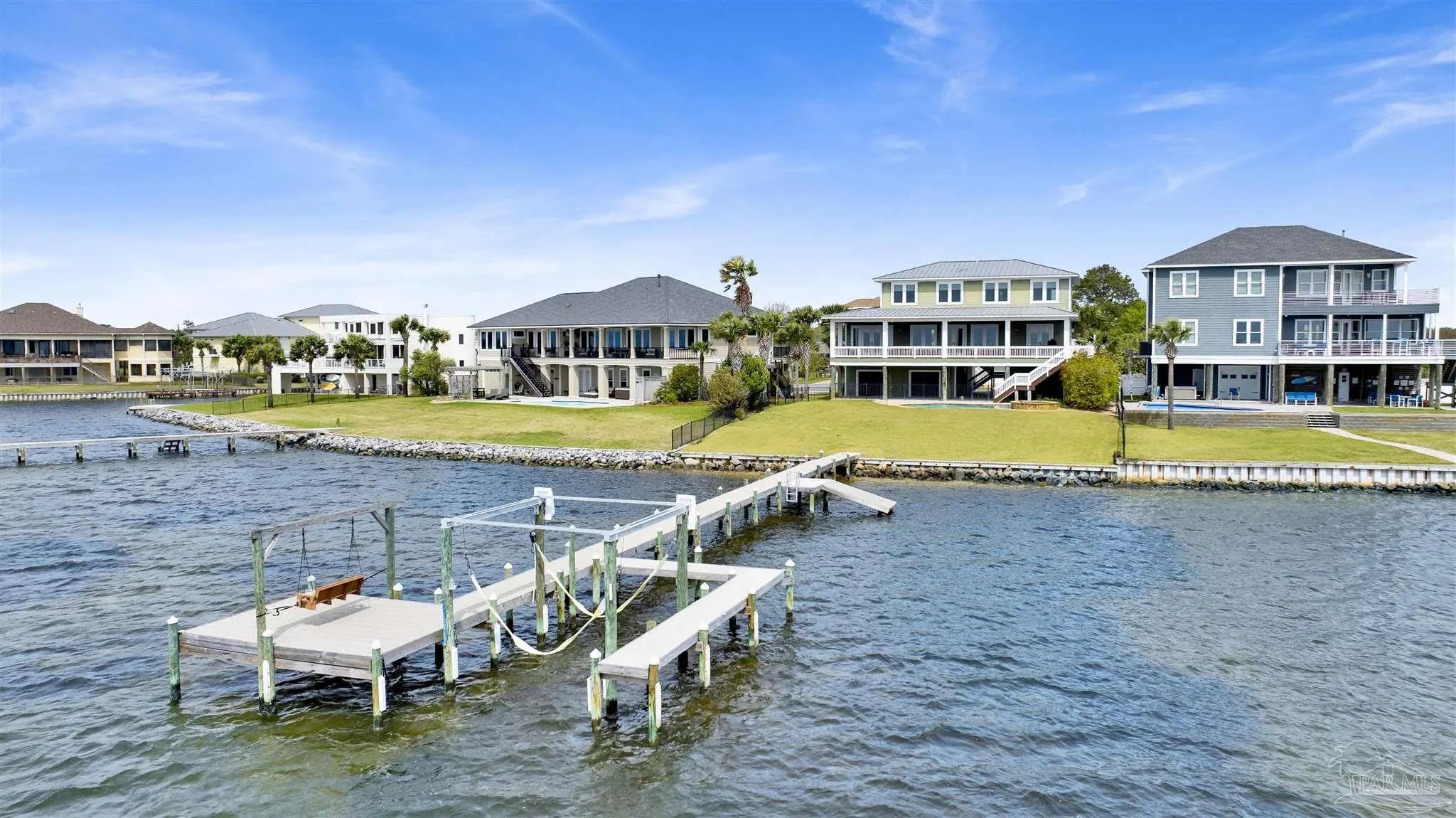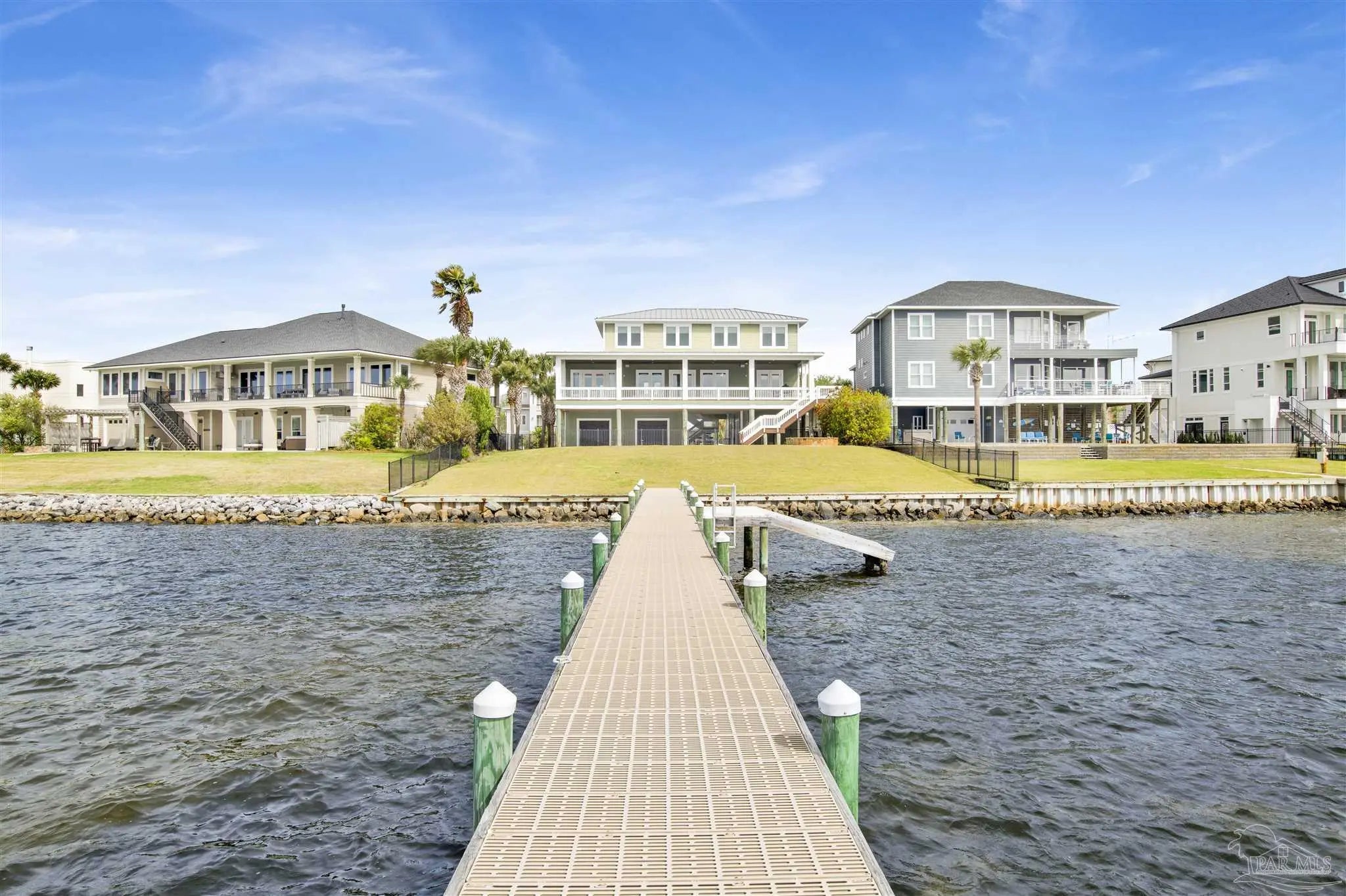 Welcome to this exquisite 6-bedroom, 4 1/2-bath custom home, nestled in the highly coveted Santa Rosa Shores neighborhood. Designed with elegance and functionality in mind, this home offers a lifestyle of luxury with no detail overlooked. From the moment you step inside, you'll be greeted by upscale fixtures, sophisticated finishes, and custom shades throughout, elevating every room. The exceptional floor plan ensures both privacy and convenience, with the primary suite located on the lower level for ultimate comfort and accessibility. Every bedroom enjoys the added benefit of its own en-suite bathroom, providing a perfect blend of privacy and luxury. The open-concept living area boasts stunning views of Santa Rosa Sound from every corner, creating a seamless flow between indoors and out. The chef’s kitchen is a true highlight, featuring a large center island, sleek granite countertops, a walk-in pantry, wine cooler, and premium stainless-steel appliances, including a gas stove – perfect for preparing gourmet meals. The adjacent dining area is complemented by custom built-in banquette seating, adding both style and functionality. Step outside to discover multiple outdoor living spaces, including a large covered deck with a gas firepit, ideal for relaxing or entertaining while taking in the breathtaking waterfront views. The expansive lower-level covered patio overlooks a beautifully landscaped lawn, complete with an inground pool and spa – your own private oasis. For those who love boating, the property includes a private pier with a boat lift, offering direct access to the pristine waters of Santa Rosa Sound. This home is the epitome of waterfront living, offering both tranquility and elegance in one of the area's most desirable neighborhoods. Don’t miss the opportunity to call this exceptional property your home.
