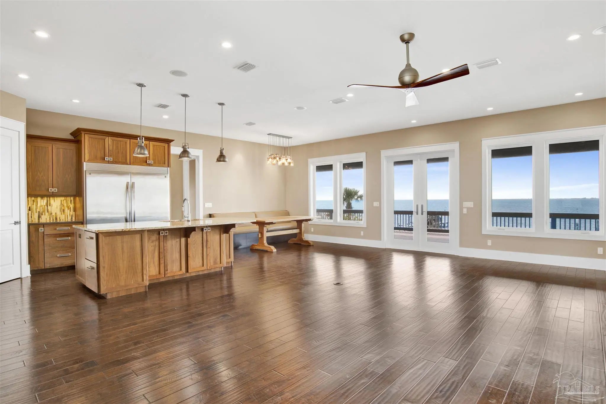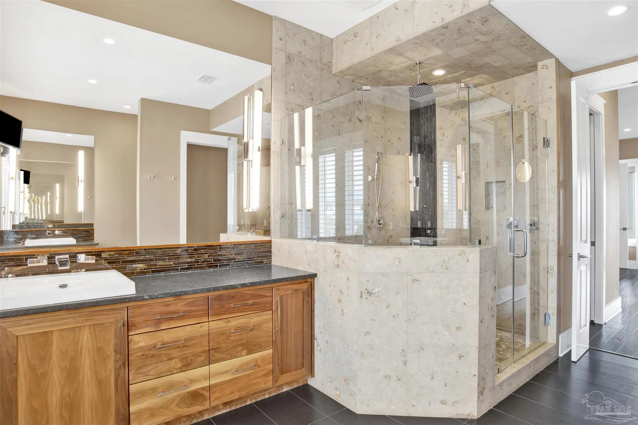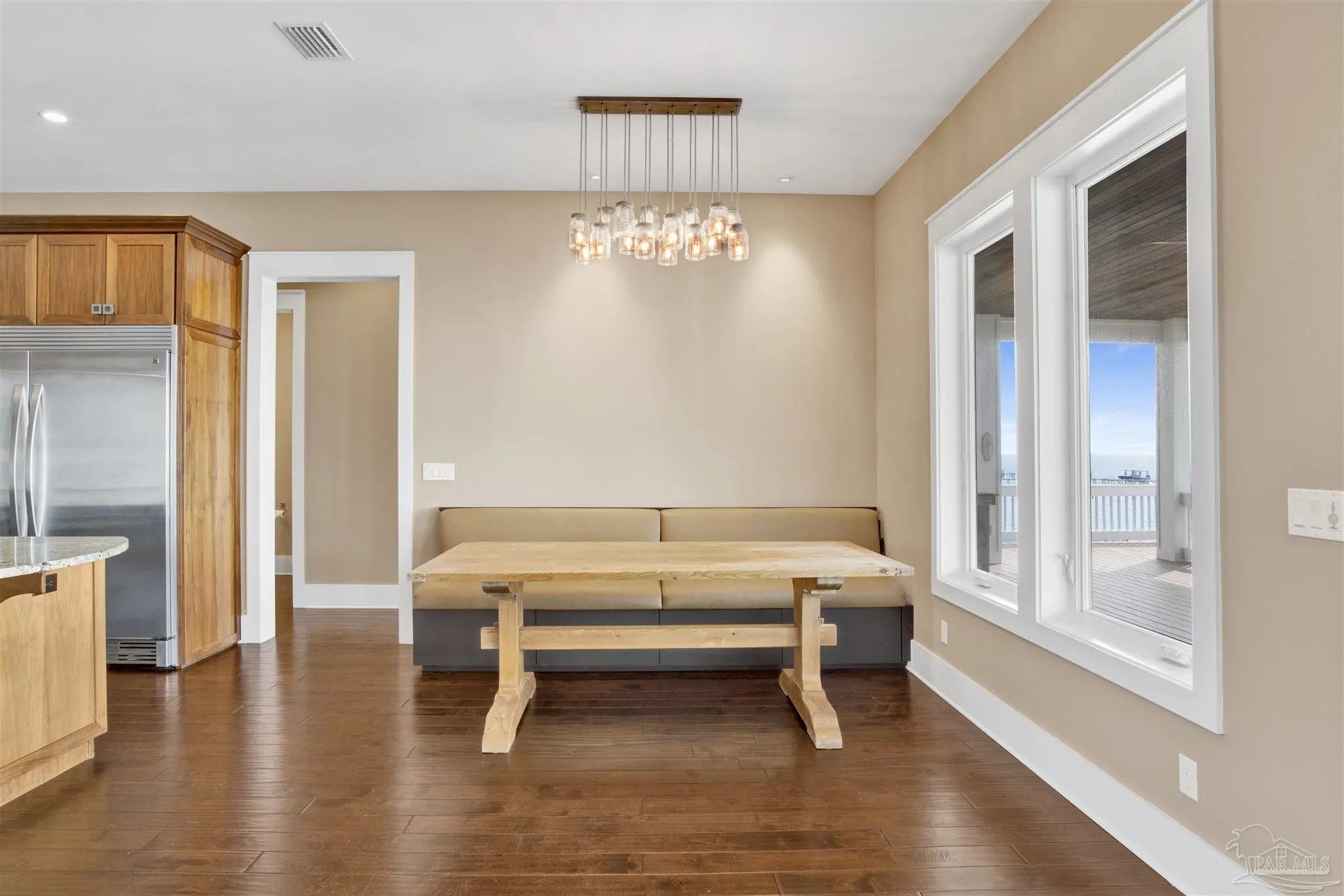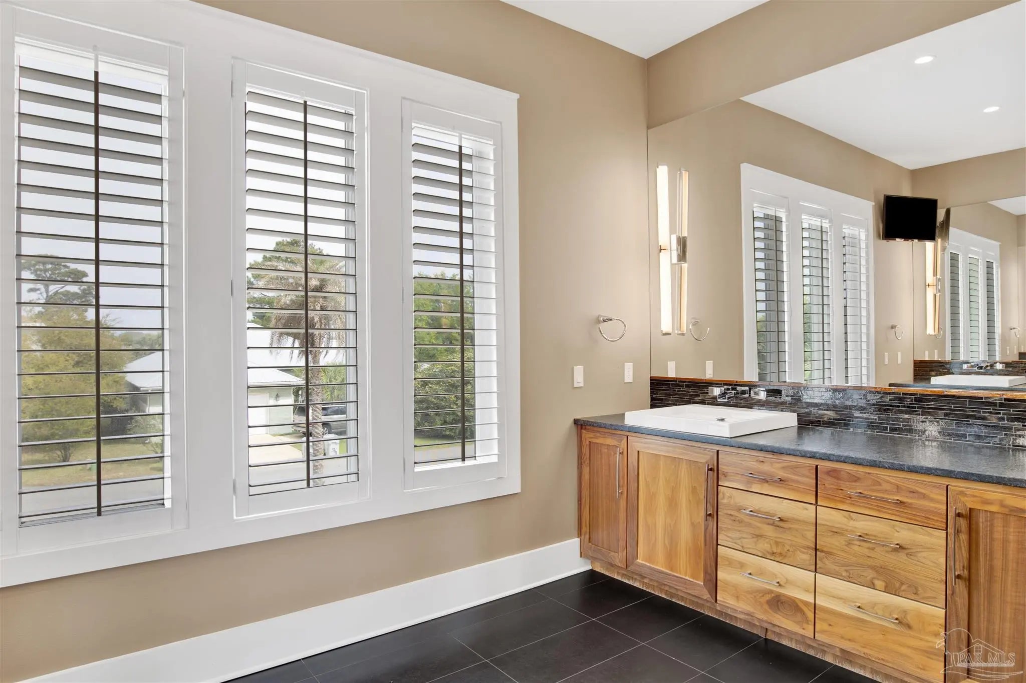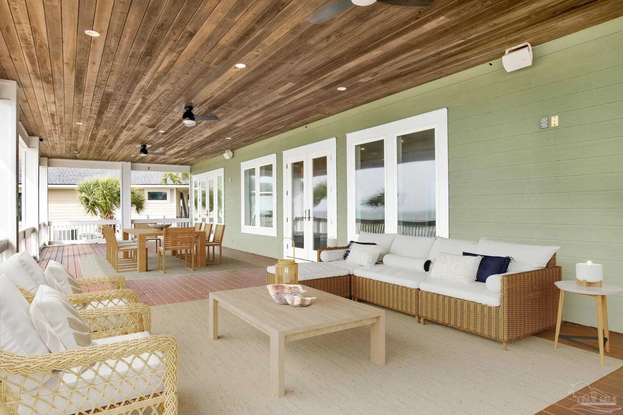 Welcome to this exquisite 6-bedroom, 4 1/2-bath custom home, nestled in the highly coveted Santa Rosa Shores neighborhood. Designed with elegance and functionality in mind, this home offers a lifestyle of luxury with no detail overlooked. From the moment you step inside, you'll be greeted by upscale fixtures, sophisticated finishes, and custom shades throughout, elevating every room. The exceptional floor plan ensures both privacy and convenience, with the primary suite located on the lower level for ultimate comfort and accessibility. Every bedroom enjoys the added benefit of its own en-suite bathroom, providing a perfect blend of privacy and luxury. The open-concept living area boasts stunning views of Santa Rosa Sound from every corner, creating a seamless flow between indoors and out. The chef’s kitchen is a true highlight, featuring a large center island, sleek granite countertops, a walk-in pantry, wine cooler, and premium stainless-steel appliances, including a gas stove – perfect for preparing gourmet meals. The adjacent dining area is complemented by custom built-in banquette seating, adding both style and functionality. Step outside to discover multiple outdoor living spaces, including a large covered deck with a gas firepit, ideal for relaxing or entertaining while taking in the breathtaking waterfront views. The expansive lower-level covered patio overlooks a beautifully landscaped lawn, complete with an inground pool and spa – your own private oasis. For those who love boating, the property includes a private pier with a boat lift, offering direct access to the pristine waters of Santa Rosa Sound. This home is the epitome of waterfront living, offering both tranquility and elegance in one of the area's most desirable neighborhoods. Don’t miss the opportunity to call this exceptional property your home.