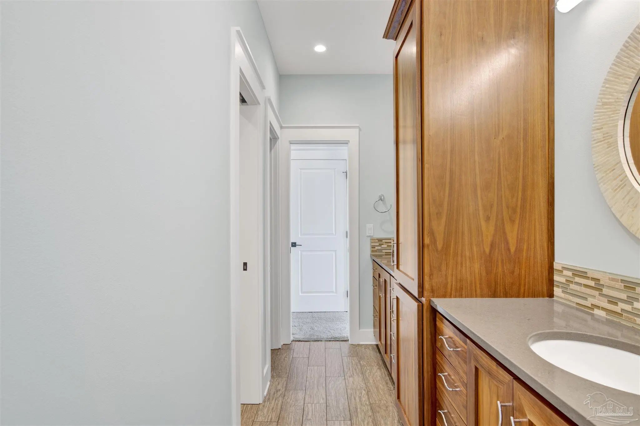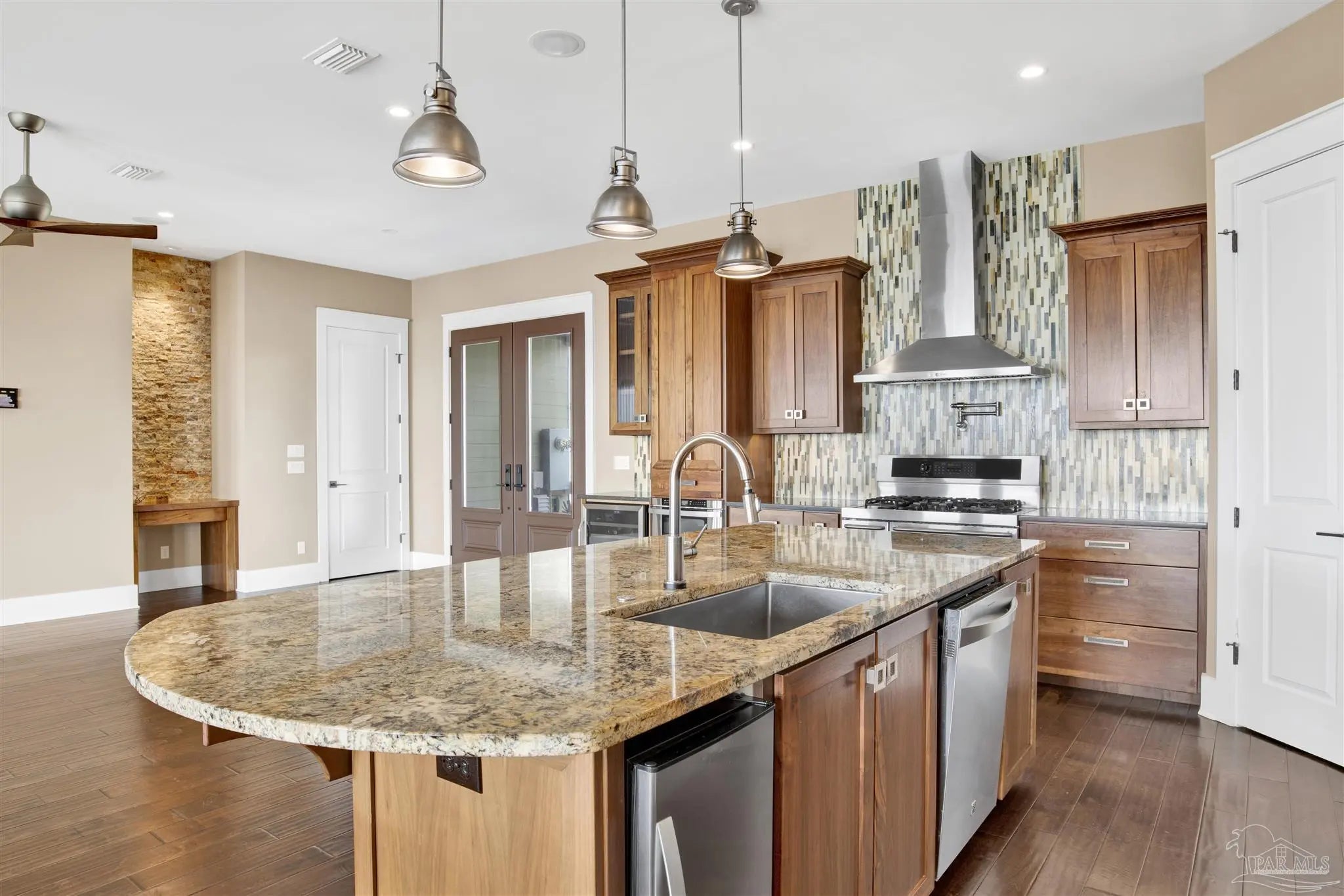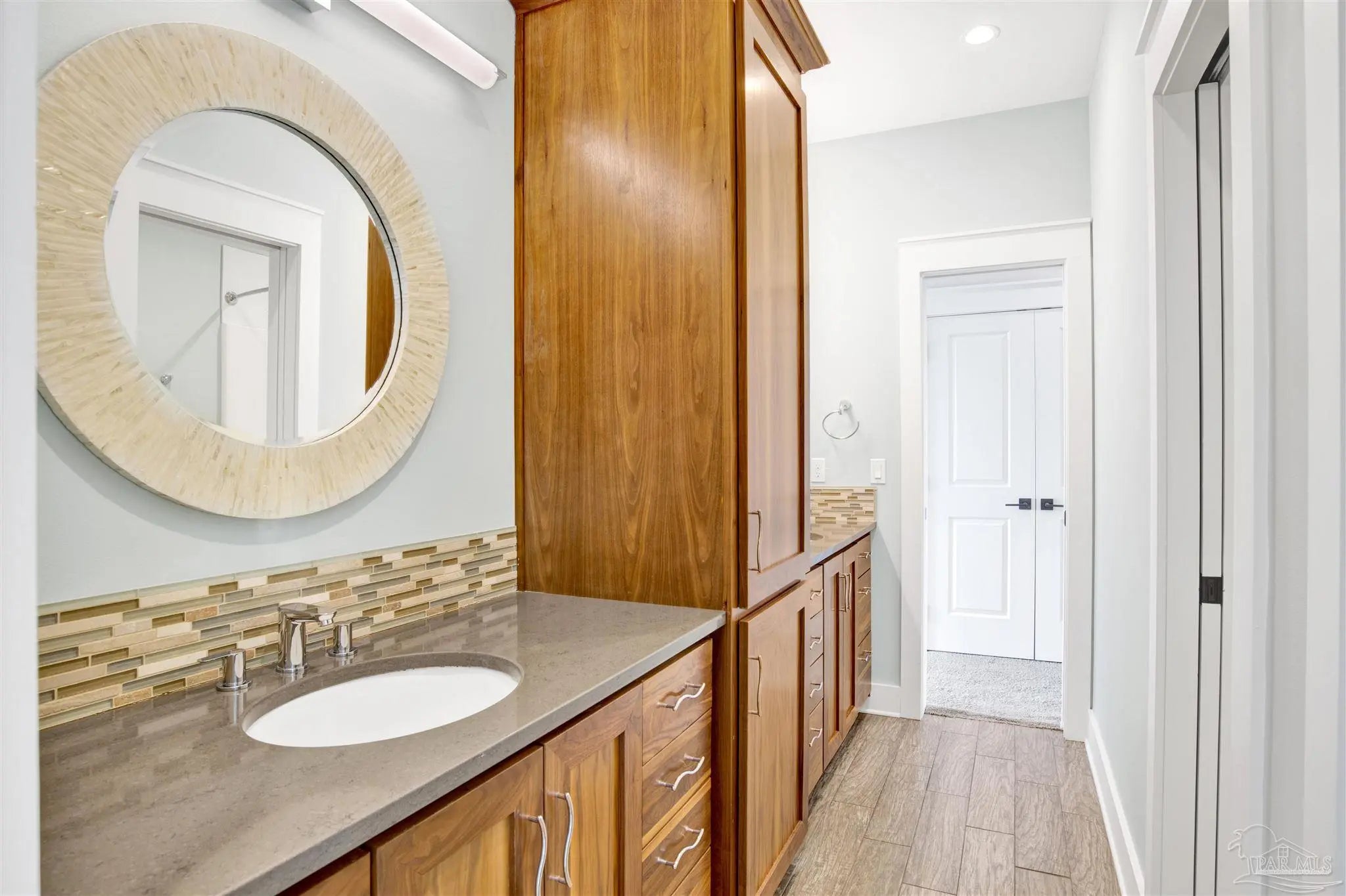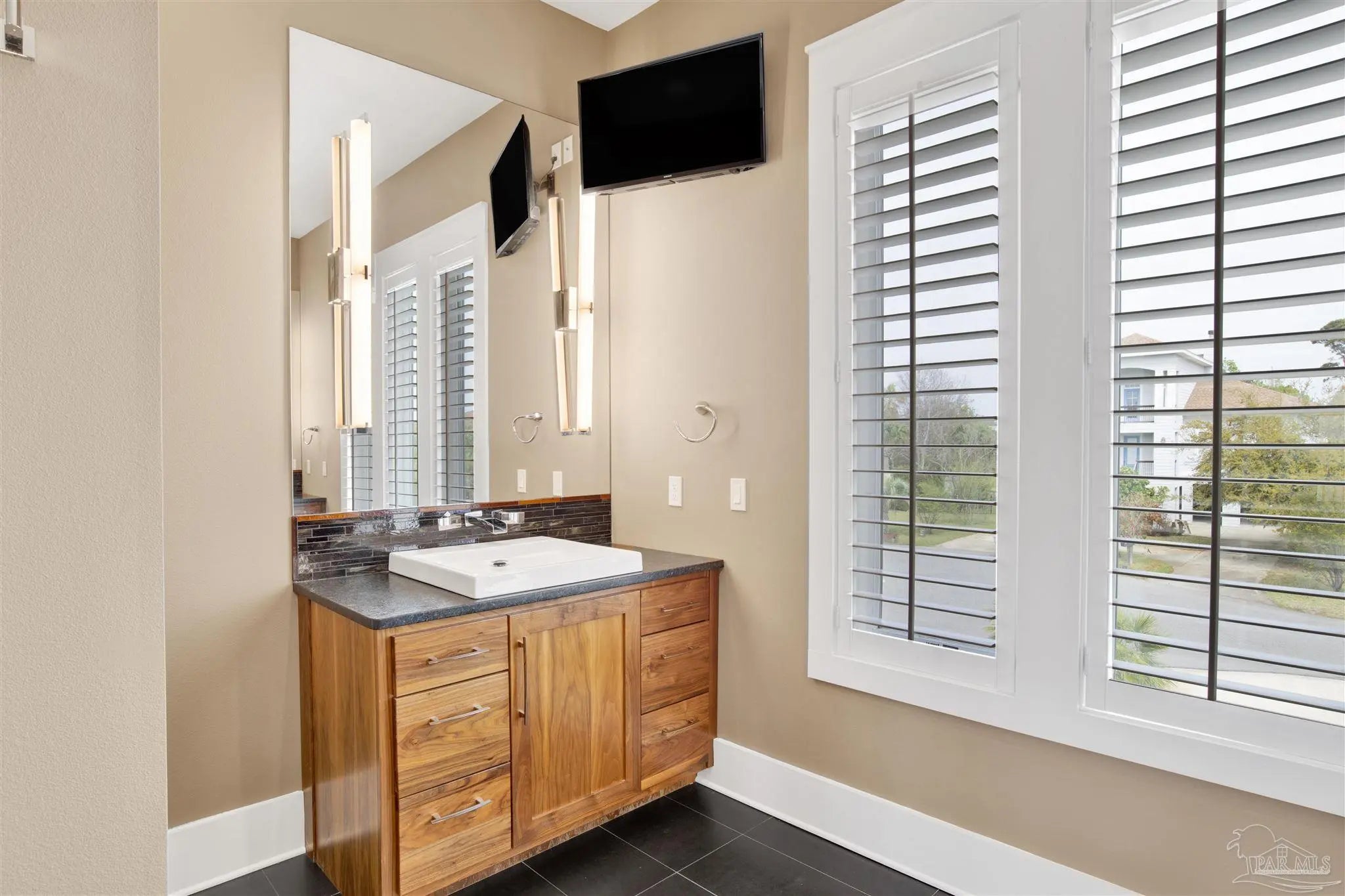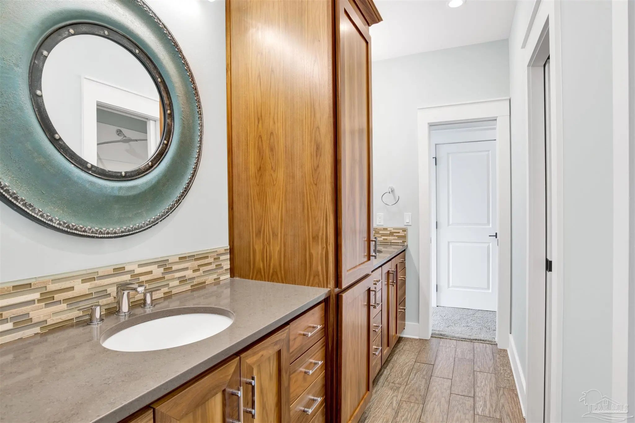 Welcome to this exquisite 6-bedroom, 4 1/2-bath custom home, nestled in the highly coveted Santa Rosa Shores neighborhood. Designed with elegance and functionality in mind, this home offers a lifestyle of luxury with no detail overlooked. From the moment you step inside, you'll be greeted by upscale fixtures, sophisticated finishes, and custom shades throughout, elevating every room. The exceptional floor plan ensures both privacy and convenience, with the primary suite located on the lower level for ultimate comfort and accessibility. Every bedroom enjoys the added benefit of its own en-suite bathroom, providing a perfect blend of privacy and luxury. The open-concept living area boasts stunning views of Santa Rosa Sound from every corner, creating a seamless flow between indoors and out. The chef’s kitchen is a true highlight, featuring a large center island, sleek granite countertops, a walk-in pantry, wine cooler, and premium stainless-steel appliances, including a gas stove – perfect for preparing gourmet meals. The adjacent dining area is complemented by custom built-in banquette seating, adding both style and functionality. Step outside to discover multiple outdoor living spaces, including a large covered deck with a gas firepit, ideal for relaxing or entertaining while taking in the breathtaking waterfront views. The expansive lower-level covered patio overlooks a beautifully landscaped lawn, complete with an inground pool and spa – your own private oasis. For those who love boating, the property includes a private pier with a boat lift, offering direct access to the pristine waters of Santa Rosa Sound. This home is the epitome of waterfront living, offering both tranquility and elegance in one of the area's most desirable neighborhoods. Don’t miss the opportunity to call this exceptional property your home.