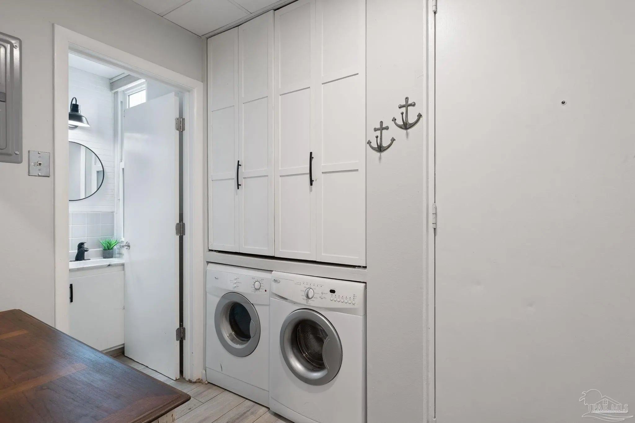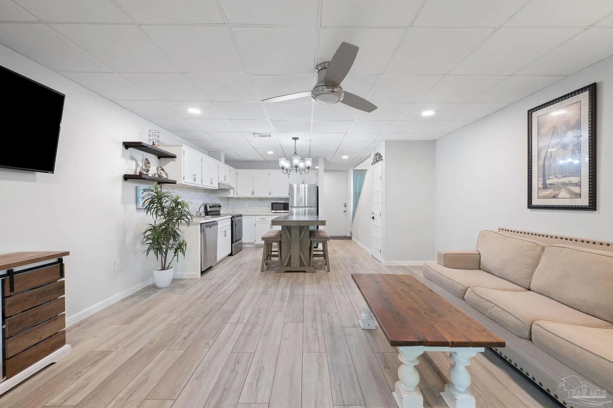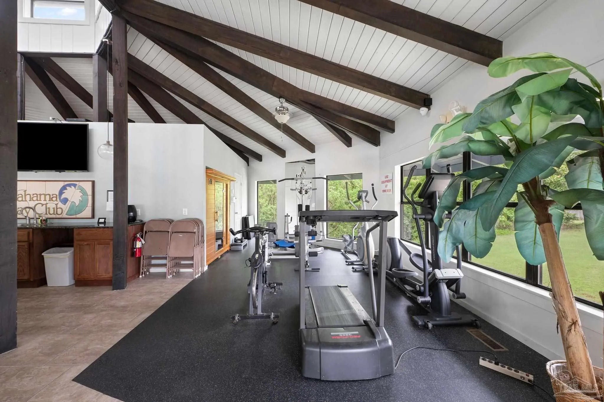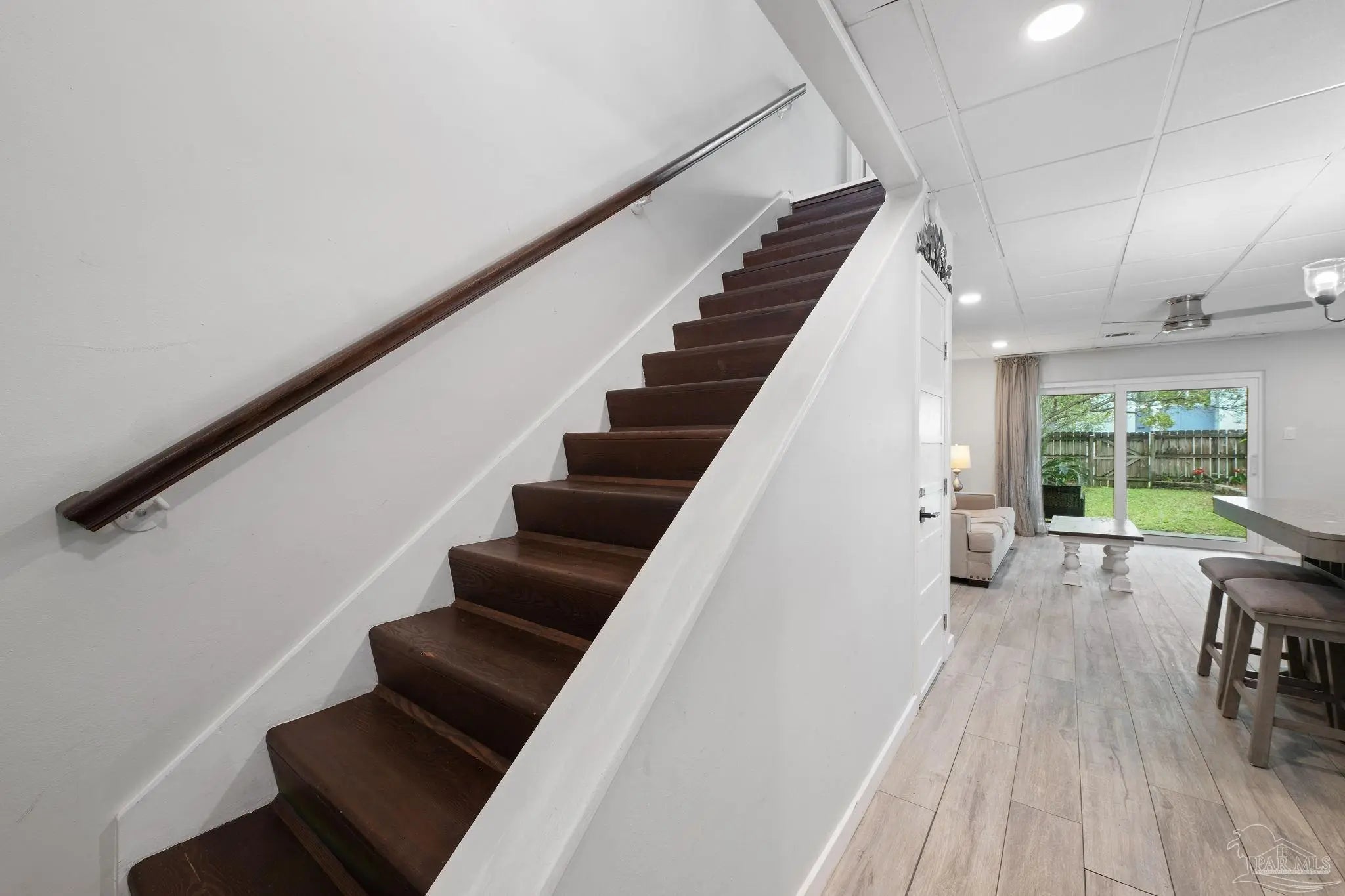 Lowest priced unit in Bahama Bay! Welcome to this end unit condo located just across the bridge from Pensacola Beach! Located in the golf cart friendly neighborhood of Gulf Breeze Proper, A+ schools, shopping, restaurants, boat ramps, and parks are all right around the corner. This 2 bedroom, 1.5 bath condo has a new roof, new hurricane impact windows & doors, and new exterior paint. The first floor is comprised of an open concept kitchen/living area with access to a private backyard, as well as a half bath and laundry. Upstairs, a full bath divides two spacious bedrooms. The primary bedroom features a wall of new windows to let in natural light, while still maintaining privacy from the vegetation outside. Amenities include a private clubhouse, pool, gym, sauna, laundry, and boat/RV parking. This condo would make a great investment or full time residence.