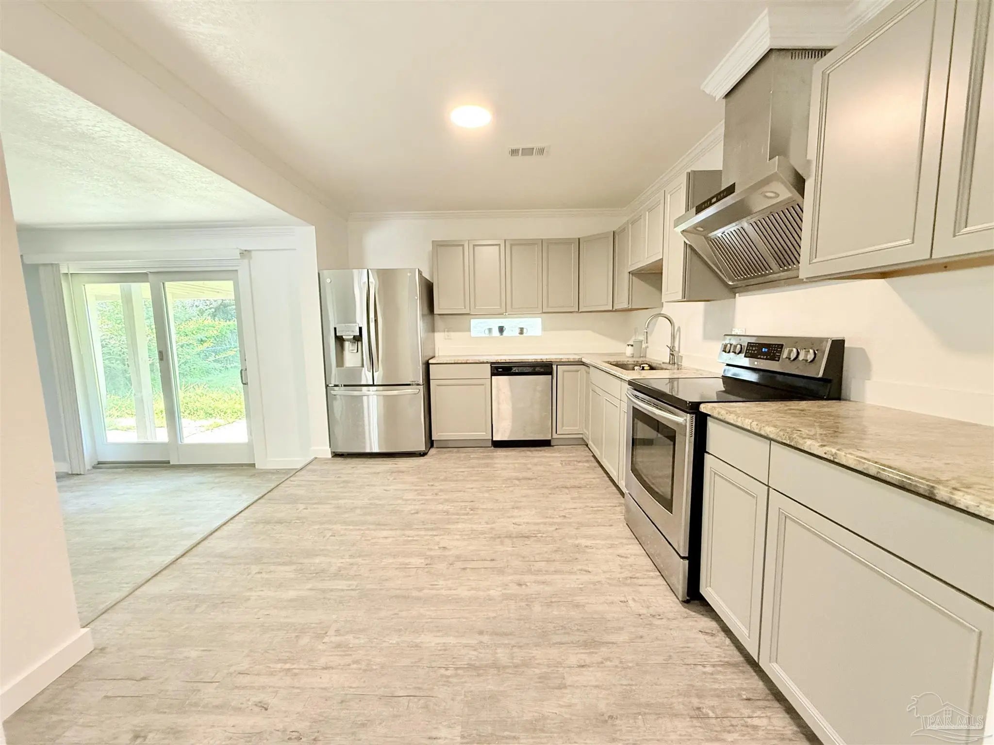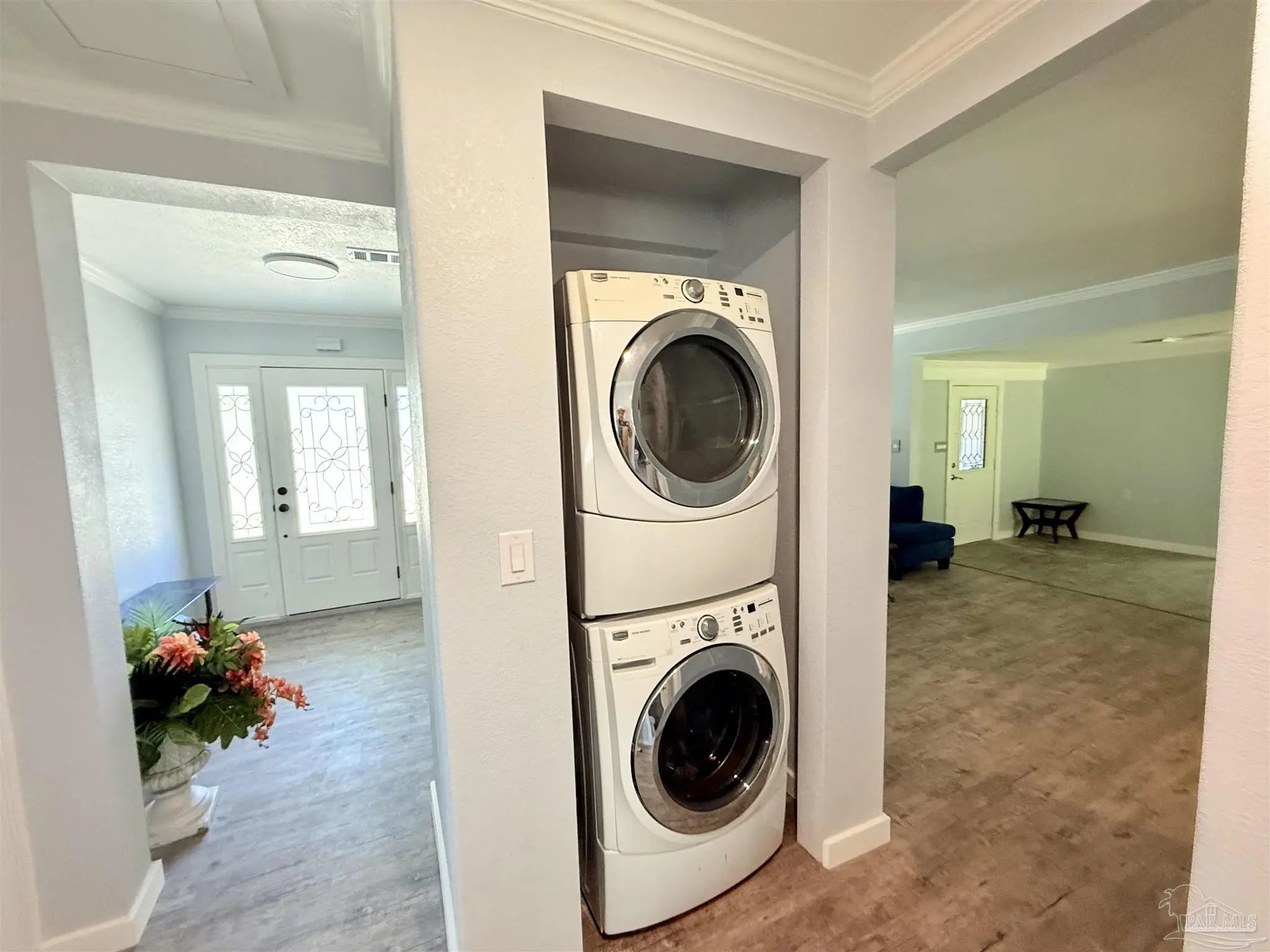 Charming 3-Bedroom Oasis with Modern Upgrades and Room to Breathe!** Discover this beautifully refreshed 3-bedroom, 2-bathroom home, blending modern style with everyday comfort. set on a generous half-acre lot, this property features, yard building and gardening house, lots of space and mature shade trees, creating a tranquil outdoor retreat where you can unwind and enjoy the serene surroundings. Step inside to find an inviting open-concept layout adorned with luxury vinyl plank flooring that flows seamlessly from room to room. The heart of the home, a stunning kitchen, boasts sleek granite countertops and high-end stainless steel appliances, making meal preparation a pleasure. This space effortlessly transitions to a spacious family room, ideal for entertaining friends or enjoying quality time with loved ones. Both bathrooms have been fully remodeled, showcasing elegant walk-in tile showers for a spa-like experience that will elevate your daily routine. Key upgrades, including a roof replaced in 2019, a brand-new HVAC system, and a new water heater, ensure peace of mind for years to come. Convenience is at your fingertips with a stackable washer and dryer set included, along with a two-car garage providing ample storage and parking solutions. This home is truly move-in ready, allowing you to settle in and start making memories right away! Please note that this charming property may require flood insurance, ensuring you’re well-prepared for the natural beauty surrounding your new home. Don’t miss out on the chance to experience this delightful blend of comfort and style—schedule your tour today and see for yourself why this home is perfect for you!