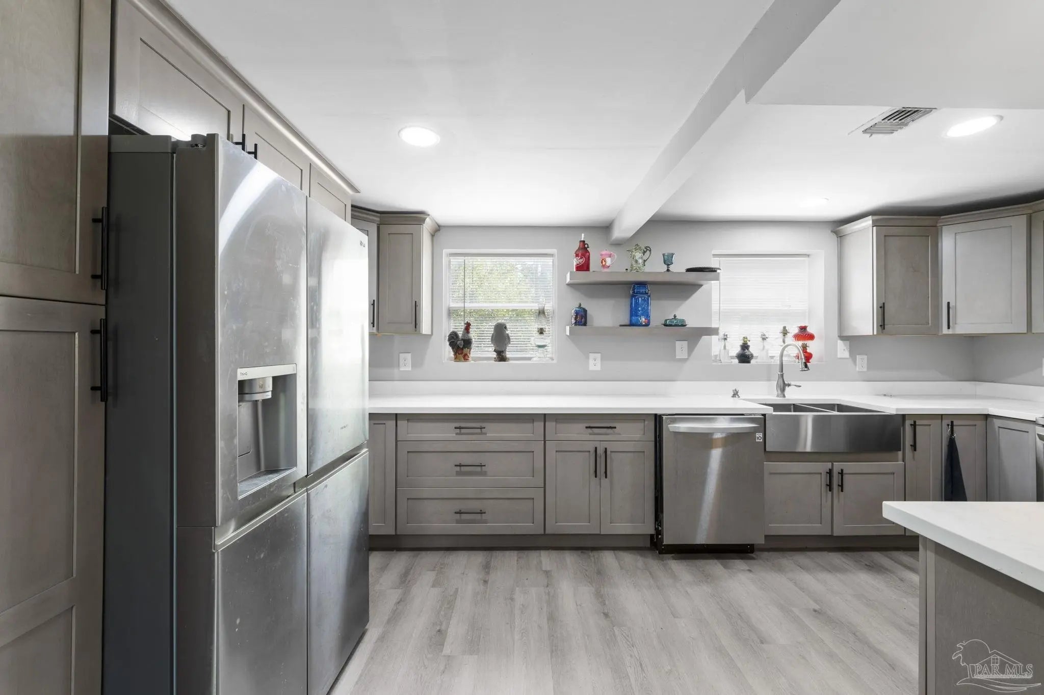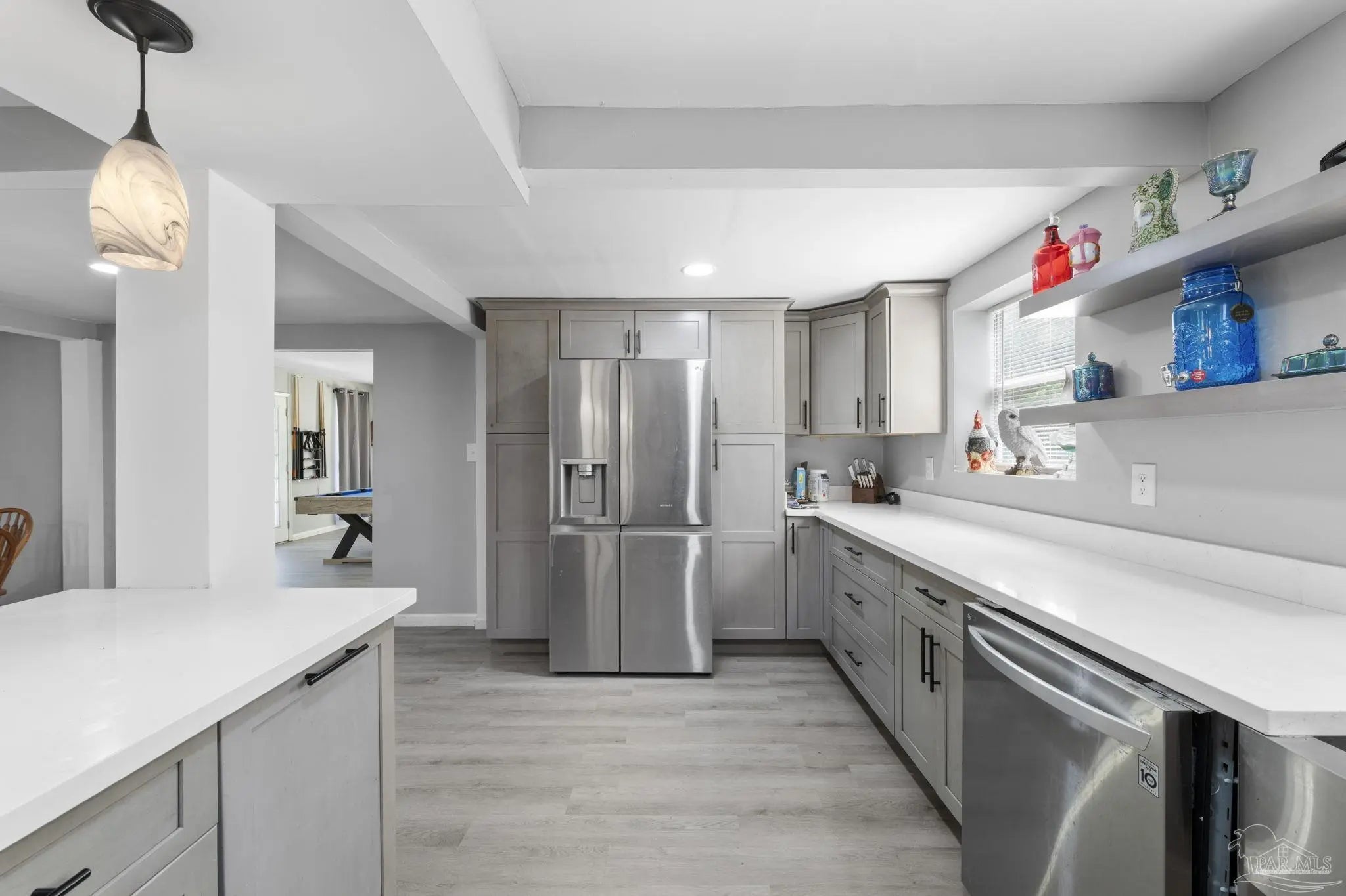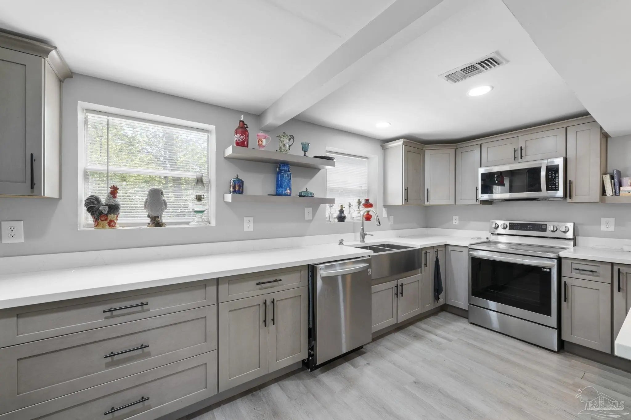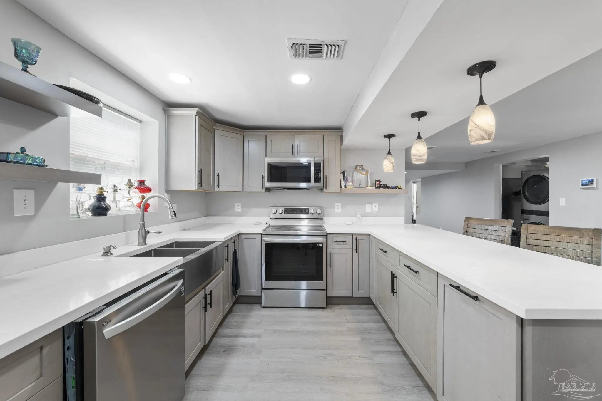Just one block from the bay, this stunning 4-bedroom, 2.5-bath home is your personal paradise! Fully updated with a sleek, modern kitchen featuring stainless steel appliances and stylish finishes throughout. Step outside to your oversized covered porch and sparkling saltwater pool — perfect for sun-soaked days and evening gatherings. The open-concept living room flows seamlessly to the pool for effortless indoor-outdoor living. With a durable metal roof and a massive 50x30 barn for boats, cars, or your RV, this property blends luxury and practicality. Plus, enjoy the convenience of boat ramp access just two blocks away, making it easy to launch straight into adventure. Whether you're entertaining or unwinding, this home truly has it all!