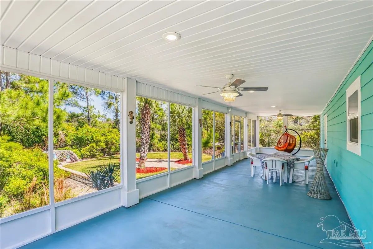 Welcome to a piece of paradise on Perdido Key! Imagine Living on an island with white sandy beaches but close to shopping and restaurants! COMMUNITY POOL! This 5 bedroom, 3 and a half bath home is waiting for you to move in! This property has had only one owner that has continuously maintained and beautified the home with upgrades throughout the years. The large front porch is such an inviting space for morning coffee or evening cocktails! As you walk through the front door you will be greeted by the warm open floor plan that includes the living area with a wood burning fireplace, amazing kitchen with a custom-built wine rack and the dining room directly ahead! The kitchen invites you to enjoy the large granite countertop island, an abundance of cabinets plus a pantry, double oven and all stainless steel appliances. Adjoining the kitchen is the dining room and door to the outside balcony and the lift. To the left of the kitchen is the large primary suite that includes a large bedroom, high ceilings, a door leading to the balcony, a his and hers walk in closets and an updated bathroom with a beautiful free-standing tub and faucet, a tile shower and his and her vanities. Down the hall you find the laundry room with more than ample space and continuing on is a bedroom to the right that leads to a Jack n’ Jill bathroom and to the bedroom on the left. To the right of the kitchen, you find another full bathroom and guest room. Down the stairs is a huge multi car garage with a unique private heated and cooled study/game room/he or she cave and a half bathroom! The back of the house has a large screened porch great for bird watching and a low maintenance back yard which is perfect for gatherings and enjoying our fantastic Florida weather!! This idyllic location is walking distance to the Gulf of America and the Gulf Island National Seashore. This house is a must see to appreciate all of its features and amenities.