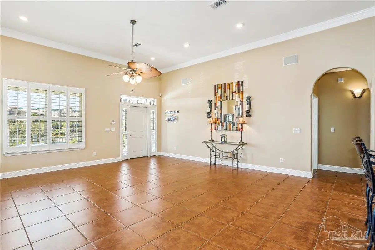 - Baseboards, Ceiling Fan(s), Crown Molding, High Ceilings, High Speed Internet, Recessed Lighting, Sound System, Smart Thermostat, Bonus Room, Game Room