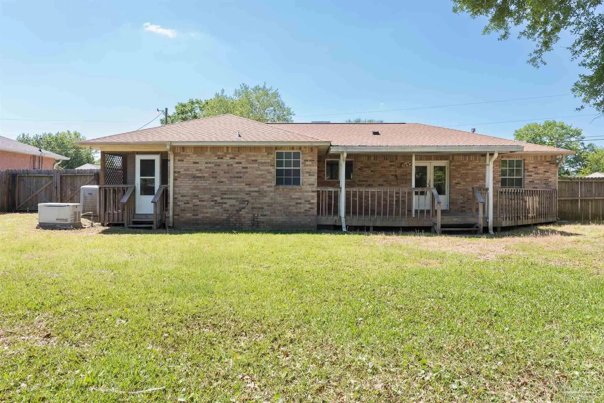 Great 3-Bedroom Home in a Quiet Cantonment Neighborhood Discover this beautifully maintained 3-bedroom, 2-bath single-family residence offering 1,599 square feet of comfortable living space on a spacious ¼-acre fully fenced lot. Nestled in a peaceful, friendly neighborhood, this property combines modern updates with timeless appeal. Step inside to find freshly painted interiors and a bright, welcoming atmosphere. The thoughtfully designed floor plan features a comfortable living area, a functional kitchen, and well-proportioned bedrooms—Great for everyday living and entertaining. Enjoy the confidence of recent upgrades, including a roof replacement in 2019, a new gas hot water heater installed in 2018, and a 22kW whole-home generator ensuring reliable comfort during any season. Outdoors, the expansive fenced yard offers ample space for children, pets, and gatherings. The property’s convenient location provides easy access to local schools, shopping, dining, and parks— so convenient for those seeking both comfort and community. This move-in ready home is a rare find in one of Cantonment’s most sought after areas. Schedule your private tour today and experience all this property has to offer. Buyer to verify all information during due diligence.
