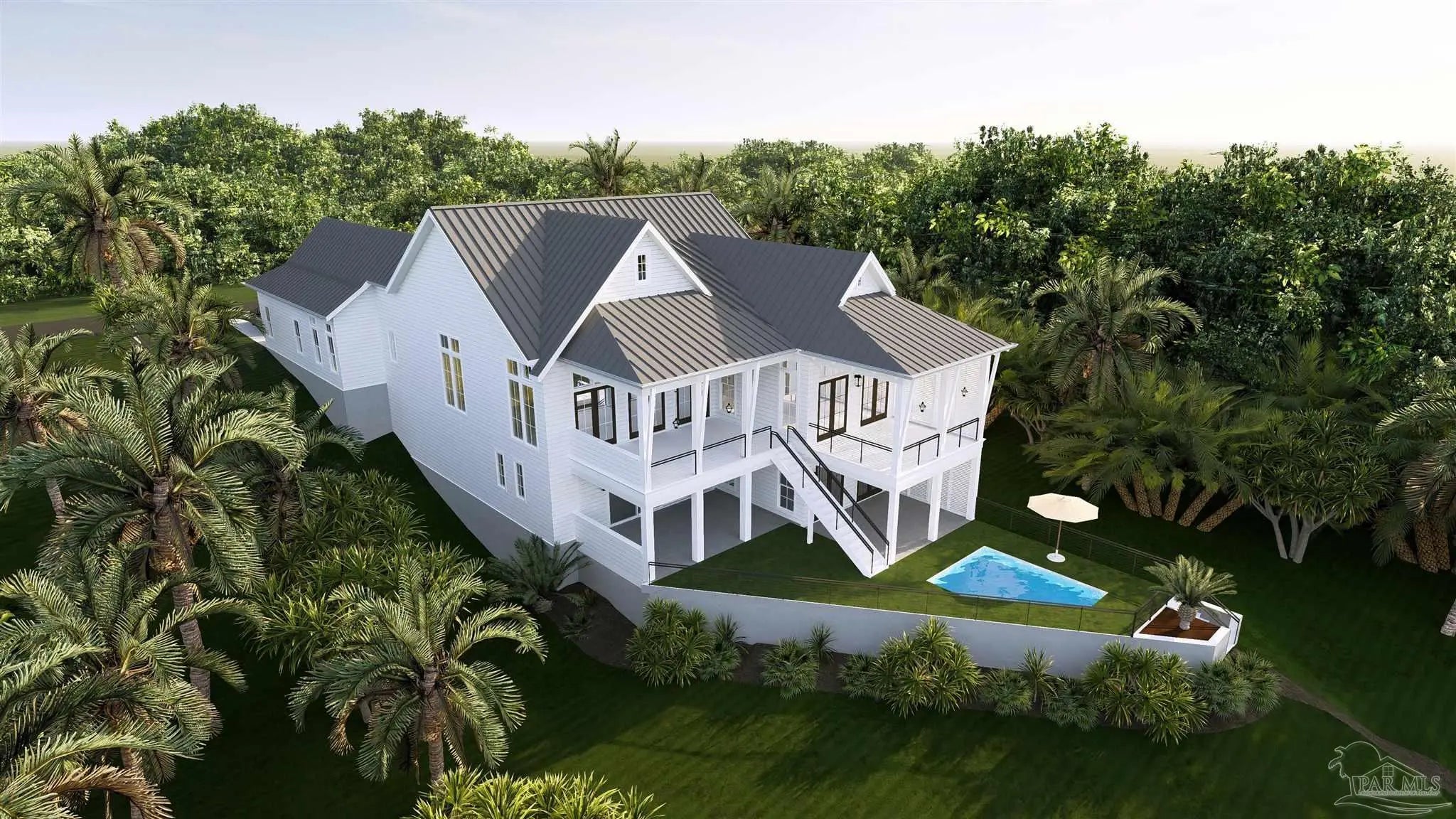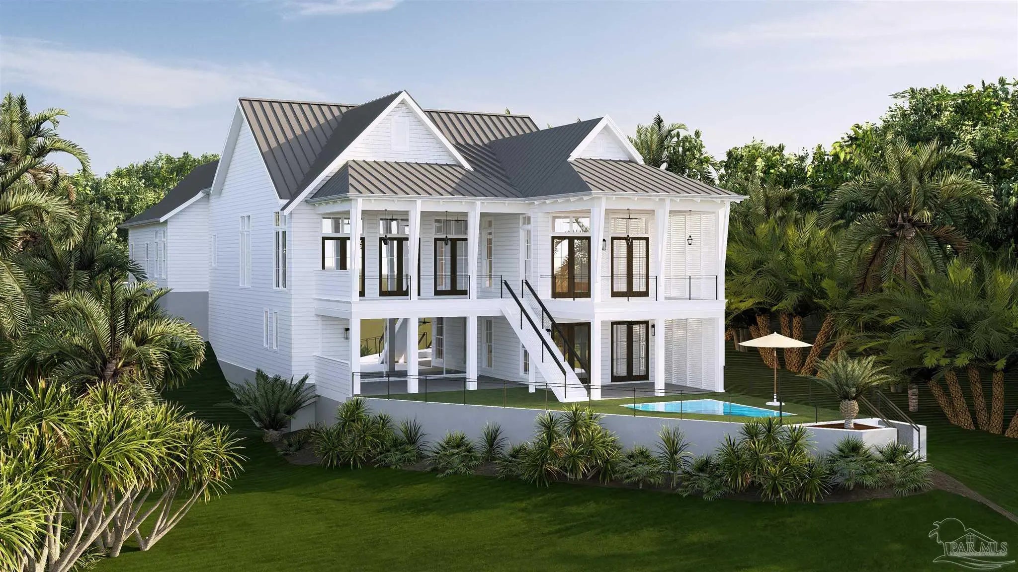 Welcome to this one-of-a-kind luxury residence. Situated in the highly desired Gulf Breeze Proper neighborhood, this brand-new custom home will blend timeless coastal architecture with sophisticated modern finishes and thoughtful functionality. Spanning 4,473 square feet of heated living space and over 6,400 total square feet, this two-story home will feature 4 bedrooms, 4.5 bathrooms, and a 2-car garage, offering elevated living for both relaxation and entertainment.You will step through the inviting front porch into a light-filled open-concept living and dining area with soaring 12-foot ceilings, custom millwork, and expansive glass French doors that will lead to multiple balconies with stunning water views, overlooking lush landscaping, and a serene private pool oasis. The gourmet kitchen will be a chef’s dream with high-end appliances, a walk-in scullery, and custom cabinetry. You will retreat to the elegant primary suite on the main floor, complete with private patio access, a spacious walk-in closet, and a luxurious en suite bath. The ground level will feature a full guest suite, a large game room, and direct access to the pool deck — perfect for entertaining. Outdoors, you will enjoy Gulf Coast breezes from the two large covered balconies, a resort-style pool, and a dedicated outdoor kitchen area. The professional-grade landscaping, privacy louvers, and a gently sloping lot will provide both tranquility and curb appeal. This will be a thoughtfully designed home with high-end finishes throughout, offering a true blend of form and function for luxury coastal living.
