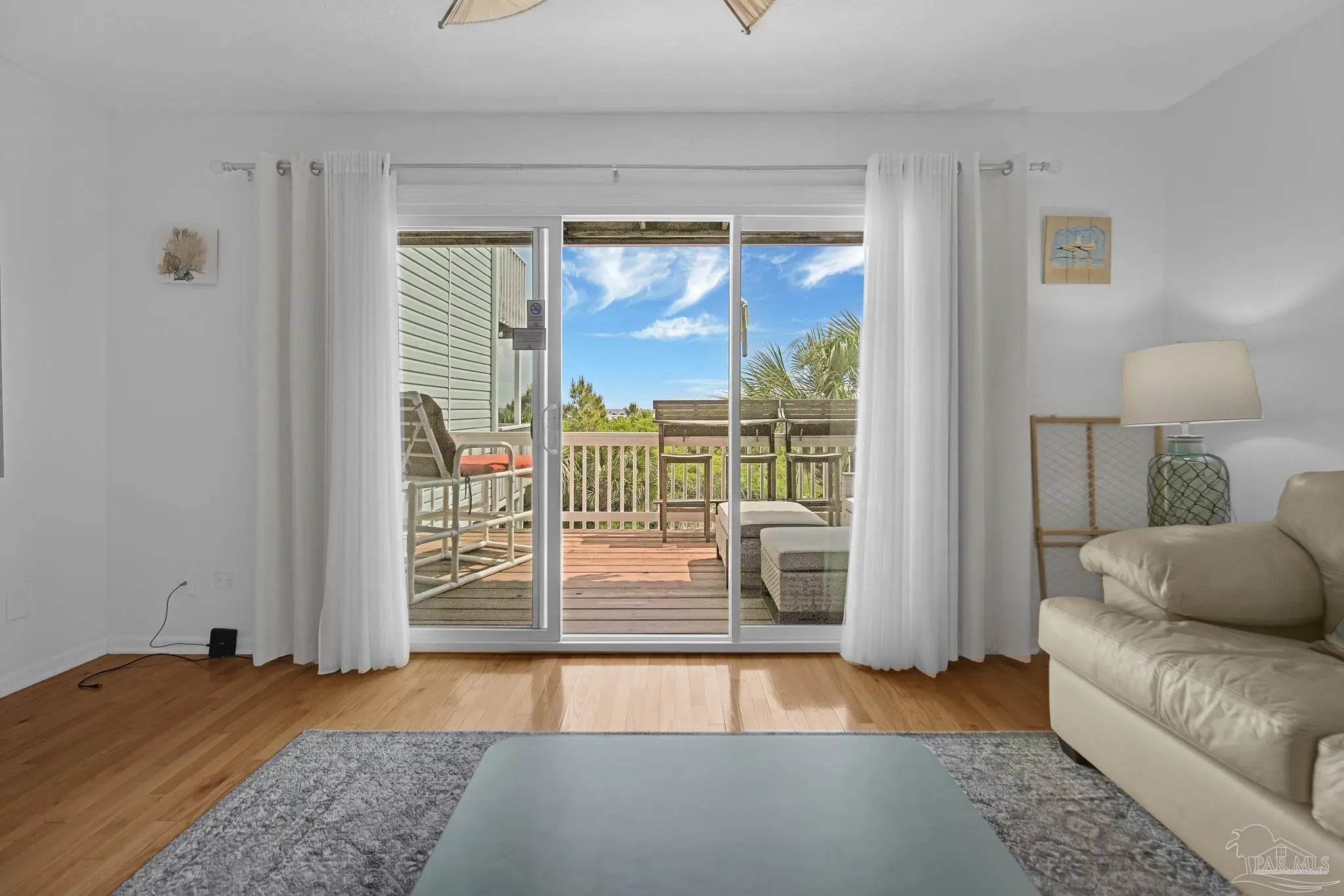 One of the lowest priced 2 bedroom options on Navarre Beach with Water Views from Every Room | Low HOA | Short-Term Rentals Allowed-Experience the ultimate coastal lifestyle with this beautifully maintained townhome nestled perfectly between Navarre Beach and Santa Rosa Sound. Enjoy breathtaking water views from every room, with three private balconies offering front-row seats to vibrant sunrises and playful dolphins in the distance. Boasting a 2024 roof, newer HVAC and water heater, this home is truly move-in ready and low-maintenance. The spacious, sunlit two-story layout features an open-concept main floor perfect for entertaining, and a covered lower-level deck with BBQ grill—an ideal setup for family gatherings or relaxing after a day on the water. Upstairs, you'll find two private bedrooms separated from the main living space- ensuring peace and quiet. The kitchen includes a breakfast bar, coffee nook, and updated backsplash, seamlessly flowing into the living area and out onto a second-floor balcony. Take a short stroll to the private neighborhood dock for fishing, paddleboarding, or a refreshing dip. The heated community pool reserved for residents only is just steps away. Access Navarre Beach and local favorites like Juana's Pagodas easily by golf cart for dining, live music, and family fun. With a low HOA that maintains the grounds year-round and allows short-term rentals, this property offers both lifestyle and investment potential. Whether you're seeking a primary residence, vacation retreat, or income-producing rental, this townhome delivers.