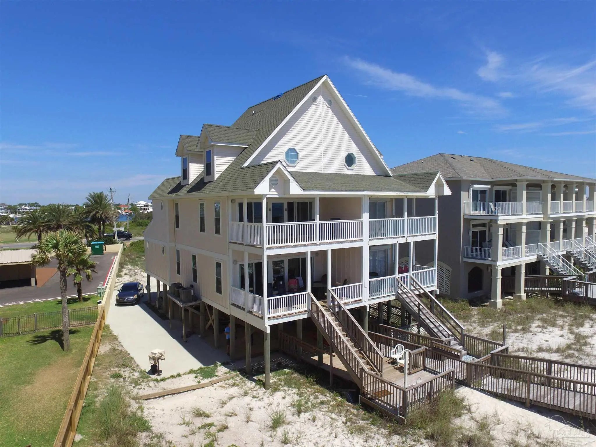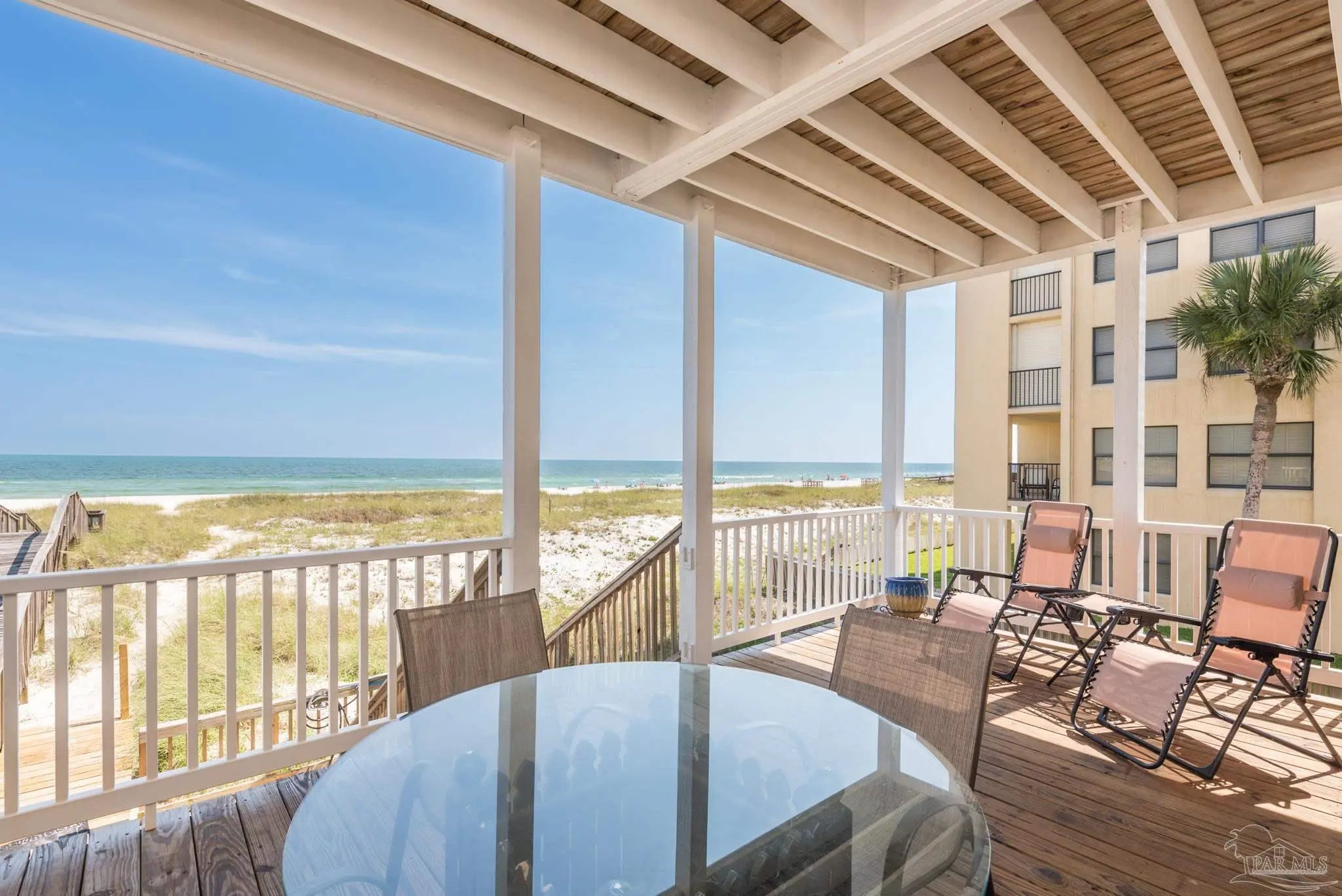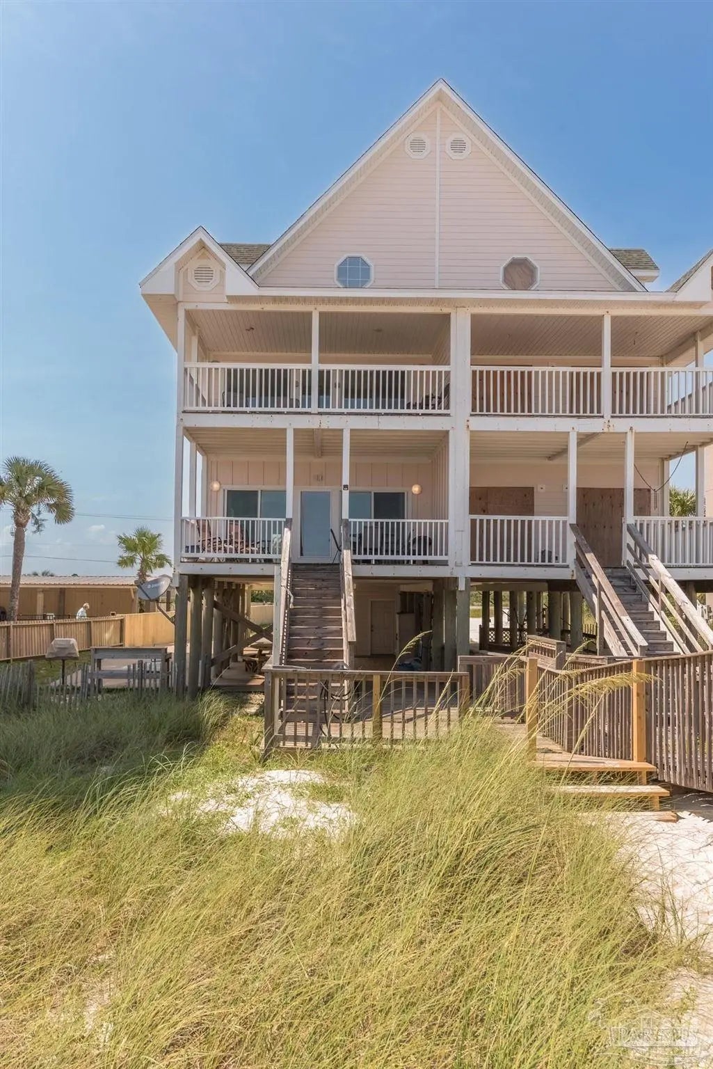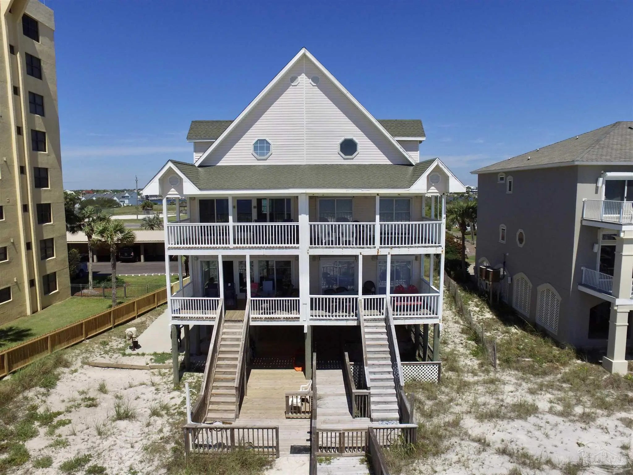 ***BEST VALUE ON THE BEACH!*** OWN THE BEACH at this fully furnished GULF FRONT 1/2 duplex with 36 feet of PRIVATE BEACH and excellent rental potential! Ideally located in a low density area of Perdido Key within walking distance to multiple restaurants including FloraBama, Waffle House and Crab Trap. With 2,560 square feet and water views from every room, it features 3 spacious bedrooms, PLUS Hall Bunks making it an excellent vacation rental with beds for 12 guests! Each BR has its own private bath and the primary BR has a private gulf front balcony. This home features two Gulf Facing balconies and has MANY RECENT UPDATES including Two Hot water heaters, three A/C condensers and air handlers 2023/2024, updated bathrooms in 2024, kitchen updated 2022, windows 2019. On the main living floor, the well designed kitchen is large enough for several cooks and the updated wet bar even has a mini-fridge. An updated powder room and a laundry room with full size W/D and extra refrigerator are also on the first floor. The ground level has a storage room and plenty of parking space for multiple vehicles, PLUS a BBQ grill, prep table, picnic table and paved area that offers plenty of space for entertaining and dining. All measurements are approximate. Buyer or Buyers agent to verify all information to buyer's satisfaction. Being sold FULLY FURNISHED. Seller is a licensed realtor in FL and AL and is listing agent.