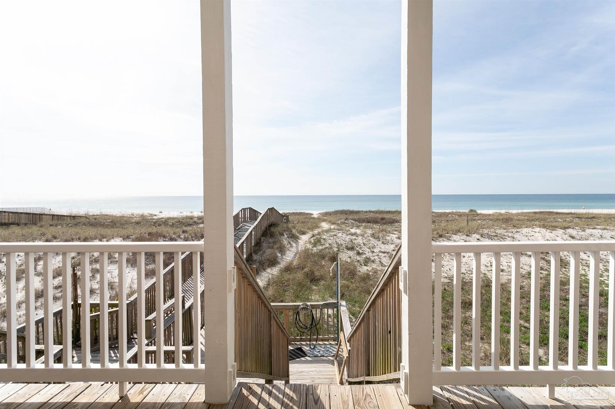***BEST VALUE ON THE BEACH!*** OWN THE BEACH at this fully furnished GULF FRONT 1/2 duplex with 36 feet of PRIVATE BEACH and excellent rental potential! Ideally located in a low density area of Perdido Key within walking distance to multiple restaurants including FloraBama, Waffle House and Crab Trap. With 2,560 square feet and water views from every room, it features 3 spacious bedrooms, PLUS Hall Bunks making it an excellent vacation rental with beds for 12 guests! Each BR has its own private bath and the primary BR has a private gulf front balcony. This home features two Gulf Facing balconies and has MANY RECENT UPDATES including Two Hot water heaters, three A/C condensers and air handlers 2023/2024, updated bathrooms in 2024, kitchen updated 2022, windows 2019. On the main living floor, the well designed kitchen is large enough for several cooks and the updated wet bar even has a mini-fridge. An updated powder room and a laundry room with full size W/D and extra refrigerator are also on the first floor. The ground level has a storage room and plenty of parking space for multiple vehicles, PLUS a BBQ grill, prep table, picnic table and paved area that offers plenty of space for entertaining and dining. All measurements are approximate. Buyer or Buyers agent to verify all information to buyer's satisfaction. Being sold FULLY FURNISHED. Seller is a licensed realtor in FL and AL and is listing agent.