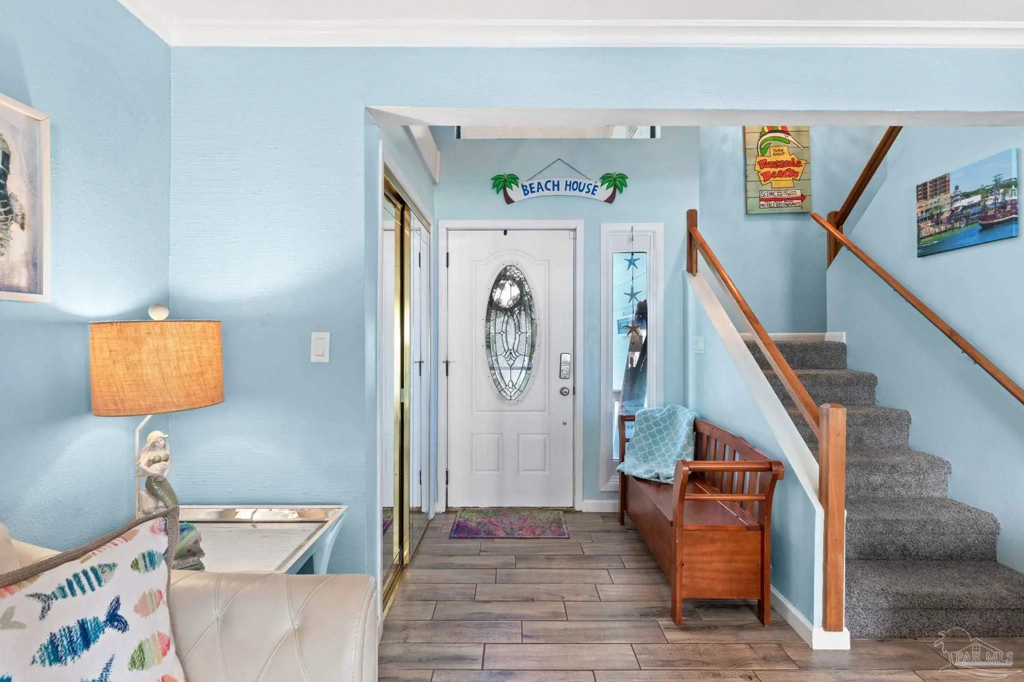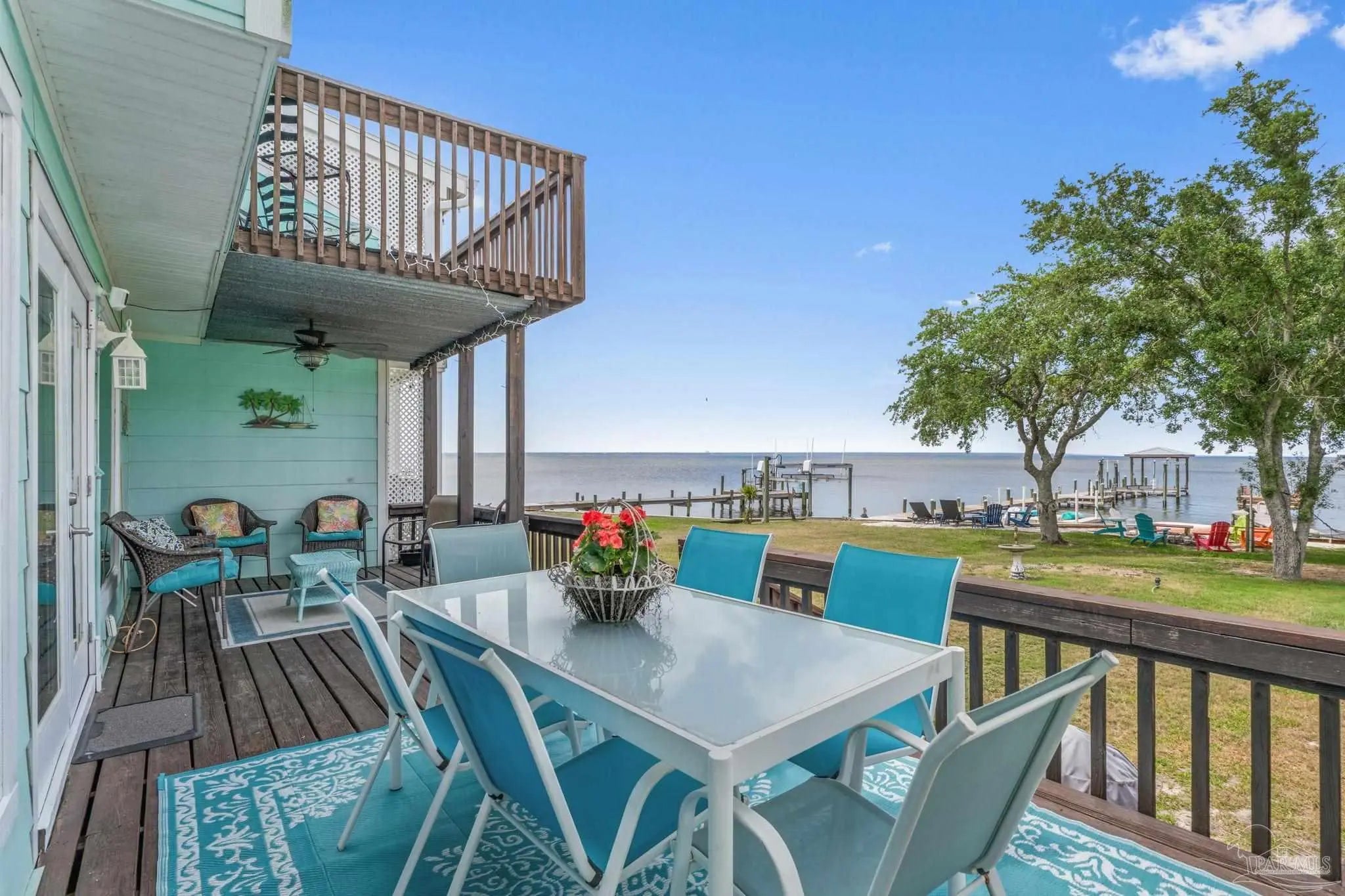 Waterfront townhome with great views of Pensacola Bay and stunning sunsets. Boat Dock and Pier. Waterfront gathering area with fire pit for entertaining family and friends. Master Bedroom has a balcony. Home features an updated kitchen with bar & pantry. Plenty of natural light with ample windows for viewing the stunning waterfront. Master bath features walk-in shower. Large deck off the back of the livings area partially covered. This is a great opportunity to own Gulf Breeze Waterfront for under $500K.