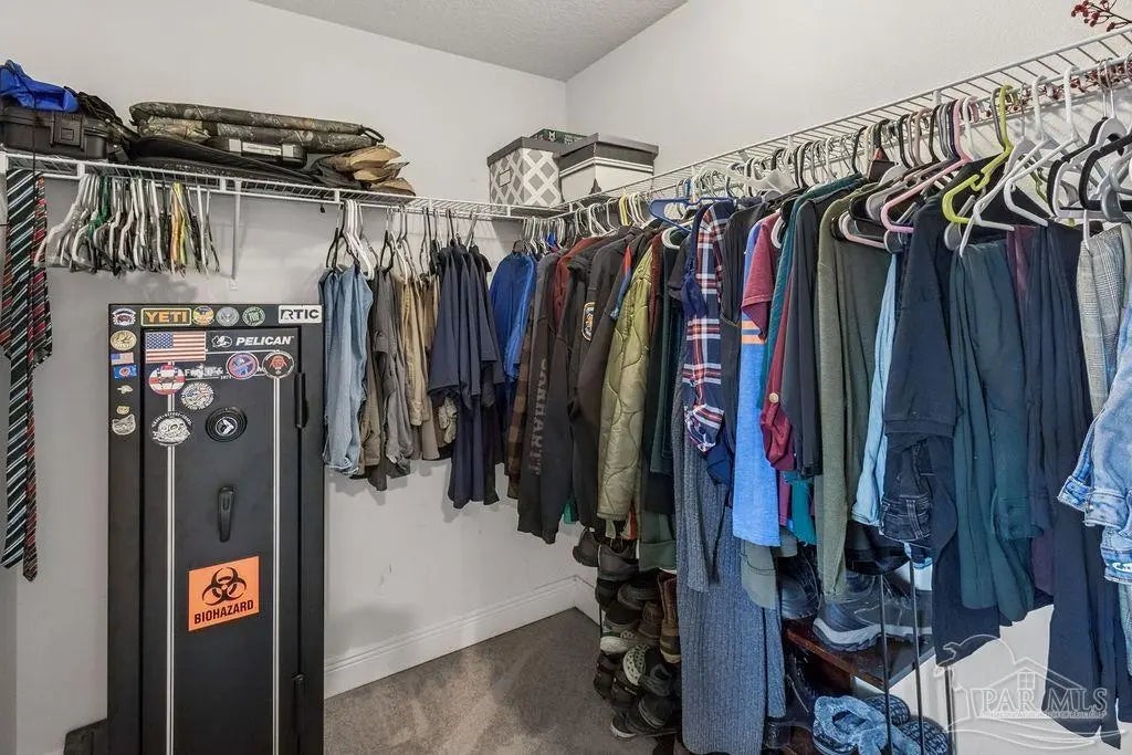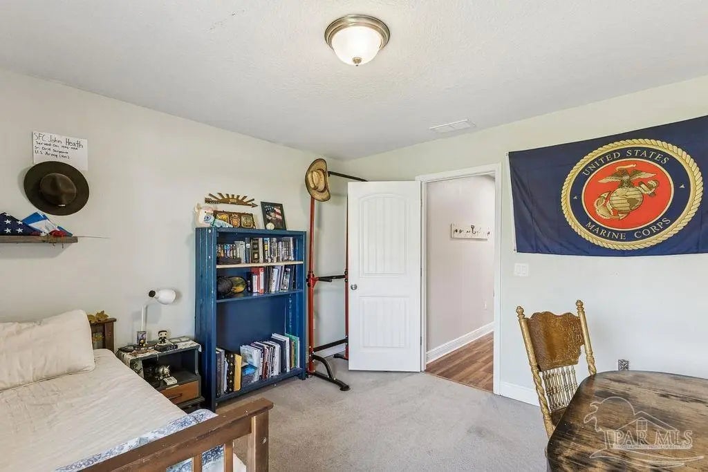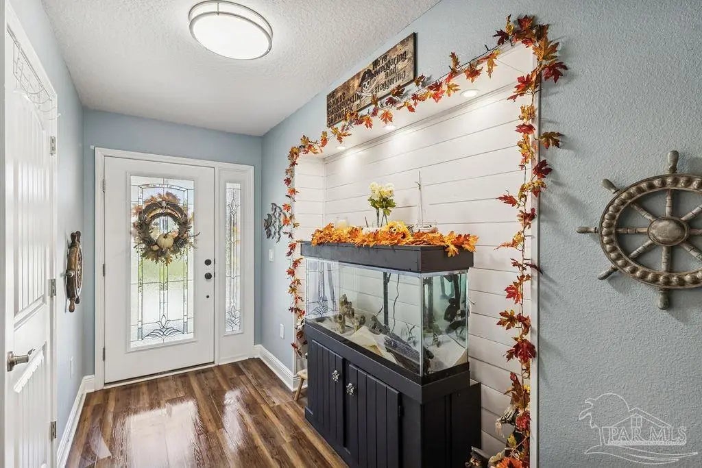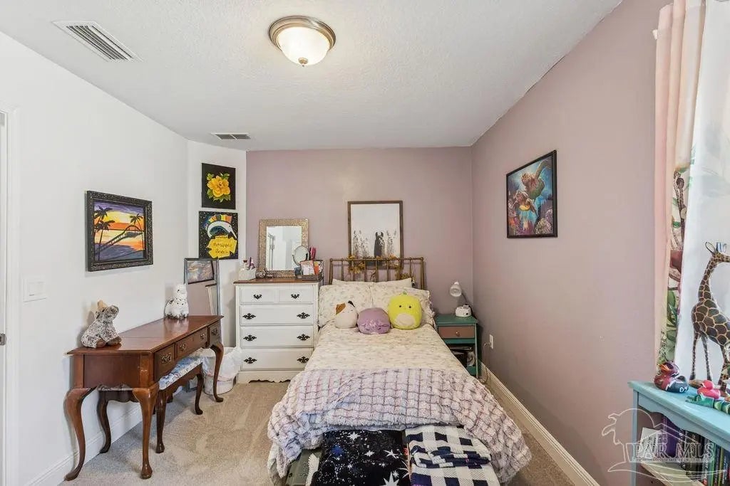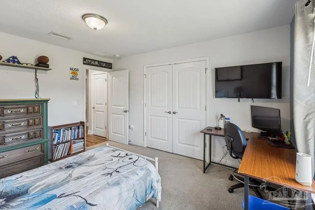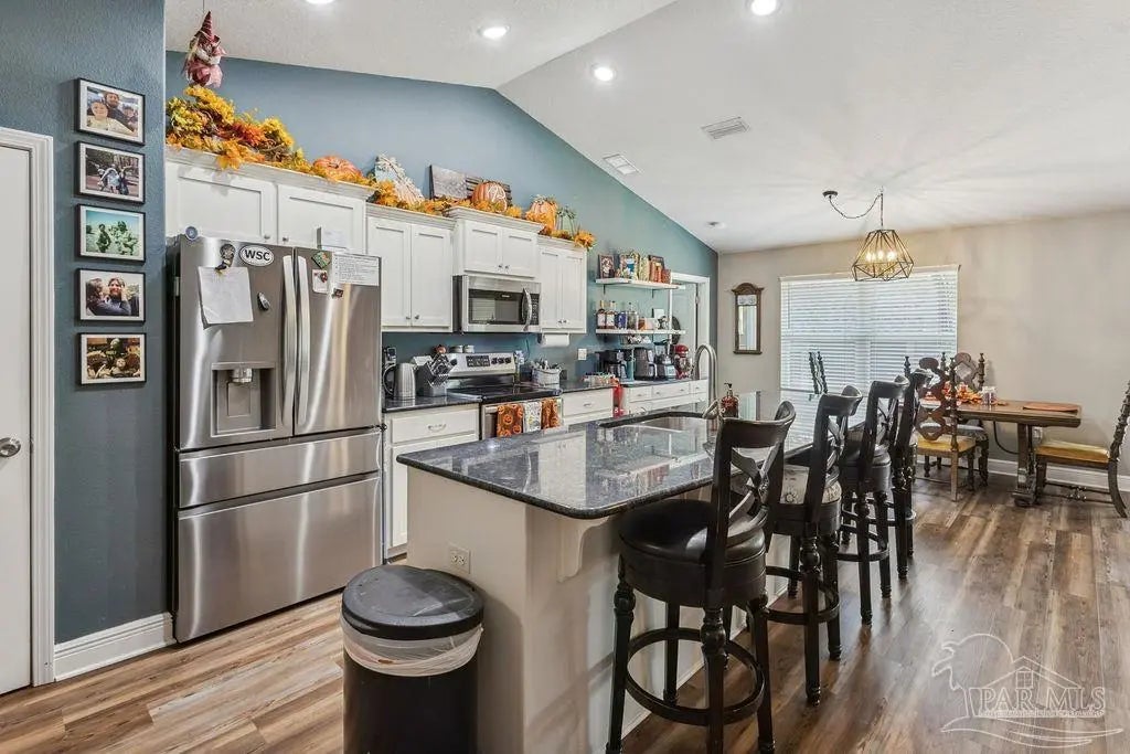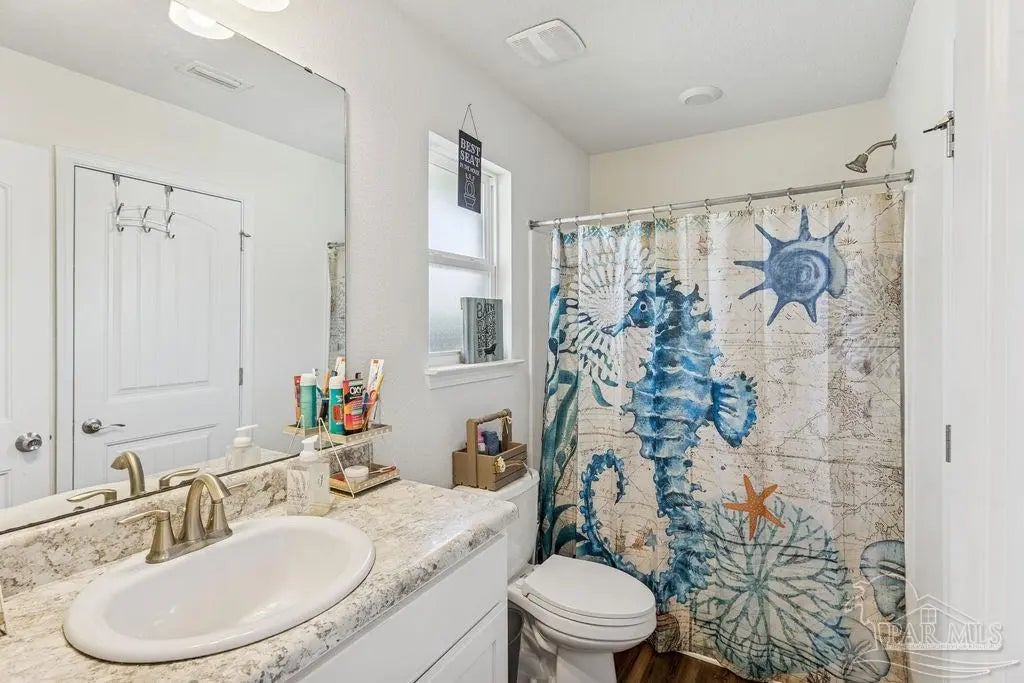 Welcome to this spacious 4BR/3BA home with an additional office/bonus room, located in a quiet one-way-in, one-way-out neighborhood that’s perfect for families. This well-loved community is close to town and shopping, and its layout makes it ideal for walking, bike riding, and giving kids a little extra room to roam. The kitchen features granite countertops, a large island with breakfast bar, a roomy breakfast nook, nice pantry, and an additional buffet with cabinets and counter space. The split bedroom layout includes an oversized primary suite with a large shower, double vanities, a private water closet, and a generous walk-in closet. Bedrooms 3 and 4 share a convenient Jack-and-Jill bath, while Bedroom 2 has its own full hall bath nearby. A separate bonus room provides excellent flexibility for a home office, playroom, studio, or hobby space. This room is fully insulated with interior access and secure electronic entry for added convenience. New luxury vinyl plank flooring flows throughout the main living areas, offering a modern, durable, and low-maintenance finish. Step outside to enjoy the open patio, fenced backyard with double gate, and a custom-built storage building—perfect for a workshop, man cave, or she shed. Additional features include a full-yard sprinkler system on city water for easy lawn care and an annual termite bond that will transfer at closing. Centrally located near I-10, shopping, Whiting Field, NAS Pensacola, and top-rated schools—plus just a quick 30-minute ride to the beach!