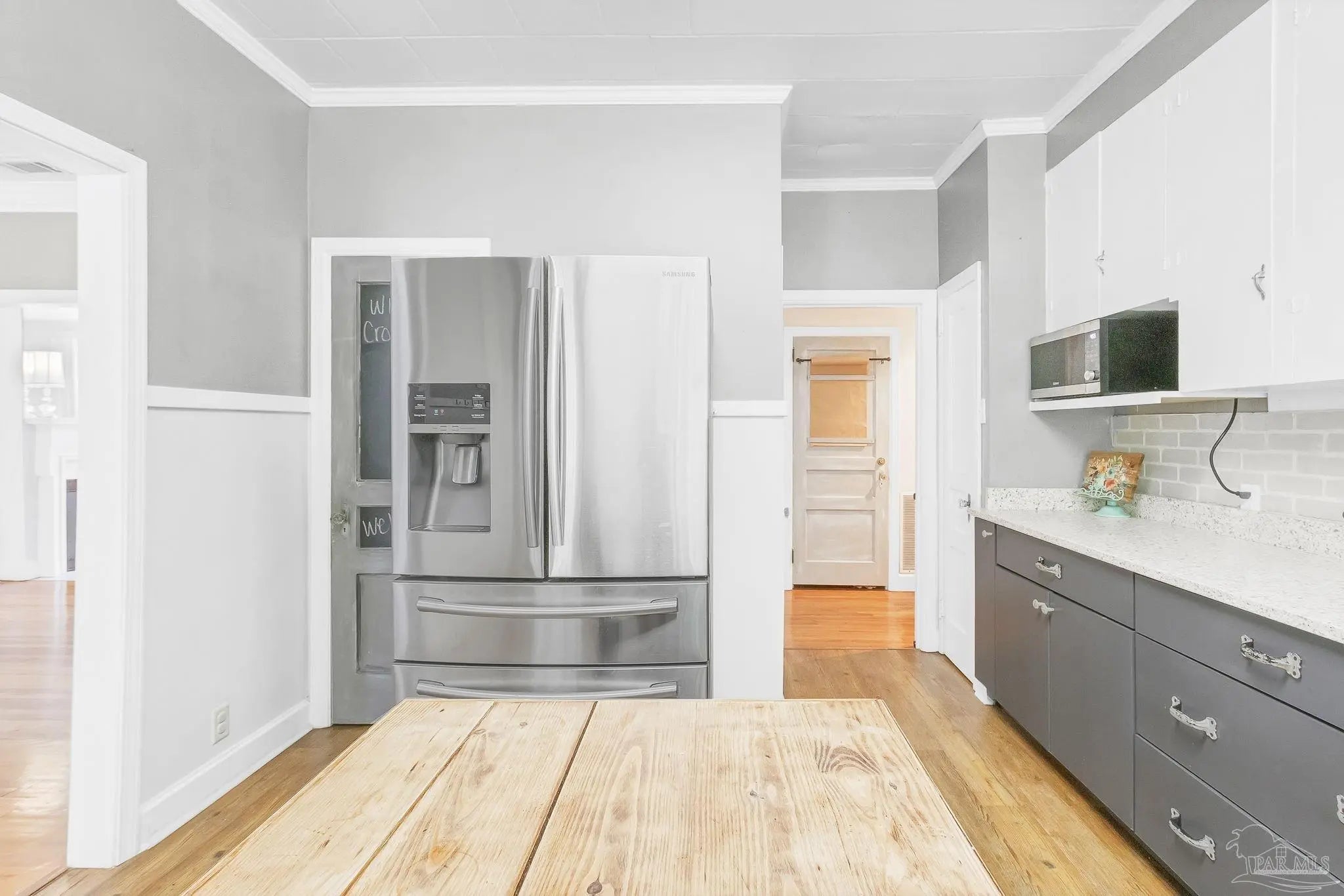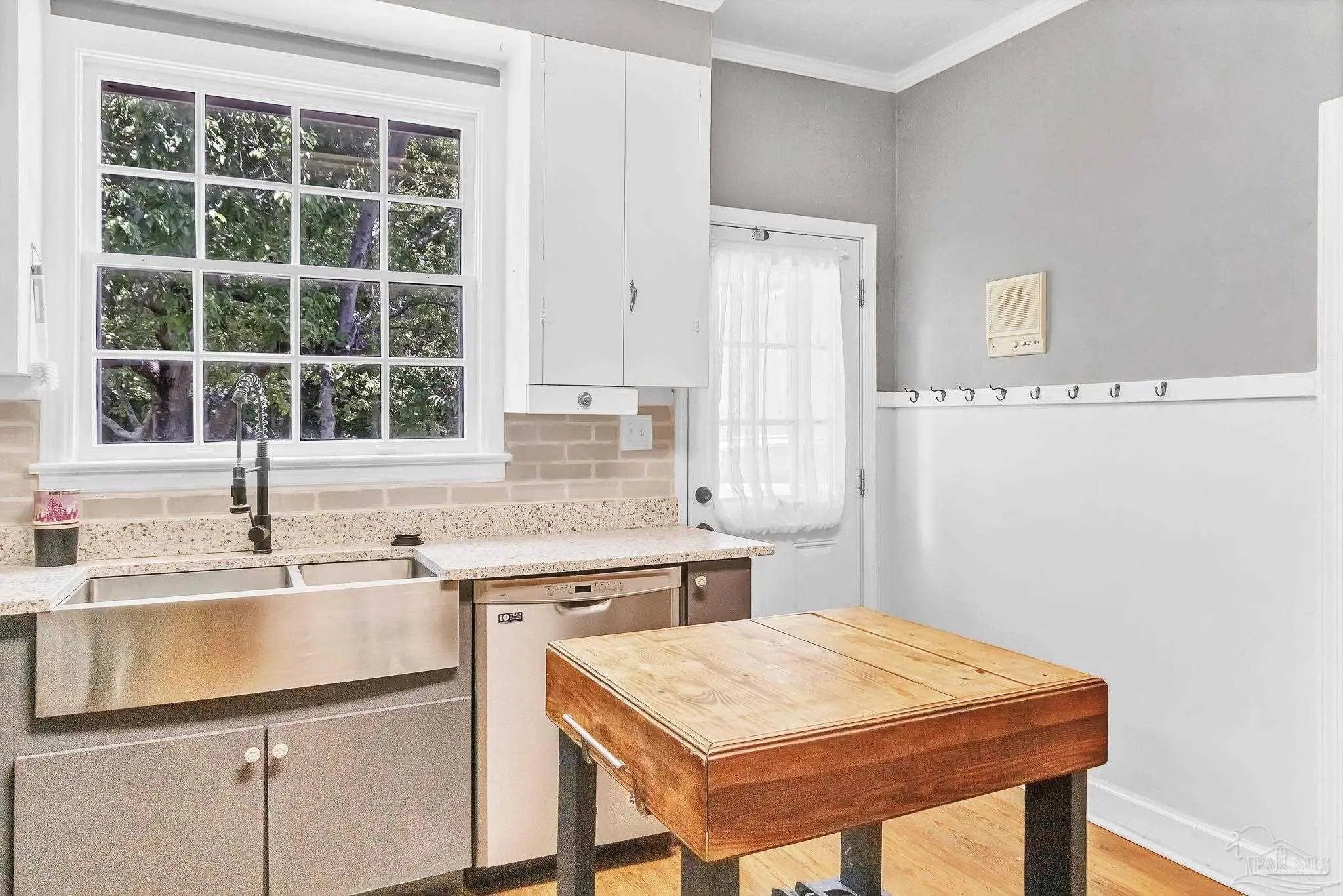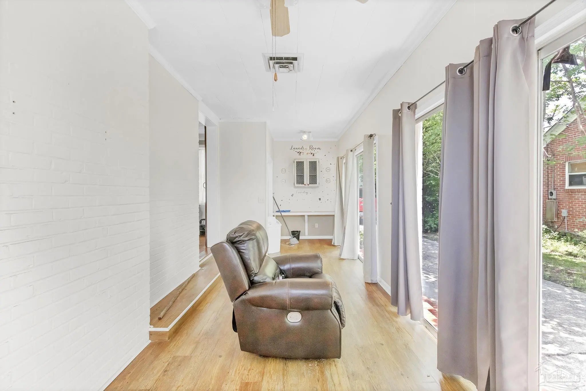 This charming white brick residence features 3 spacious bedrooms and 2 full bathrooms, beautifully accented with rich wood flooring throughout. Elegant wood doors and vintage glass doorknobs add character, while high ceilings and crown molding lend an open, refined ambiance. Step inside to a cozy living area centered around a wood-burning fireplace with a classic mantle—perfect for relaxing evenings. The open layout effortlessly connects the living room, dining area, and kitchen, making it ideal for entertaining and everyday living. The generous master suite includes its own private bath and convenient hallway access, providing a peaceful retreat. Bedrooms two and three are connected in a functional Jack and Jill style, ideal for families or guests. A versatile sunroom also doubles as the utility room, offering extra flexibility and natural light. One of the standout features of this property is the detached upstairs studio garage apartment, complete with its own kitchen and bathroom. This bonus space is perfect for rental income, a guest suite, or a private office. Don’t miss your chance to own this unique and inviting home on East Pine Street. Contact us today to schedule a private tour and experience its warmth and character for yourself.