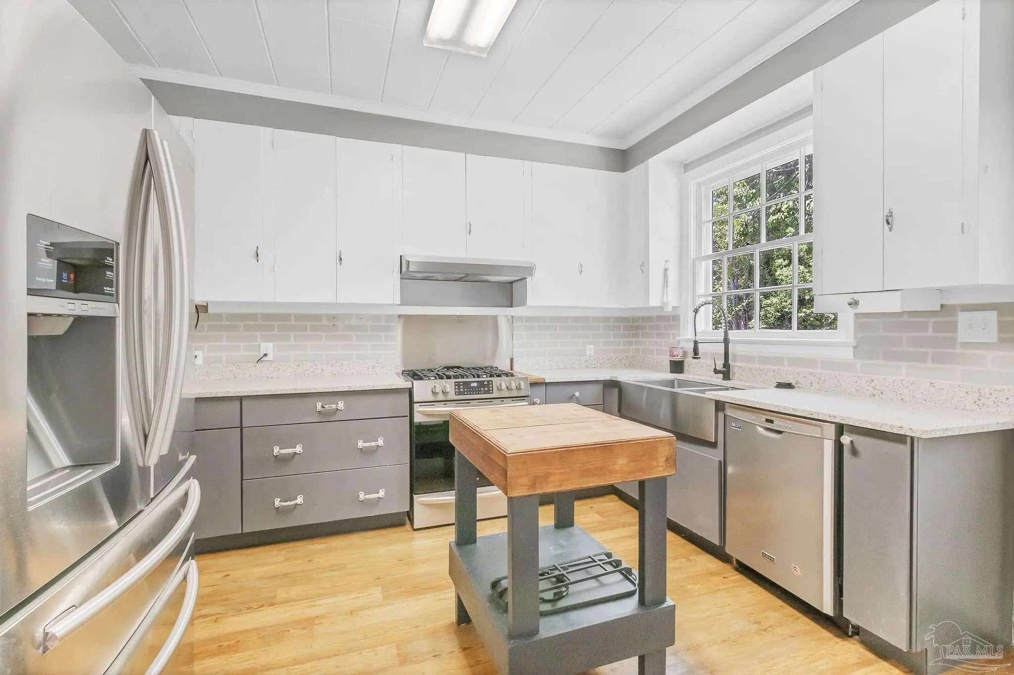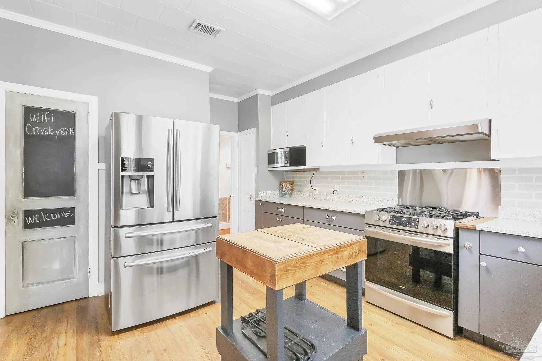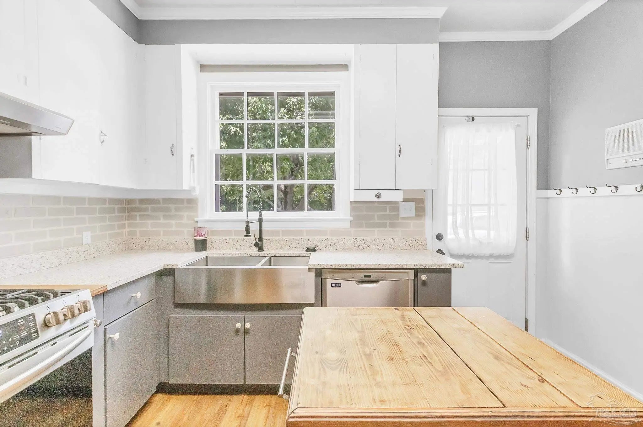 This charming white brick residence features 3 spacious bedrooms and 2 full bathrooms, beautifully accented with rich wood flooring throughout. Elegant wood doors and vintage glass doorknobs add character, while high ceilings and crown molding lend an open, refined ambiance. Step inside to a cozy living area centered around a wood-burning fireplace with a classic mantle—perfect for relaxing evenings. The open layout effortlessly connects the living room, dining area, and kitchen, making it ideal for entertaining and everyday living. The generous master suite includes its own private bath and convenient hallway access, providing a peaceful retreat. Bedrooms two and three are connected in a functional Jack and Jill style, ideal for families or guests. A versatile sunroom also doubles as the utility room, offering extra flexibility and natural light. One of the standout features of this property is the detached upstairs studio garage apartment, complete with its own kitchen and bathroom. This bonus space is perfect for rental income, a guest suite, or a private office. Don’t miss your chance to own this unique and inviting home on East Pine Street. Contact us today to schedule a private tour and experience its warmth and character for yourself.