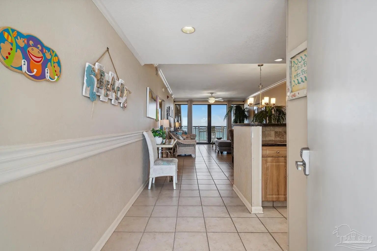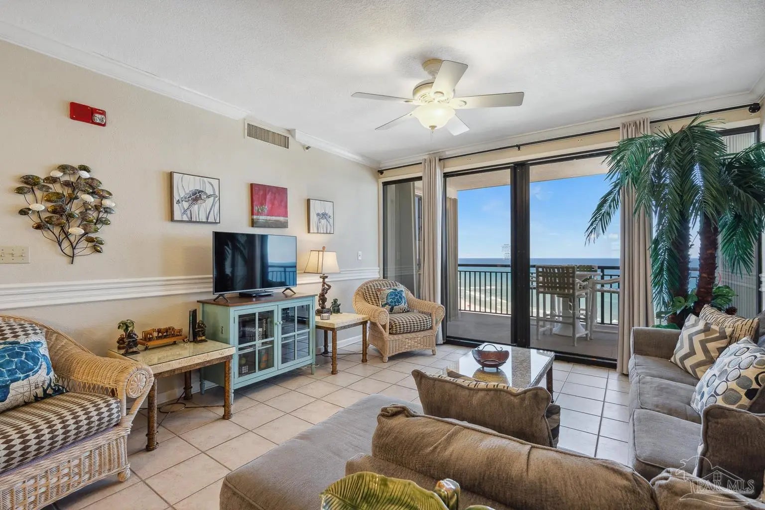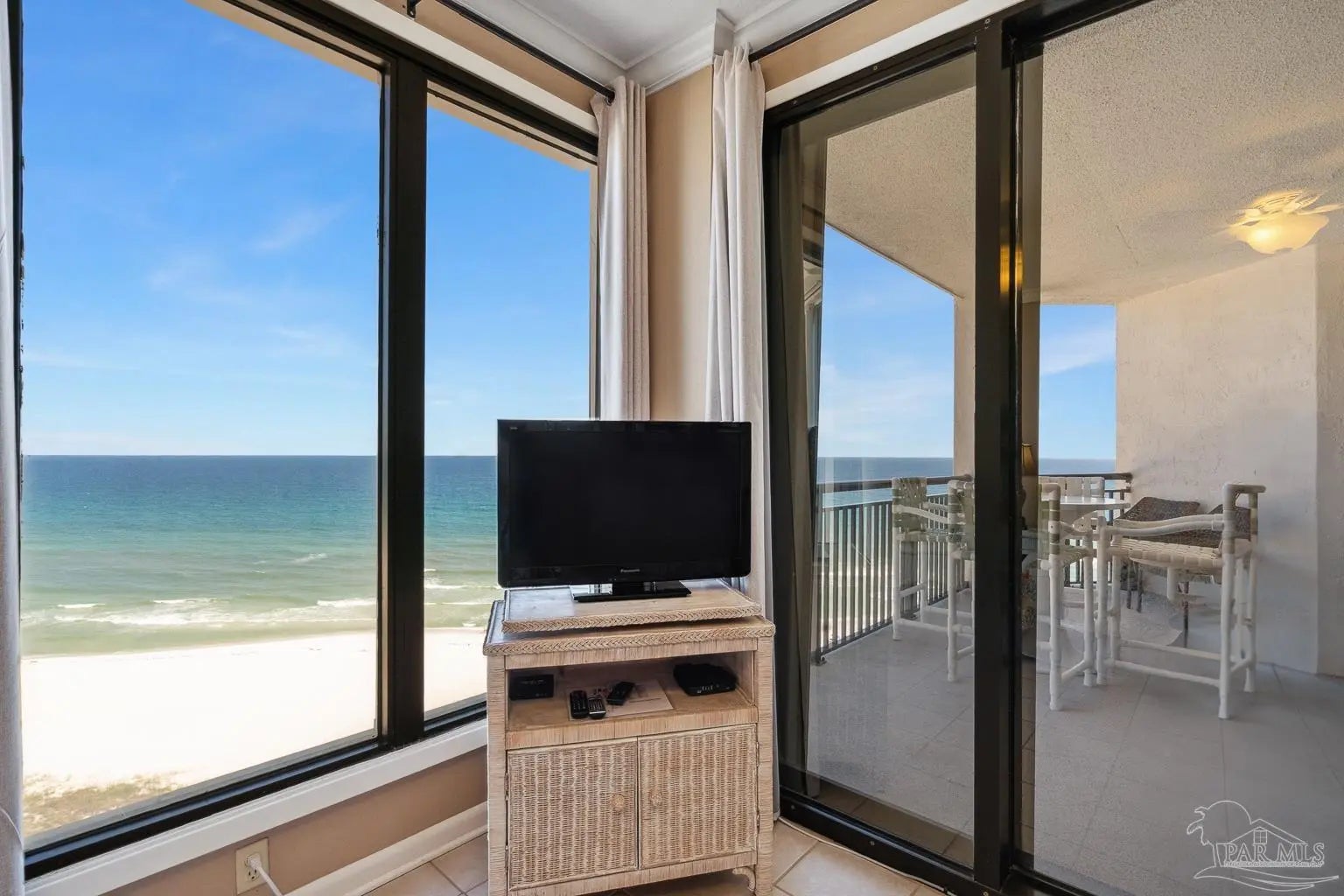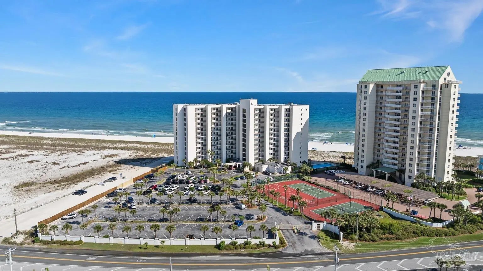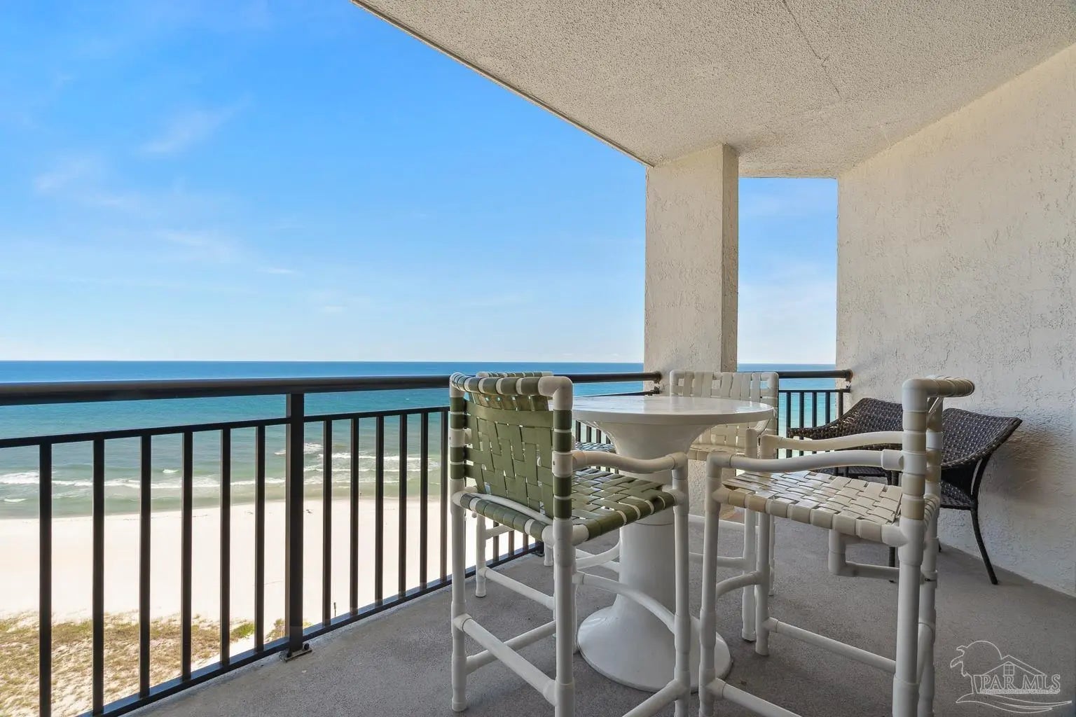 Welcome to your Navarre Beach getaway! This beautifully maintained 2-bedroom, 2-bathroom condo on the 12th floor of Navarre Towers offers stunning, panoramic views of the Gulf from an expansive private balcony—perfect for relaxing, entertaining, or simply enjoying the sights and sounds of the waves. Located directly on the Gulf side of Navarre Beach, this spacious unit features a full kitchen, a dedicated dining area, and a comfortable living space filled with natural light. The primary suite boasts breathtaking Gulf views and a private bathroom with oversized closet and a split double vanity, while the second bedroom and additional full bath provide comfort for guests or family. A full-sized laundry room adds convenience, making this condo ideal for both everyday living and extended stays. Exterior storage closet also included with ownership - perfect as an owner's closet or to keep your beach gear in! Navarre Towers also offers a range of amenities, including a Gulf-front community pool, tennis courts, fitness room, and a gated entry. Whether you’re seeking a primary residence, vacation home, or investment property, this condo provides the perfect blend of comfort, views, and beachfront lifestyle. Don’t miss your opportunity to own a piece of paradise on Navarre Beach—schedule your private showing today!