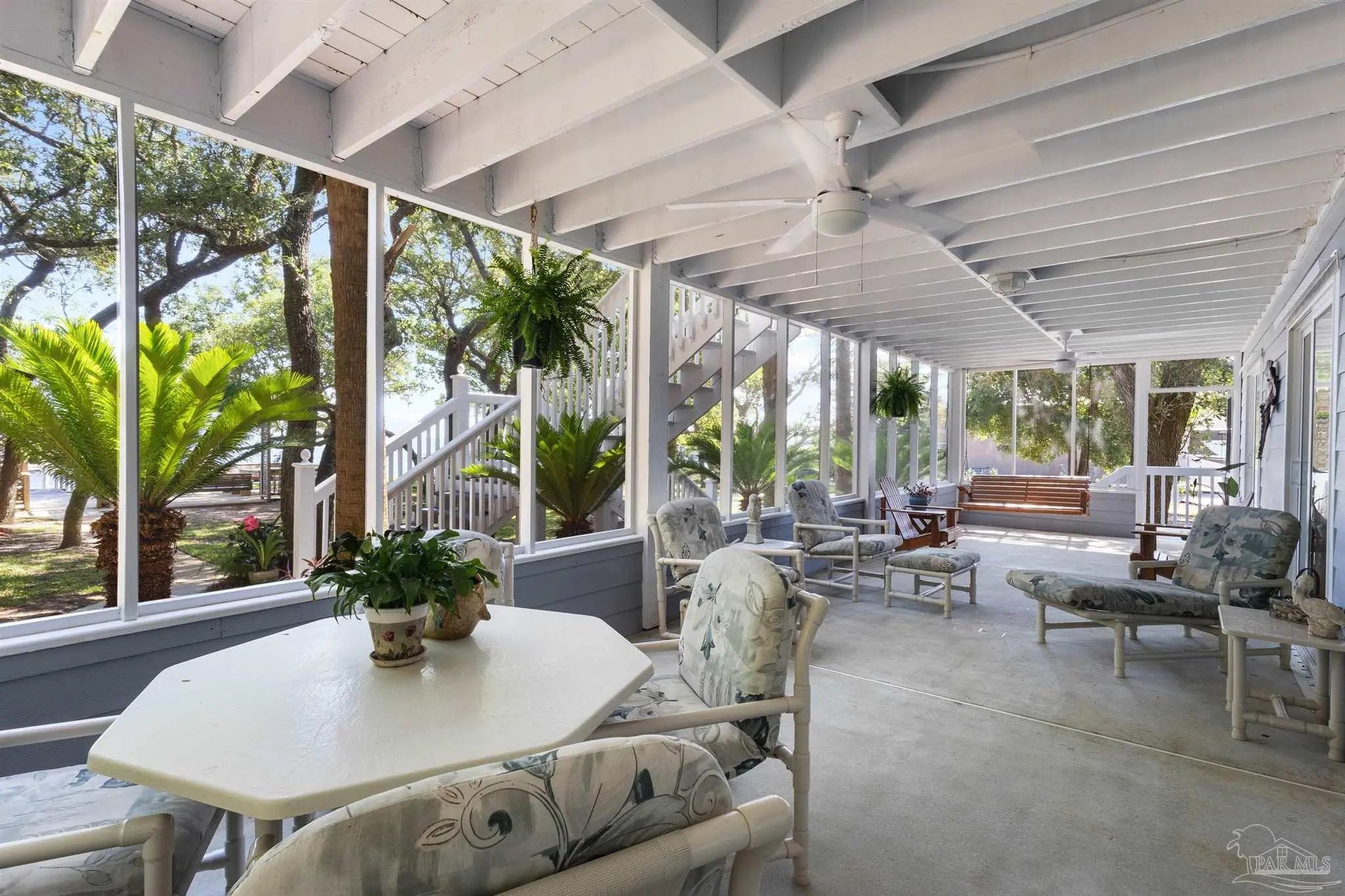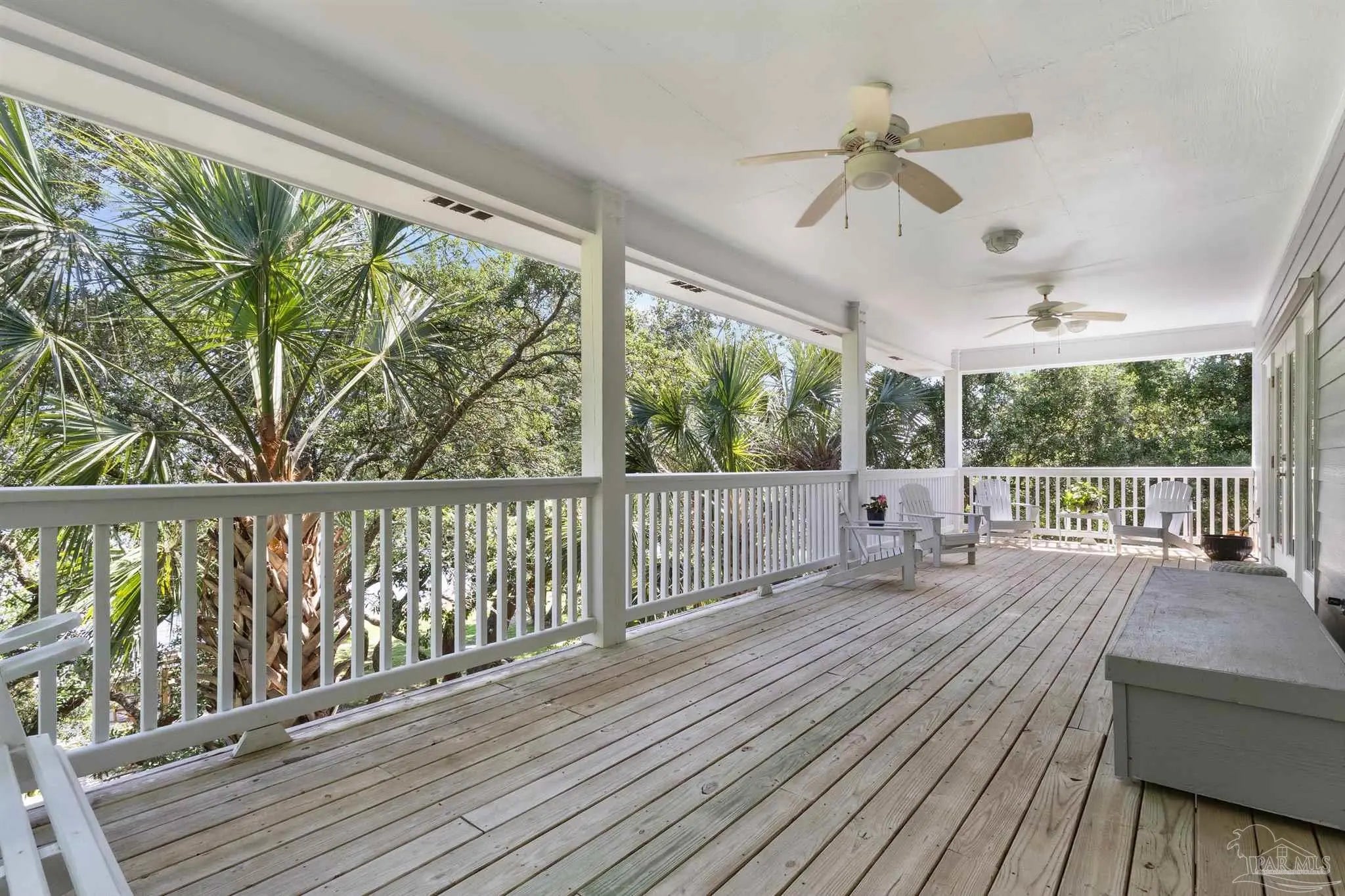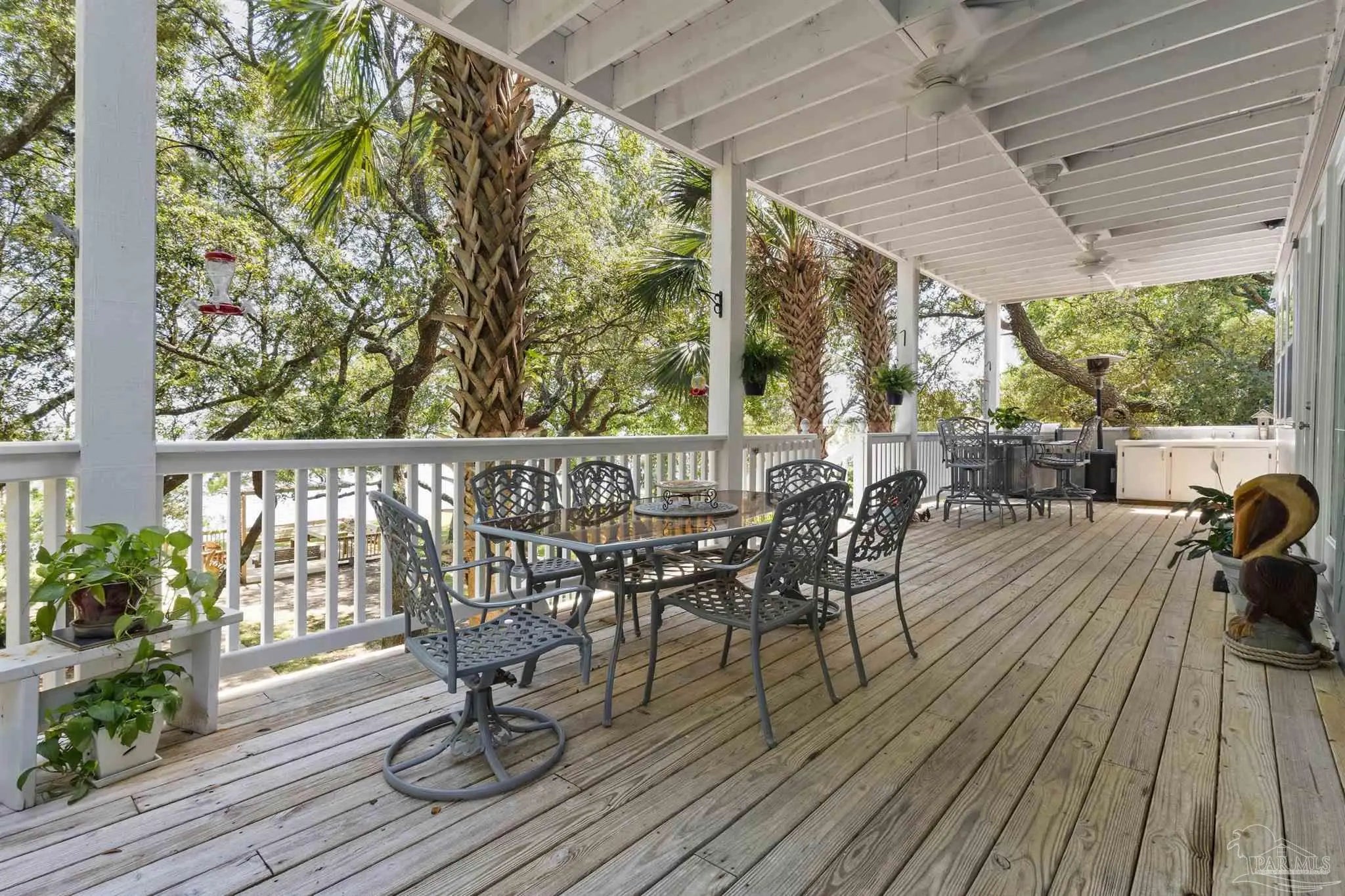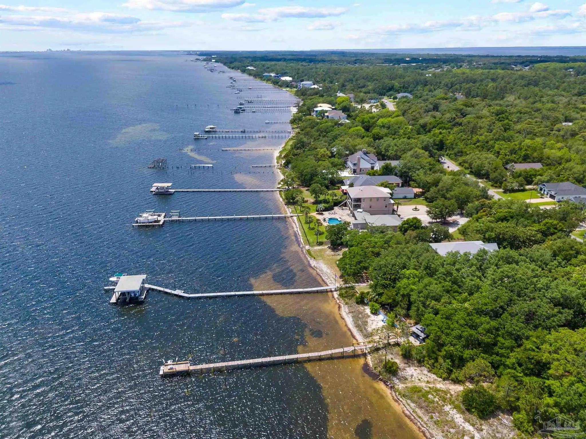 WATERFRONT PARADISE WITH PANORAMIC VIEWS – Discover the ultimate in coastal living in this masterfully crafted waterfront home offering exclusive Santa Rosa Sound frontage and sweeping vistas of the protected National Seashore. Built with extraordinary structural strength—metal-reinforced concrete block, steel beams, and impact-rated storm glass. Framed by oak and palm trees, a private white sand beach, protective seawall, and dock with boathouse, 3 heavy capacity lifts, and swings for fishing, wildlife-watching, or sunset lounging. Outdoor showers-2 dock+H/C at house. A public boat launch is just a block away. Multiple covered expansive porches across all levels create effortless outdoor living spaces. Spanning three levels with elevator access, the layout is designed for versatility. The ground floor offers a party room - counter space, sink, refrigerator and half bath-perfect for entertaining. The 4-car+ U-shaped garage features multi entry points, an additional storage garage, and a large central storage room The second floor centers around an open living/dining area adorned with custom wood trim, a private bar with sink, wine chiller, and tapped fridge. The kitchen includes a new gas cooktop, stainless appliances, silestone counters, dining bar, solid wood cabinetry, prep island with sink, and a desk nook. A spacious laundry room with sink, freezer space, storage, and desk sits nearby. A private guest apartment “The Treehouse” with full kitchen, bedroom, bath, and living space is perfect for multi-generational living or guests. The third floor opens to a gracious foyer and hosts three bedrooms, including a spacious primary suite w/ AM bar, dual walk-in closets, heated jetted tub, separate shower, and double vanities. Two additional bedrooms share a Jack-and-Jill bath. New roof (2025), HVAC (2022), and fresh interior/exterior paint. Zoned for A-rated Gulf Breeze schools, including the future Soundside High. Minutes from Pensacola Bch, Navarre Bch and Downtown.