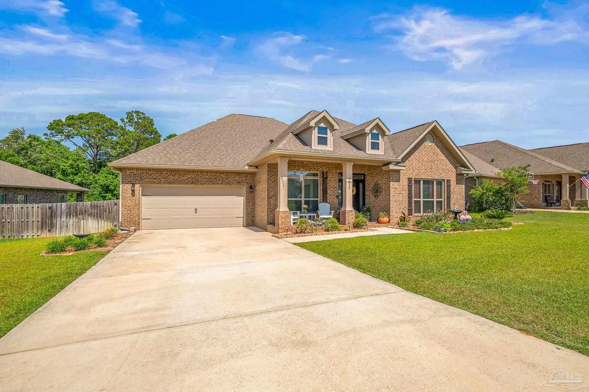 SELERS OFFERING BUYERS CONCESSION FOR RATE BUYDOWN, PREPAIDS, OR CLOSING COST! STRATEGICALLY PRICED TO SELL....This beautiful McKenzie model, 5/3 brick home in the gated community of Vintage Creek already has the upgrades: full house gutters, sprinkler system, two rain barrels, privacy fence, expansive patio, screened back porch with sunshades and ceiling fans. The covered front porch with custom wood shutters, and stone landscaping with lush perennials add curb appeal. An open floor plan with a formal dining room and a bonus room offer numerous possibilities: office, cozy den, gym, game room etc. The walk in custom pantry and large laundry is perfectly suited for large families, multiple roommates or generational living. The high efficiency washer and dryer convey. The gourmet kitchen features stainless steel fridge, dishwasher, wall oven and built in microwave, plus a 5 burner gas stove top. Four cabinets have metal pull-outs for easy access. The large island is perfect for entertaining, as it opens into the great room with a coved ceiling and wall to wall custom cabinetry with adjustable shelves. Large owner’s suite with private access to the covered back porch. The bath offers a double vanity, linen closet, garden tub and separate shower. A custom master closet keeps you perfectly organized. Bedrooms 2 and 3 have their own hallway with a private bath and linen closet. On the opposite side of the home bedrooms 4 and 5 have their own private bath. A built on site wooden shed provides ample storage, freeing up garage space. Vintage Creek offers a pool with an open clubhouse, open fields for the kids to play in, three small ponds for fishing, weekly food trucks and numerous community events throughout the year. The home is located 2 miles from the Perdido River Boat Ramp with access to the bay and just 3 miles from Navy Federal Headquarters. Call 850.450.1927 for your private showing or with all questions!