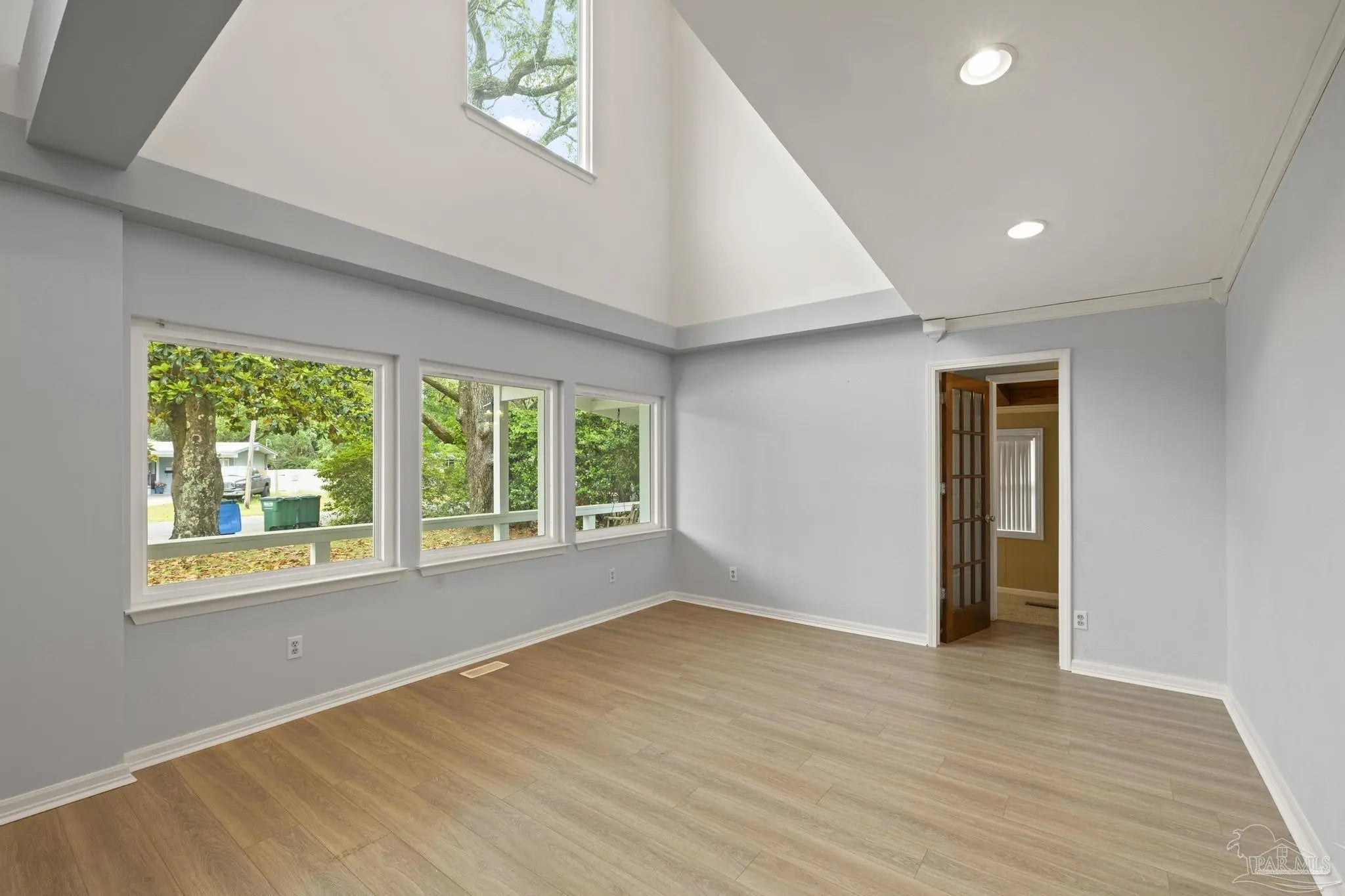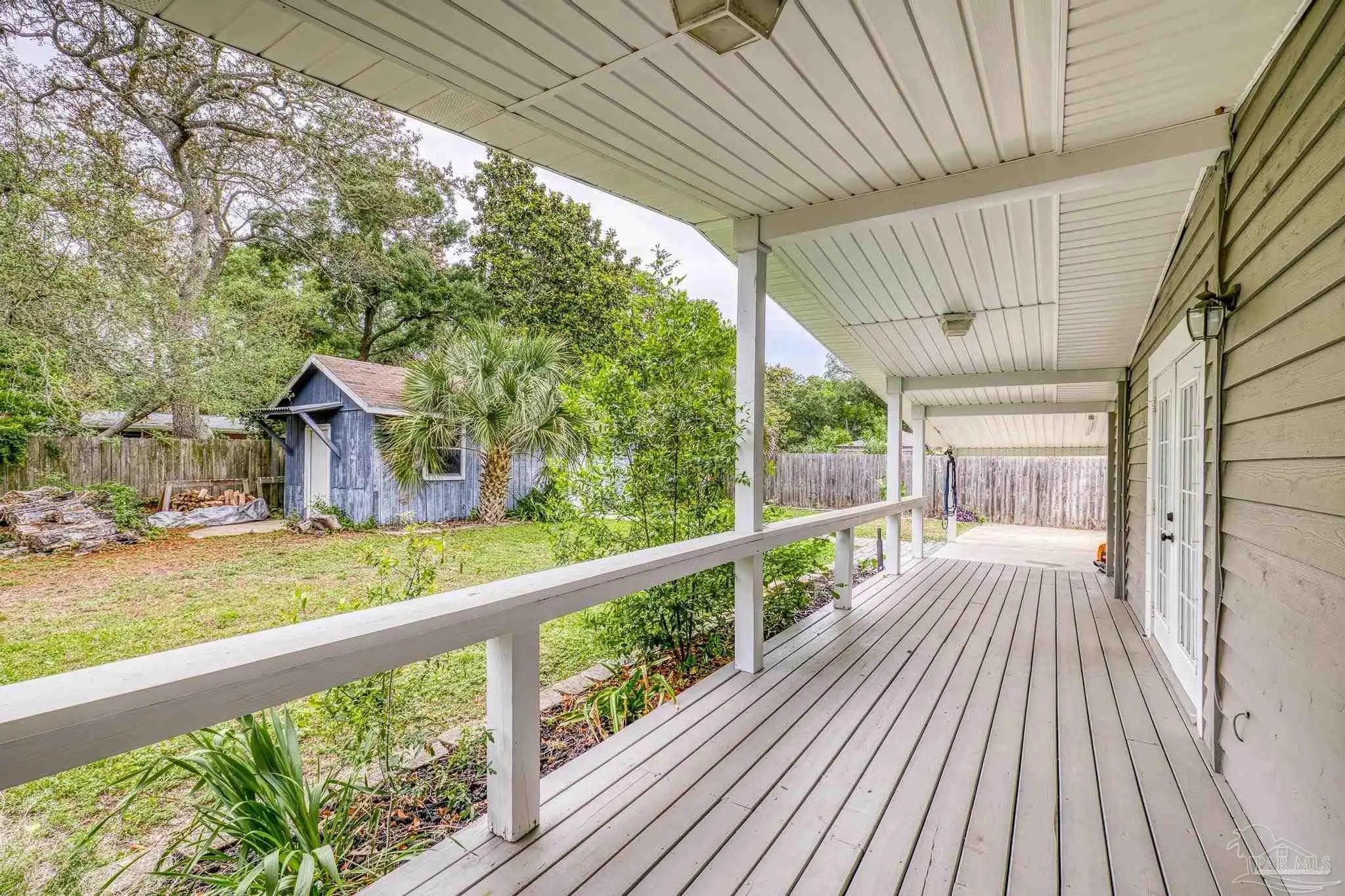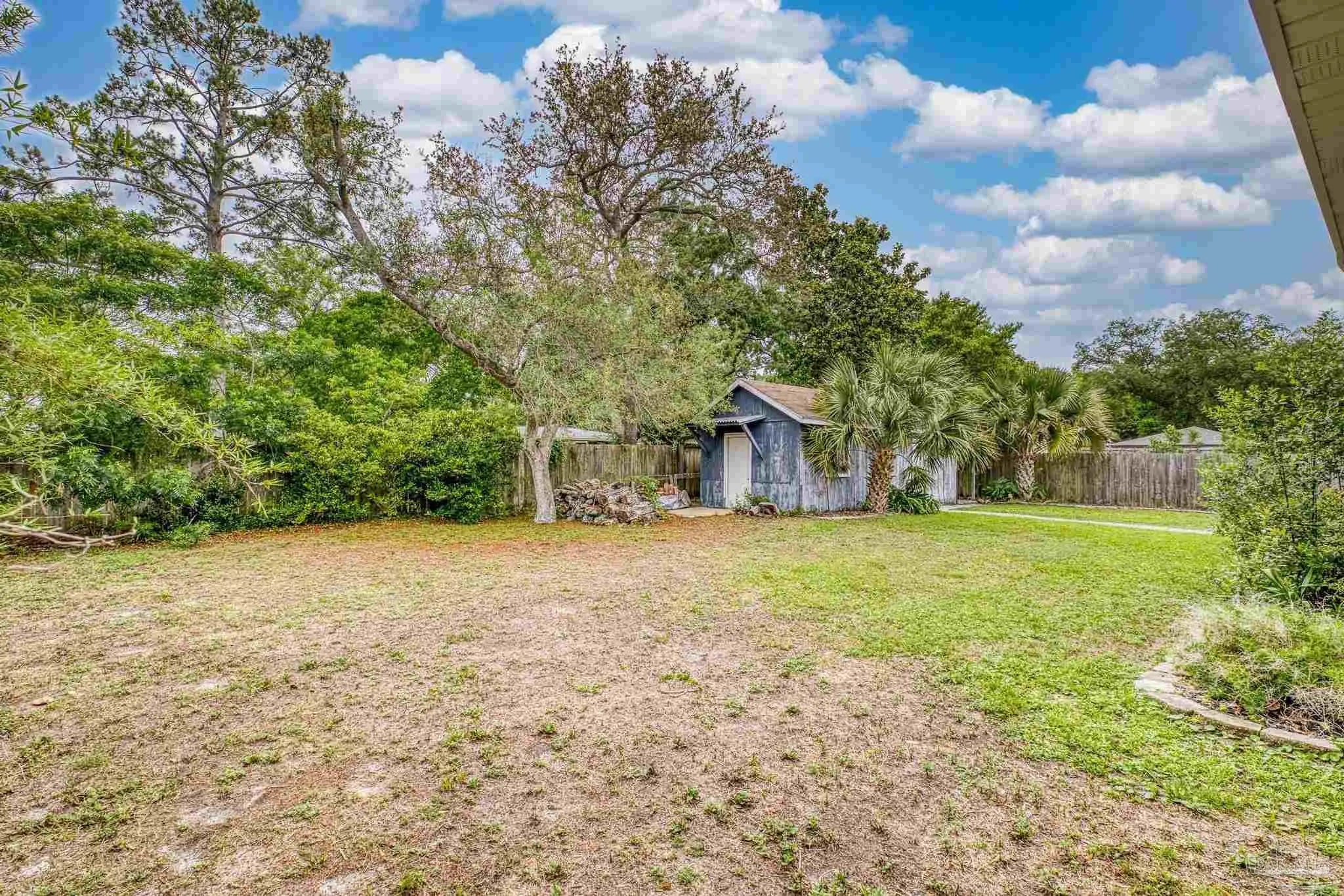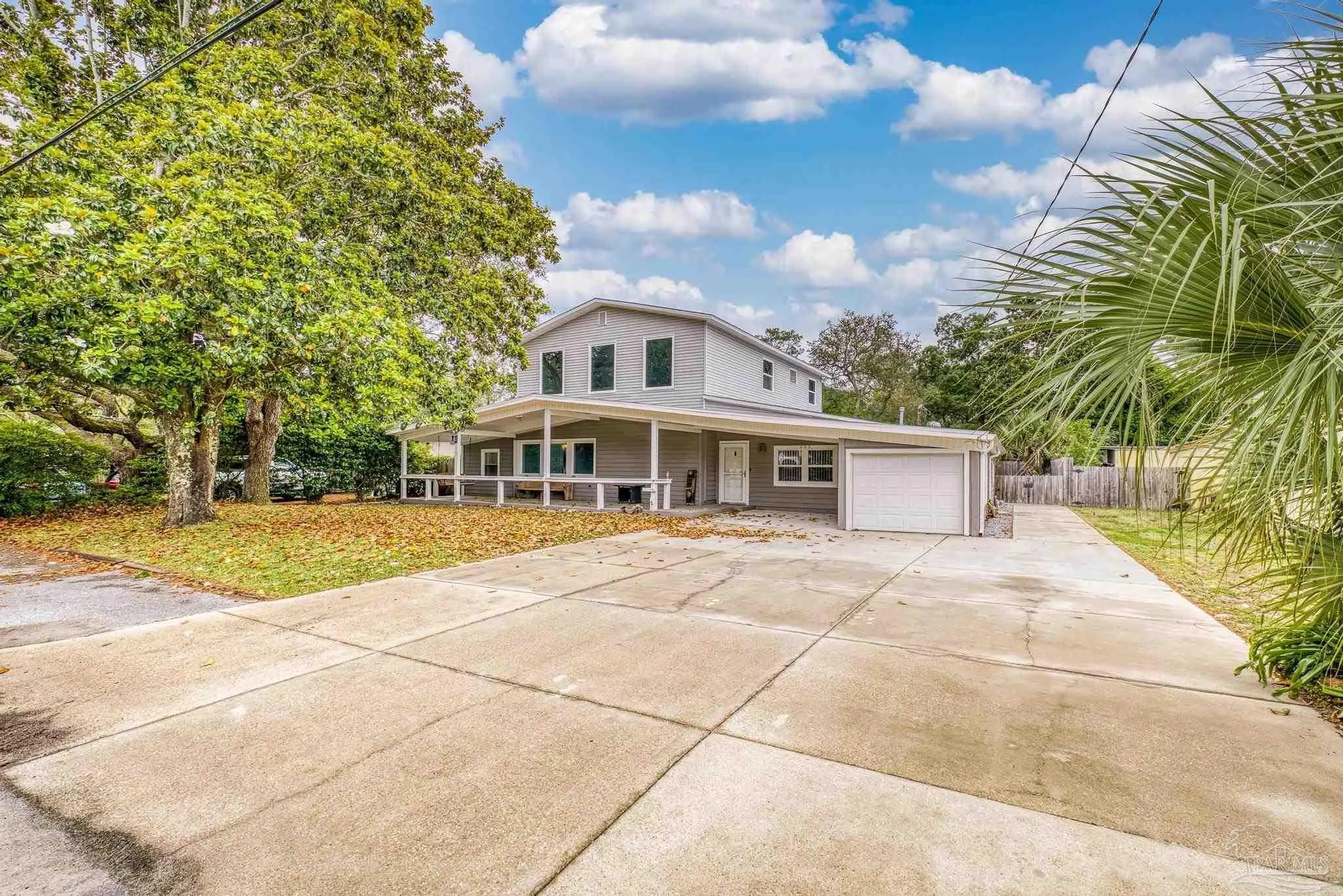 Unique 5 bedroom house in Gulf Breeze Proper. Spacious with open interior areas, covered porches front and back, and large windows for plenty of natural light. The large yard is fenced, level and has old growth trees. Location! Location! Location! Gulf Breeze Proper – 10 minutes to beach, award winning schools - sought after location. Quiet neighborhood near schools, parks, and the Gulf Breeze Rec Center. With over 3000 sq ft of living space, large family home in the heart of Gulf Breeze Proper is a find. Wide welcoming covered front porch opens into spacious family room with gas fireplace. Main floor has a large master suite complete with a dressing area and walk in closet. There are two more bedrooms downstairs. Windows replaced in 2018. When you step into the foyer and look up, you see the cathedral ceiling and the large, high windows for lots of natural light. There are two living areas, one is lined with built in shelving. The rear living area would be perfect for a "man cave" or a room for the children to watch television or play games. The kitchen has lots of storage and granite countertops. Fenced back yard with a covered porch for get togethers. Roof is 5-6 years old and water heater is 4 years old. There are two A/C units. One is new with a ten year warranty. The second one is 2 years old. Upstairs is a loft, another master bedroom and a guest bedroom. Skylights bring in lots of natural light. Large indoor laundry with extra storage and a 1 car garage. Located just steps from Sunset Part and the Gulf Breeze Rec Center. ALSO, home is one mile from Shoreline boat launch ramp for which you get free use if you live in Gulf Breeze Proper. Effective year built 1989.