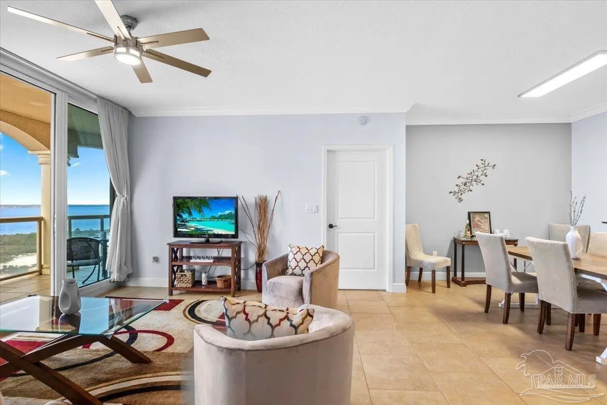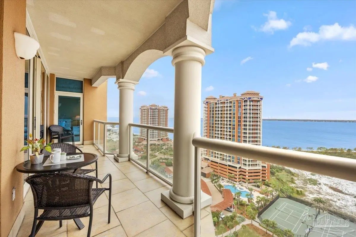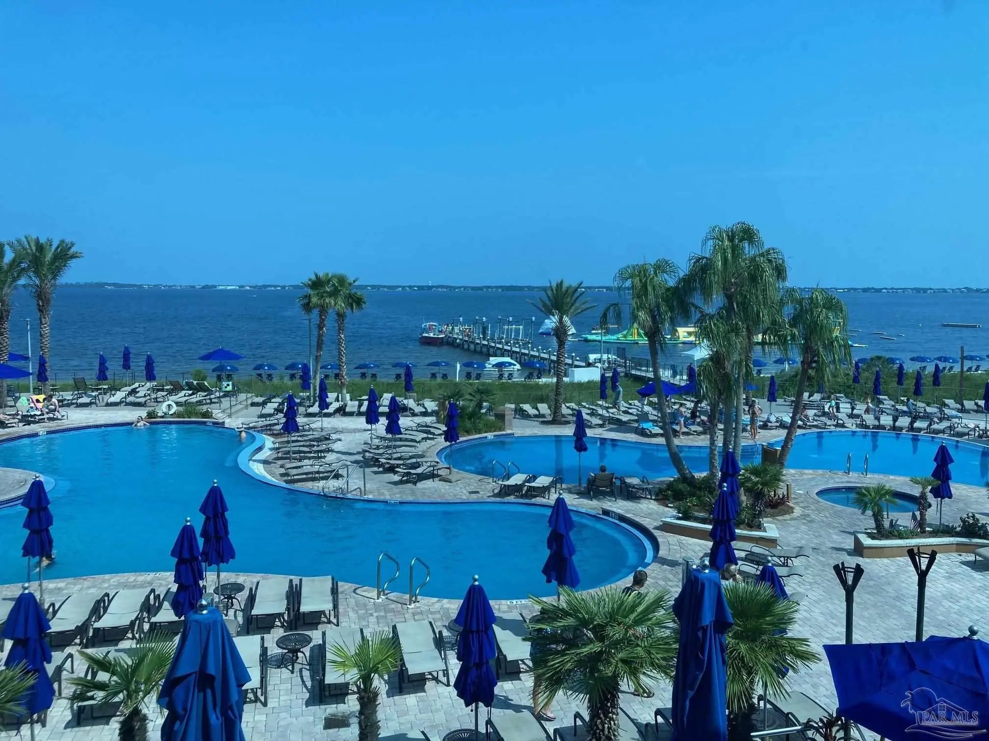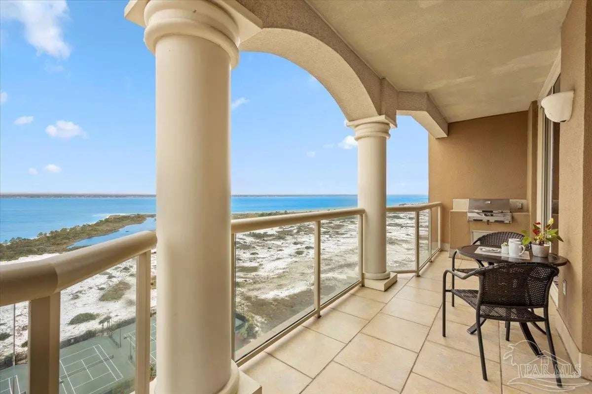 Experience coastal luxury in the highly sought-after Portofino Tower 3, the easternmost tower that is closest to the Beach crosswalk. Enjoy the convenience of TWO dedicated indoor parking spaces and TWO storage lockers. This turnkey unit offers panoramic views of Santa Rosa Sound, the estuary, sand dunes, and National Seashore from its expansive windows and private balcony. Recent updates include a new HVAC system (2024), refurbished patio electric grill (2024), refrigerator (2021), water heater (2018), washer (2017), dryer (2015), and dishwasher (2015). Inside, the bright and open layout features a fully equipped kitchen with granite countertops, ample cabinetry, and a large pantry, flowing seamlessly into the dining and living areas. The spacious master suite is a true retreat with a king bed, two closets, an owner’s closet, and a luxurious bathroom featuring dual vanities, a jetted tub, a separate shower, and a water closet. The guest bedroom offers a queen bed, an ensuite bath, and stunning floor-to-ceiling views. Portofino is renowned for its unparalleled amenities. Each tower has a private pool and hot tub, while the central Spa and Lifestyle Center offers two infinity pools, a 25-meter lap pool, hot tubs, a sauna, steam room, and a fully-equipped fitness center. On-site dining includes two restaurants and a Starbucks, and outdoor activities range from dolphin cruises to jet ski, kayak, and paddleboard rentals, plus beach chair service and bike trails. Enjoy land-based activities with five Rubico tennis courts, scenic biking and walking paths, and poolside food and beverage service. Whether as an investment, second home, or primary residence, this Portofino gem offers an unmatched lifestyle along the stunning Pensacola Beach. Don’t miss the opportunity to make it yours!