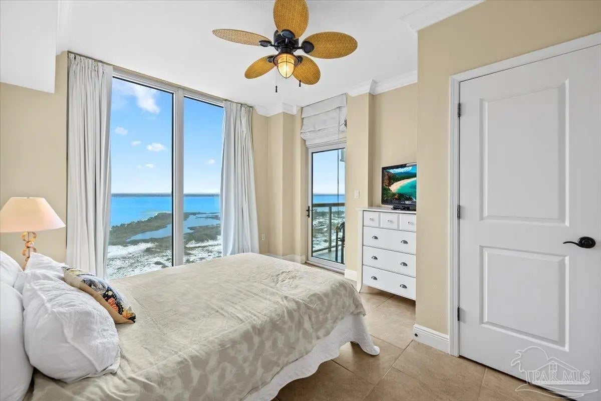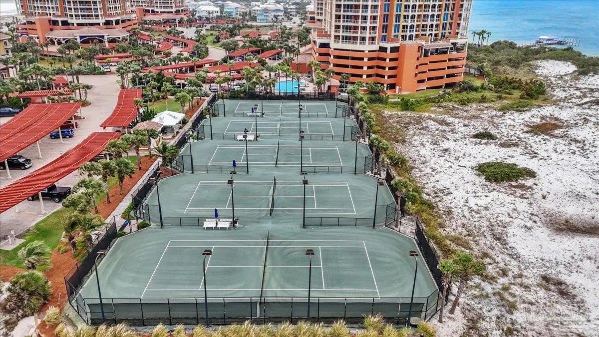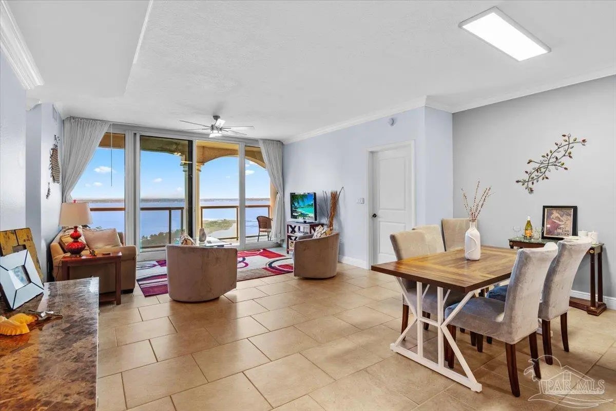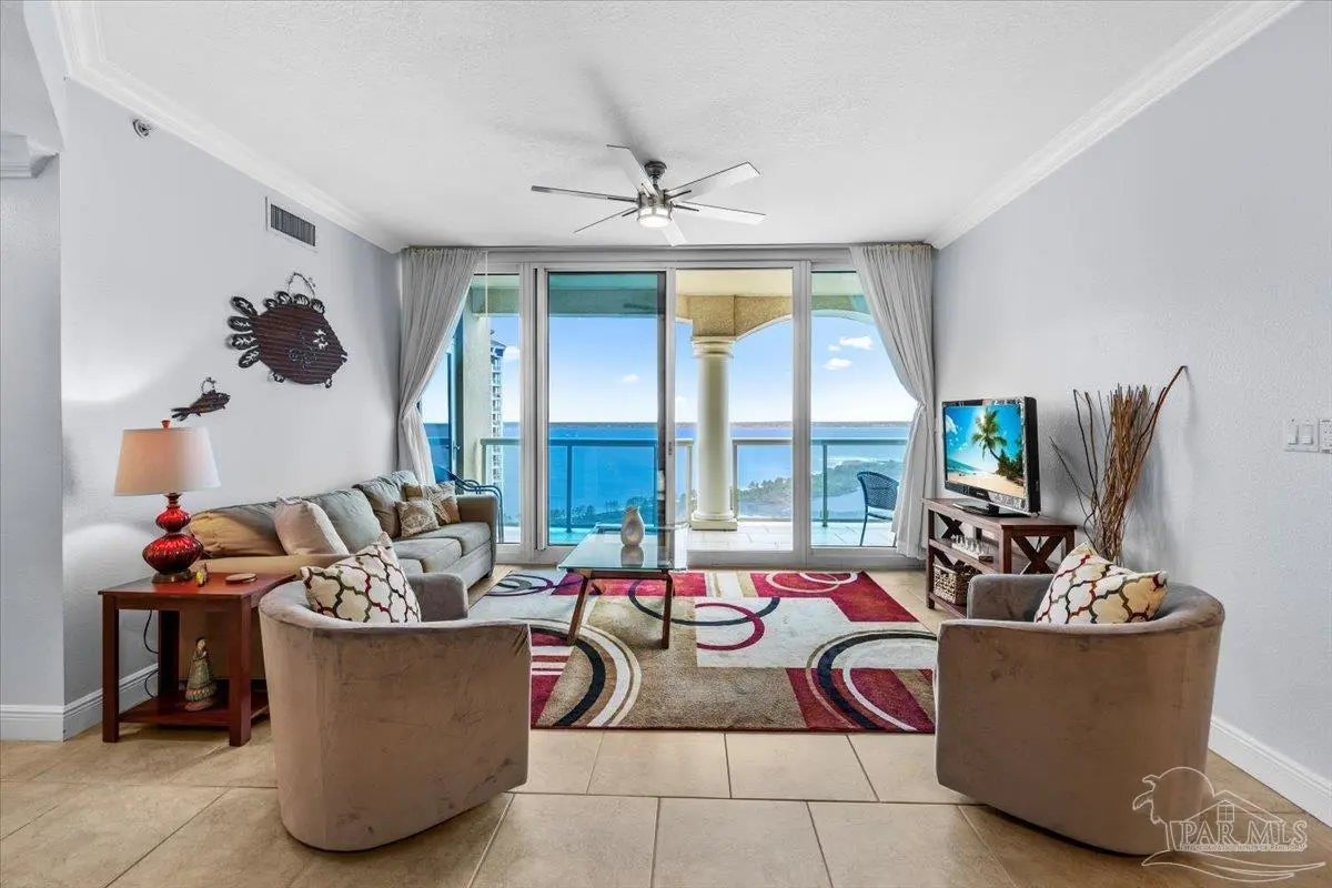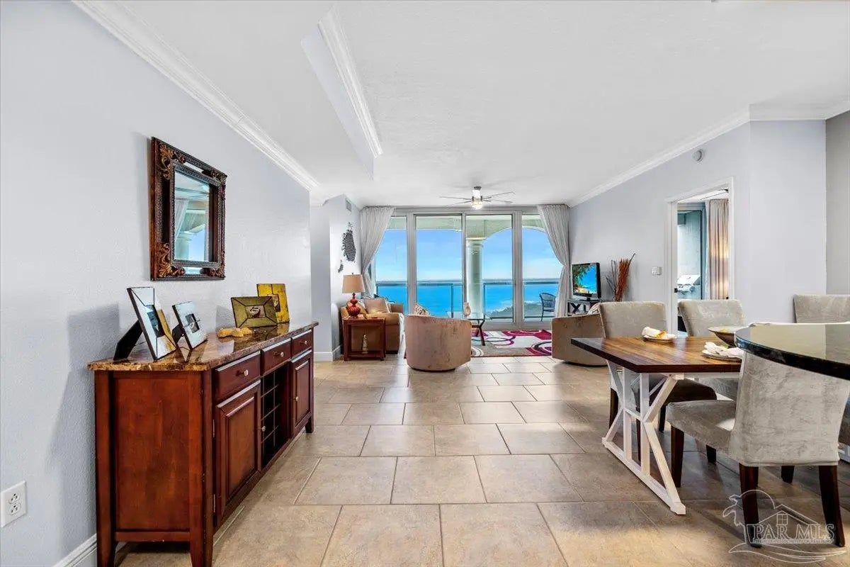 Experience coastal luxury in the highly sought-after Portofino Tower 3, the easternmost tower that is closest to the Beach crosswalk. Enjoy the convenience of TWO dedicated indoor parking spaces and TWO storage lockers. This turnkey unit offers panoramic views of Santa Rosa Sound, the estuary, sand dunes, and National Seashore from its expansive windows and private balcony. Recent updates include a new HVAC system (2024), refurbished patio electric grill (2024), refrigerator (2021), water heater (2018), washer (2017), dryer (2015), and dishwasher (2015). Inside, the bright and open layout features a fully equipped kitchen with granite countertops, ample cabinetry, and a large pantry, flowing seamlessly into the dining and living areas. The spacious master suite is a true retreat with a king bed, two closets, an owner’s closet, and a luxurious bathroom featuring dual vanities, a jetted tub, a separate shower, and a water closet. The guest bedroom offers a queen bed, an ensuite bath, and stunning floor-to-ceiling views. Portofino is renowned for its unparalleled amenities. Each tower has a private pool and hot tub, while the central Spa and Lifestyle Center offers two infinity pools, a 25-meter lap pool, hot tubs, a sauna, steam room, and a fully-equipped fitness center. On-site dining includes two restaurants and a Starbucks, and outdoor activities range from dolphin cruises to jet ski, kayak, and paddleboard rentals, plus beach chair service and bike trails. Enjoy land-based activities with five Rubico tennis courts, scenic biking and walking paths, and poolside food and beverage service. Whether as an investment, second home, or primary residence, this Portofino gem offers an unmatched lifestyle along the stunning Pensacola Beach. Don’t miss the opportunity to make it yours!