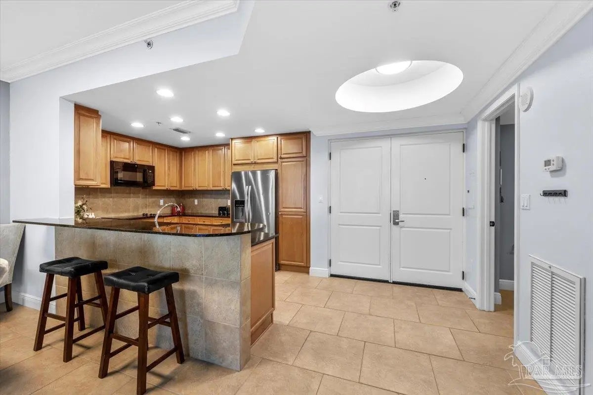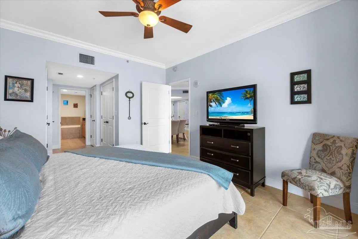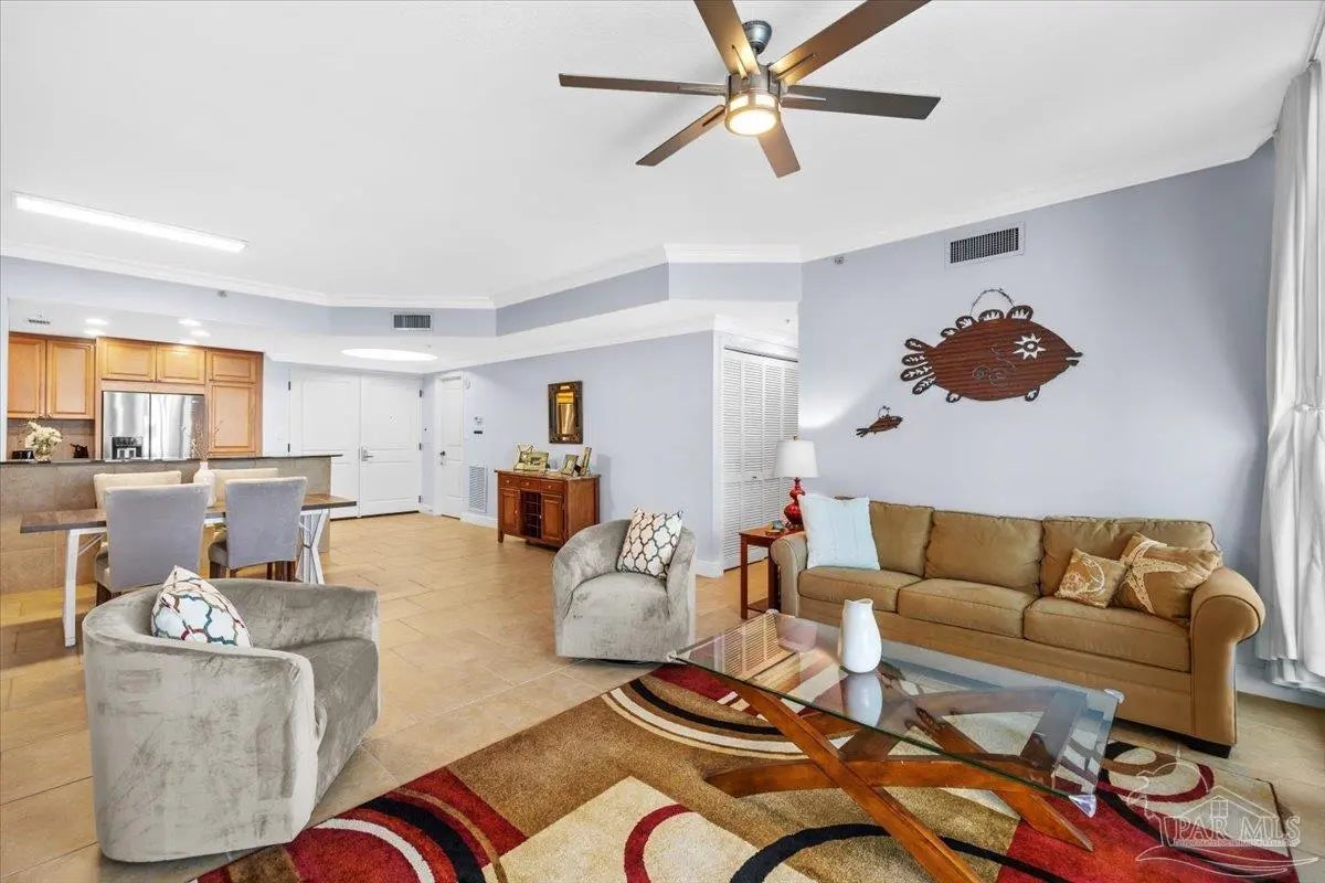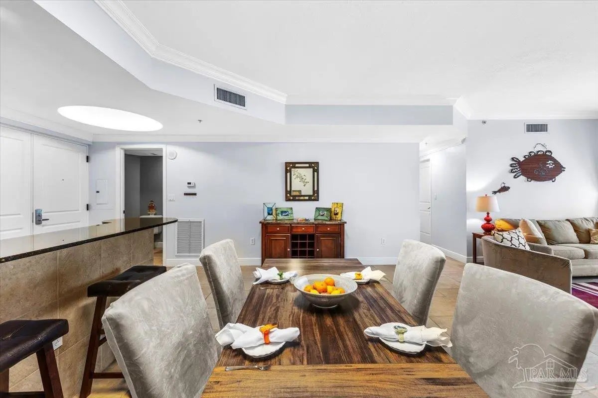 Experience coastal luxury in the highly sought-after Portofino Tower 3, the easternmost tower that is closest to the Beach crosswalk. Enjoy the convenience of TWO dedicated indoor parking spaces and TWO storage lockers. This turnkey unit offers panoramic views of Santa Rosa Sound, the estuary, sand dunes, and National Seashore from its expansive windows and private balcony. Recent updates include a new HVAC system (2024), refurbished patio electric grill (2024), refrigerator (2021), water heater (2018), washer (2017), dryer (2015), and dishwasher (2015). Inside, the bright and open layout features a fully equipped kitchen with granite countertops, ample cabinetry, and a large pantry, flowing seamlessly into the dining and living areas. The spacious master suite is a true retreat with a king bed, two closets, an owner’s closet, and a luxurious bathroom featuring dual vanities, a jetted tub, a separate shower, and a water closet. The guest bedroom offers a queen bed, an ensuite bath, and stunning floor-to-ceiling views. Portofino is renowned for its unparalleled amenities. Each tower has a private pool and hot tub, while the central Spa and Lifestyle Center offers two infinity pools, a 25-meter lap pool, hot tubs, a sauna, steam room, and a fully-equipped fitness center. On-site dining includes two restaurants and a Starbucks, and outdoor activities range from dolphin cruises to jet ski, kayak, and paddleboard rentals, plus beach chair service and bike trails. Enjoy land-based activities with five Rubico tennis courts, scenic biking and walking paths, and poolside food and beverage service. Whether as an investment, second home, or primary residence, this Portofino gem offers an unmatched lifestyle along the stunning Pensacola Beach. Don’t miss the opportunity to make it yours!