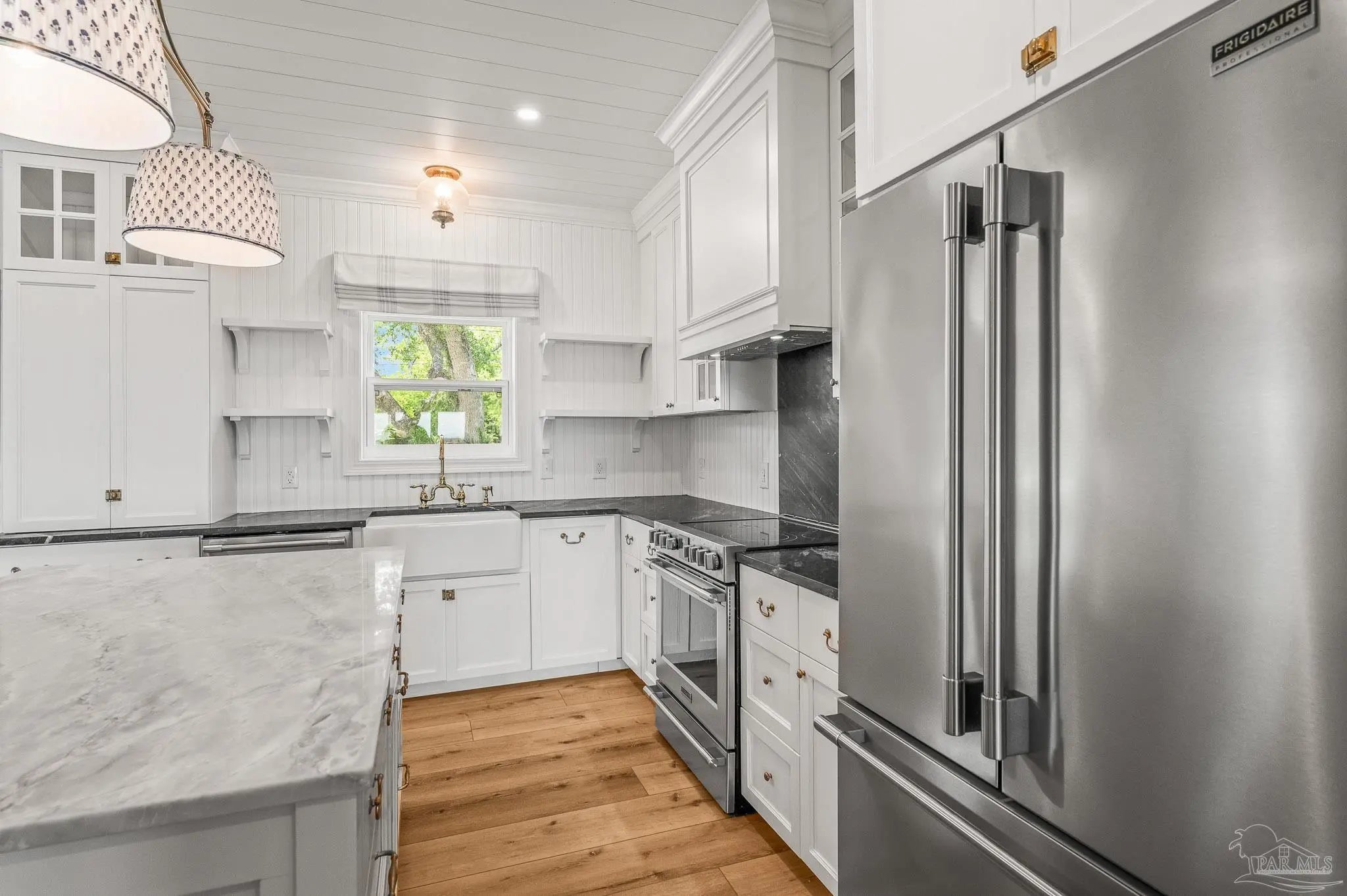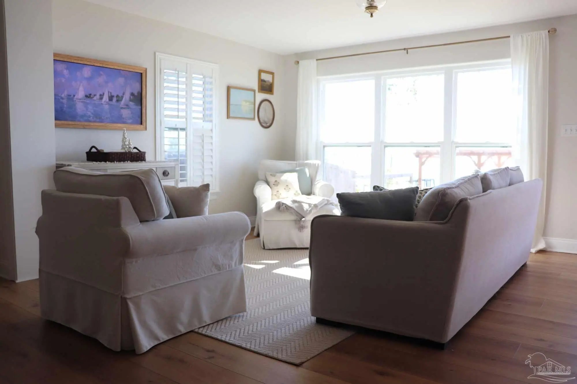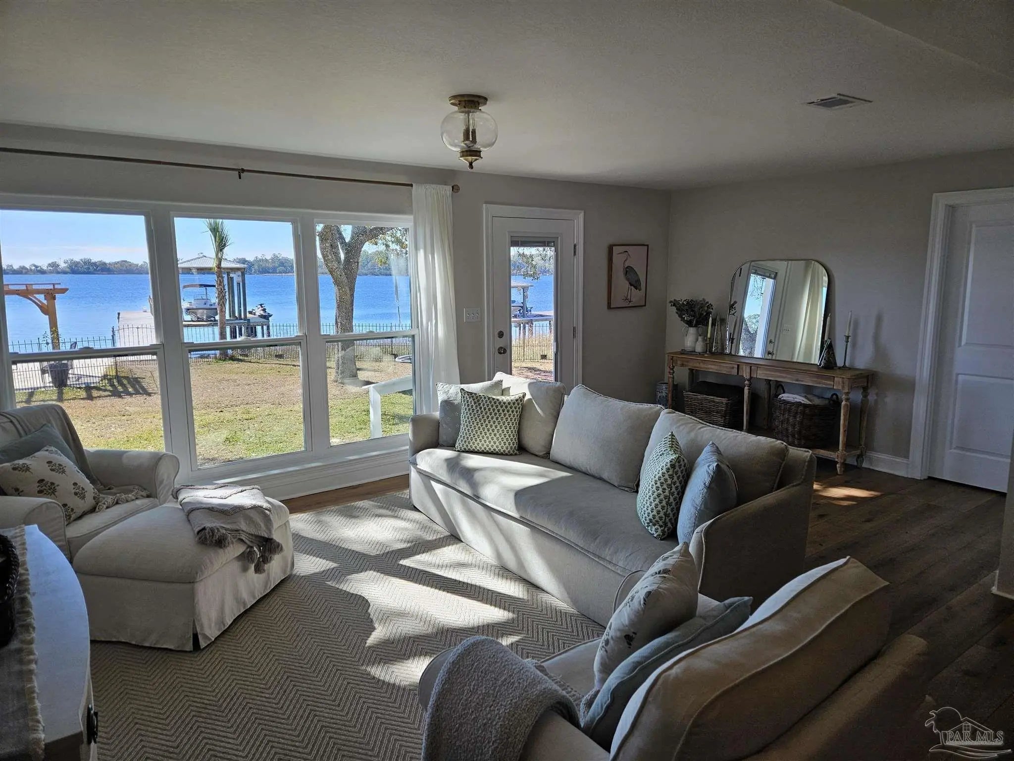 Escape to a retreat on the shores of Blackwater Bay with this beautifully updated 3-bedroom, 2.5-bath coastal cottage offering over 2,100 square feet of stylish, comfortable living space. The sellers have done all the hard work for you with renovations inside and out. The extensive list of updates include: new kitchen, seamless metal roof, impact-resistant windows, new doors and flooring, fresh paint, updated fixtures, wood-accented ceilings and walls, HVAC system, water heater, new sod and fencing, as well as upgrades to the dock, boat lift roof, jet ski lift, pergola, and landscaping. Most of it completed within the past year. Be sure to ask your agent for a list of recent updates. Step outside to enjoy a private dock with new extensions, featuring a covered boat lift and jet ski lift for effortless water access. A concrete patio with a cedar pergola creates the perfect setting for entertaining or simply relaxing by the water. The fully fenced yard with new sod provides privacy and low-maintenance outdoor space. Tucked away from highway noise yet conveniently close to I-10, this home combines peaceful seclusion with easy access to modern amenities. There are no HOA restrictions, giving you the freedom to live your way. A short boat ride takes you to downtown Milton for waterfront dining and entertainment. Best of all, the property comes with affordable and transferable flood insurance, currently just $1,021 per year. The breathtaking waterfront setting offers direct Gulf access and the chance to witness stunning sunrises and sunsets, along with frequent visits from dolphins and manatees. Whether you're fishing for redfish, trout, or flounder off your own dock, or cruising to nearby destinations, this location offers a lifestyle like no other. This home is a true sanctuary for nature lovers and boating enthusiasts alike.