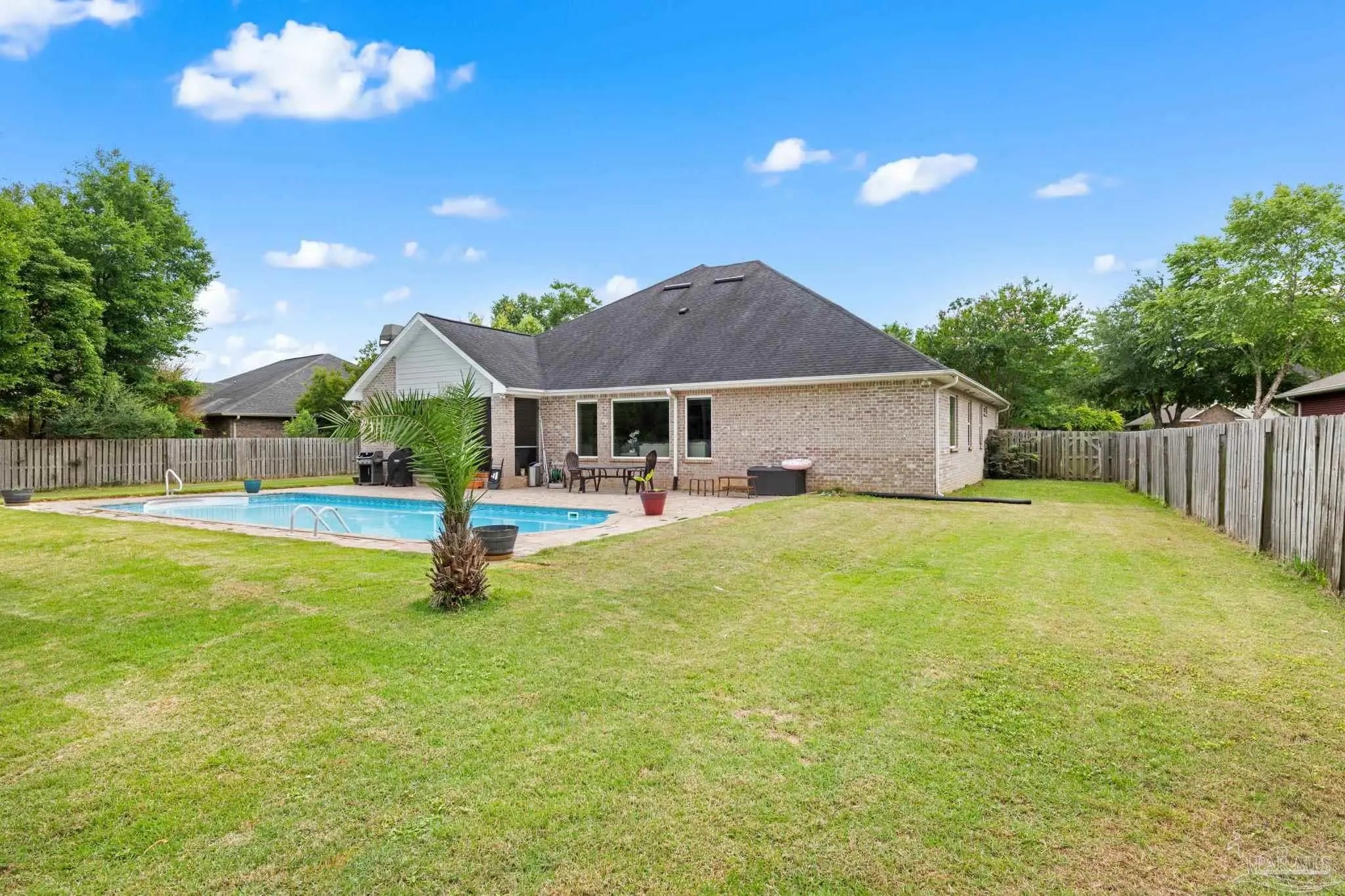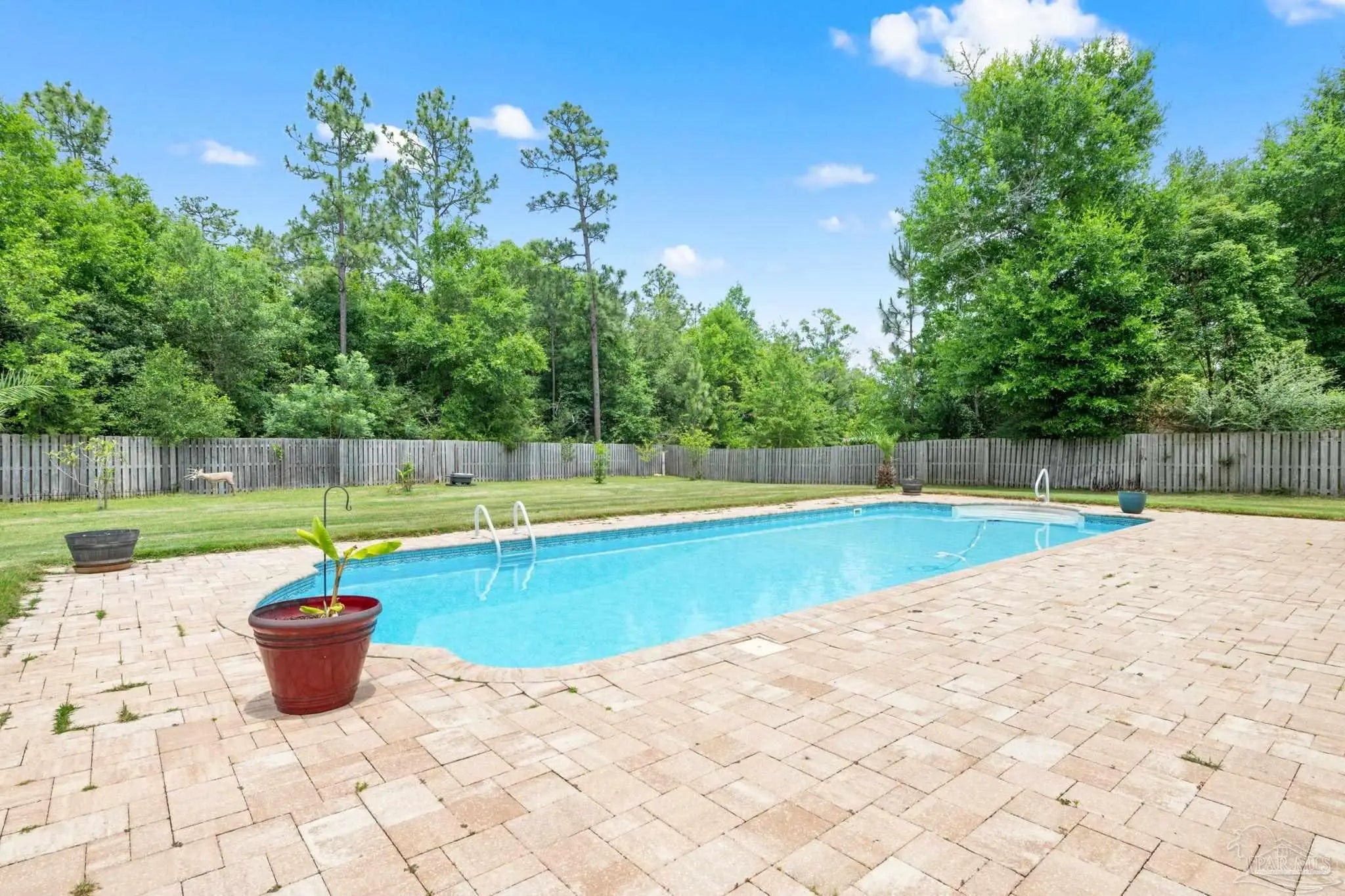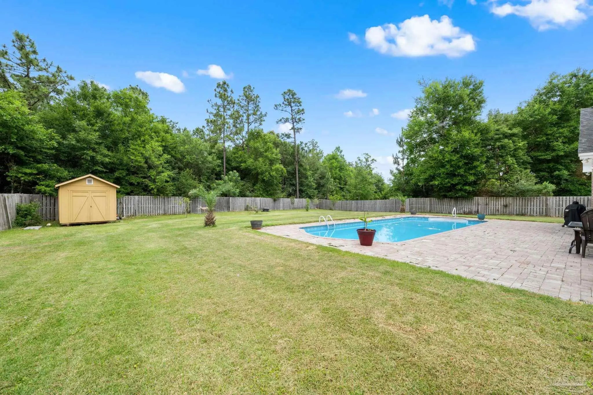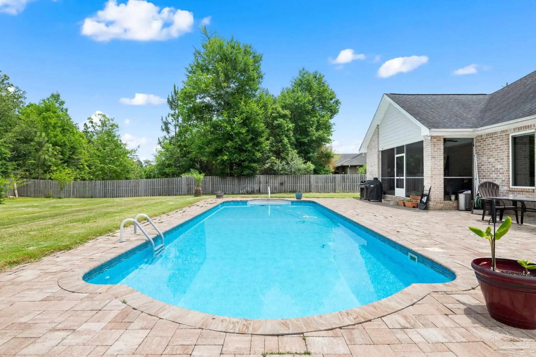 This beautiful 4 bedroom 3 bath stately Nature Trail residence is ready for you to call it home. Built in 2015 and nestled on a 0.44 acre lot (one of the largest in the neighborhood), this lovingly cared for home boasts of a luxurious master suite with new paint, tray ceiling with cove lighting, custom blinds, large master bath with dual sinks, garden tub with separate shower, and a lovely walk-in closet. The other spacious guest bedrooms have updated paint and plantation shutters and the vaulted family room (also with fresh paint) has three large windows and custom sun shades overlooking the expansive back yard with a 40x16 saltwater pool and paver surround that was added in 2019. Also overlooking the large outdoor space is a beautiful screened in area with fireplace for evenings by the pool or watching other outdoor family activities that such a large backyard can afford. The property also includes a nice storage shed for lawn equipment and other needs. Nature Trail subdivision also has a beautiful lodge with community pool, pickleball, basketball, tennis courtsĀ and miles of trails for walking and enjoying the serene and quiet nature of one of Pensacola's most beautiful gated communities. Schedule your tour today!