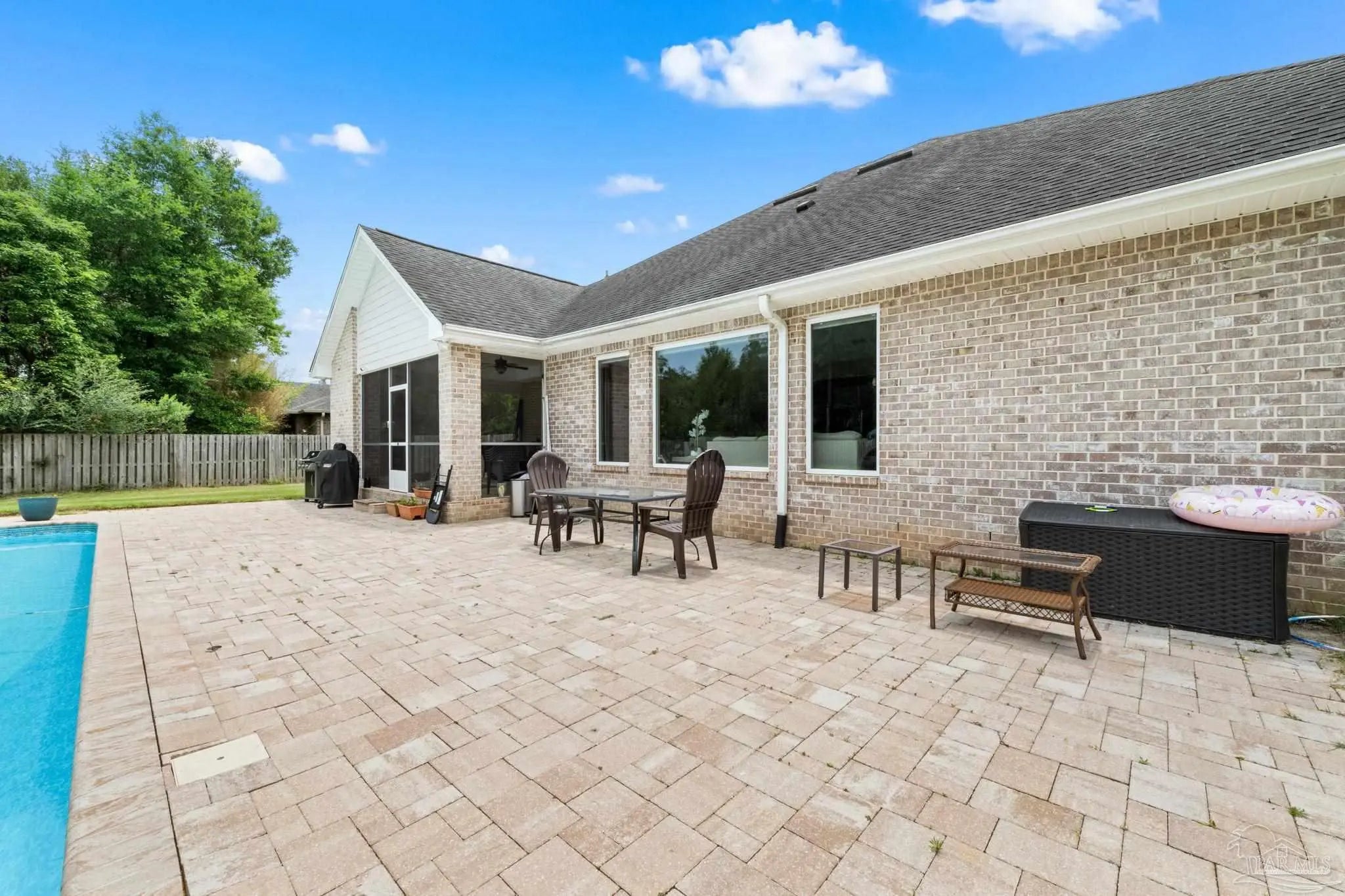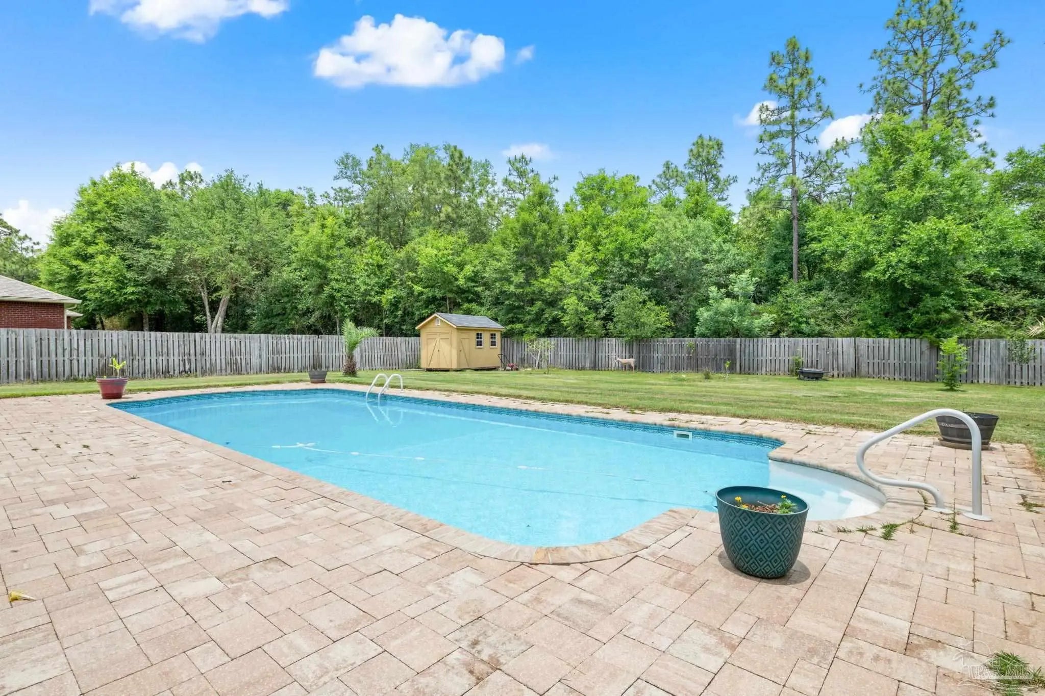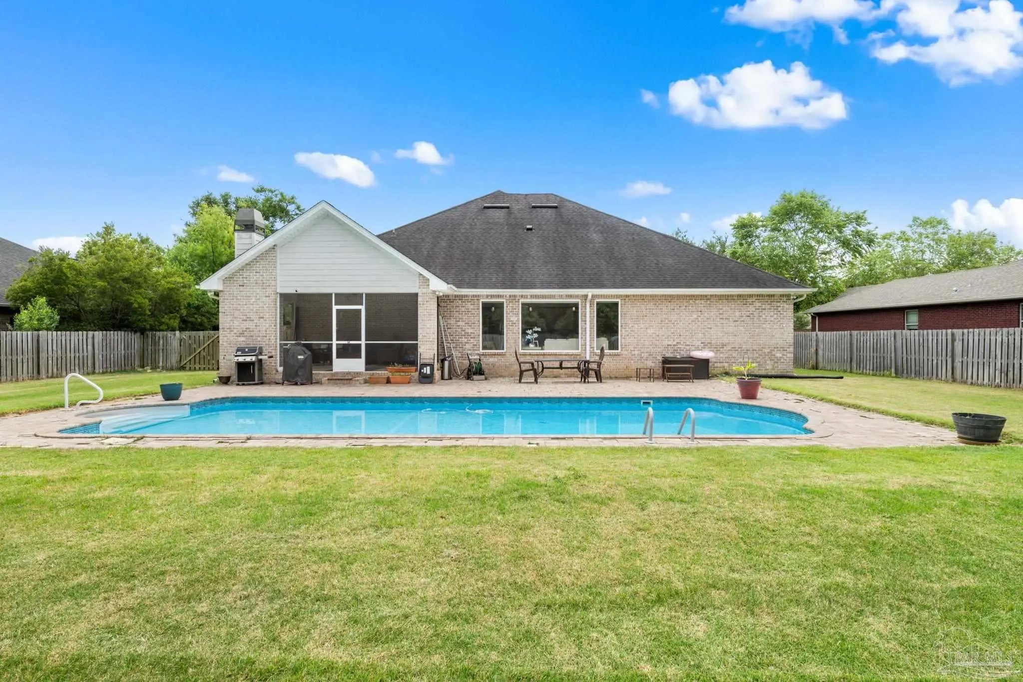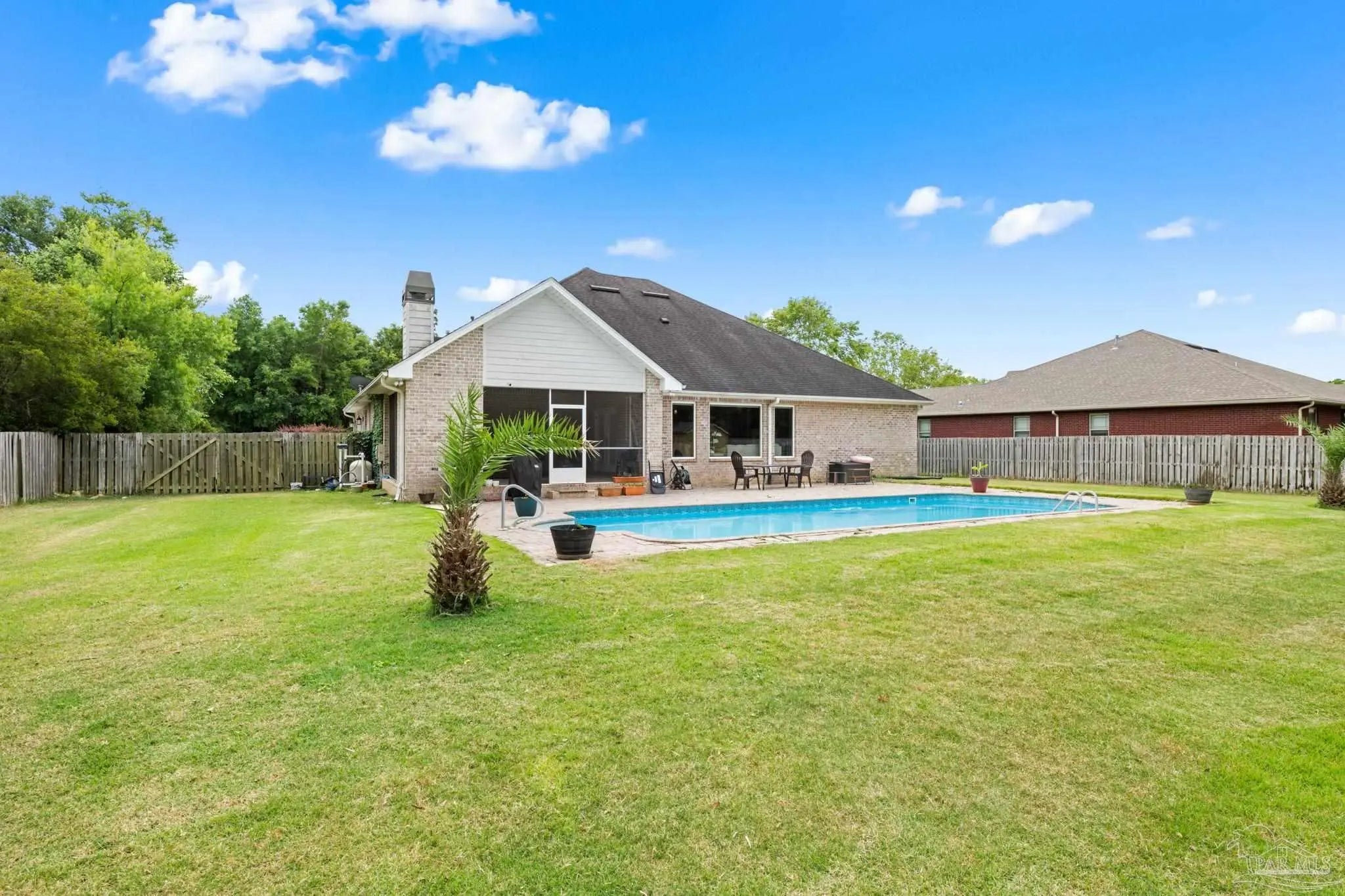 This beautiful 4 bedroom 3 bath stately Nature Trail residence is ready for you to call it home. Built in 2015 and nestled on a 0.44 acre lot (one of the largest in the neighborhood), this lovingly cared for home boasts of a luxurious master suite with new paint, tray ceiling with cove lighting, custom blinds, large master bath with dual sinks, garden tub with separate shower, and a lovely walk-in closet. The other spacious guest bedrooms have updated paint and plantation shutters and the vaulted family room (also with fresh paint) has three large windows and custom sun shades overlooking the expansive back yard with a 40x16 saltwater pool and paver surround that was added in 2019. Also overlooking the large outdoor space is a beautiful screened in area with fireplace for evenings by the pool or watching other outdoor family activities that such a large backyard can afford. The property also includes a nice storage shed for lawn equipment and other needs. Nature Trail subdivision also has a beautiful lodge with community pool, pickleball, basketball, tennis courtsĀ and miles of trails for walking and enjoying the serene and quiet nature of one of Pensacola's most beautiful gated communities. Schedule your tour today!