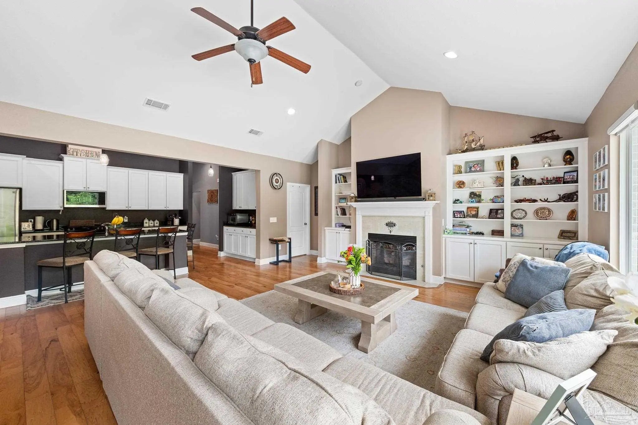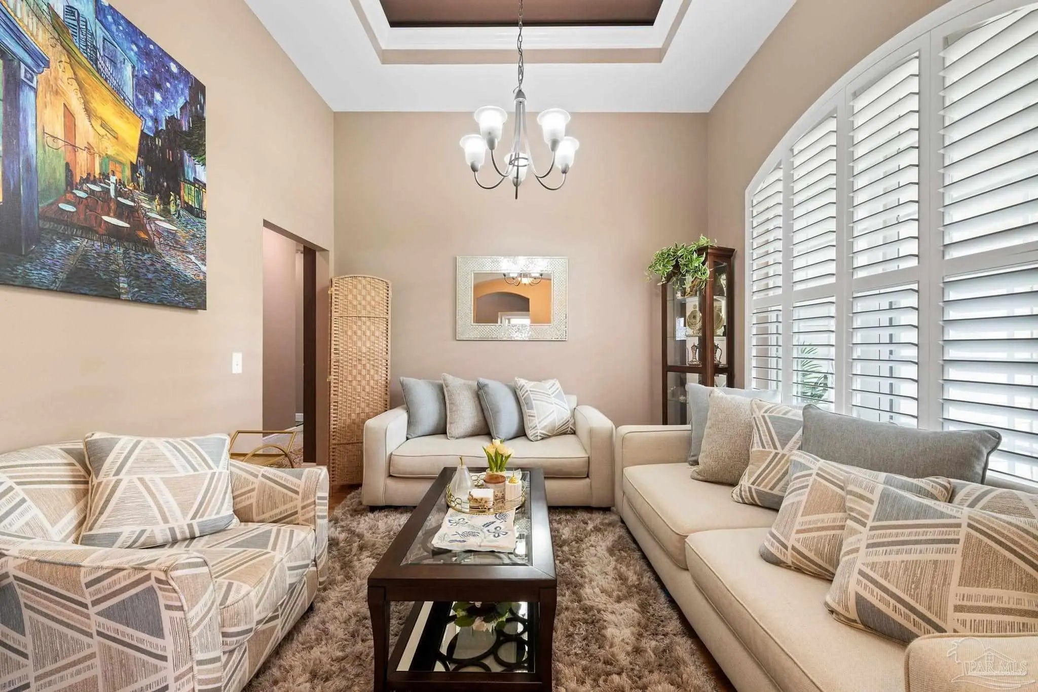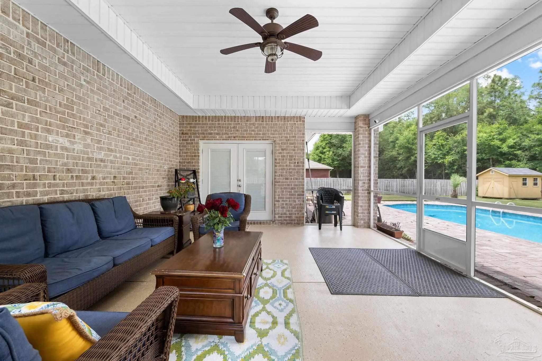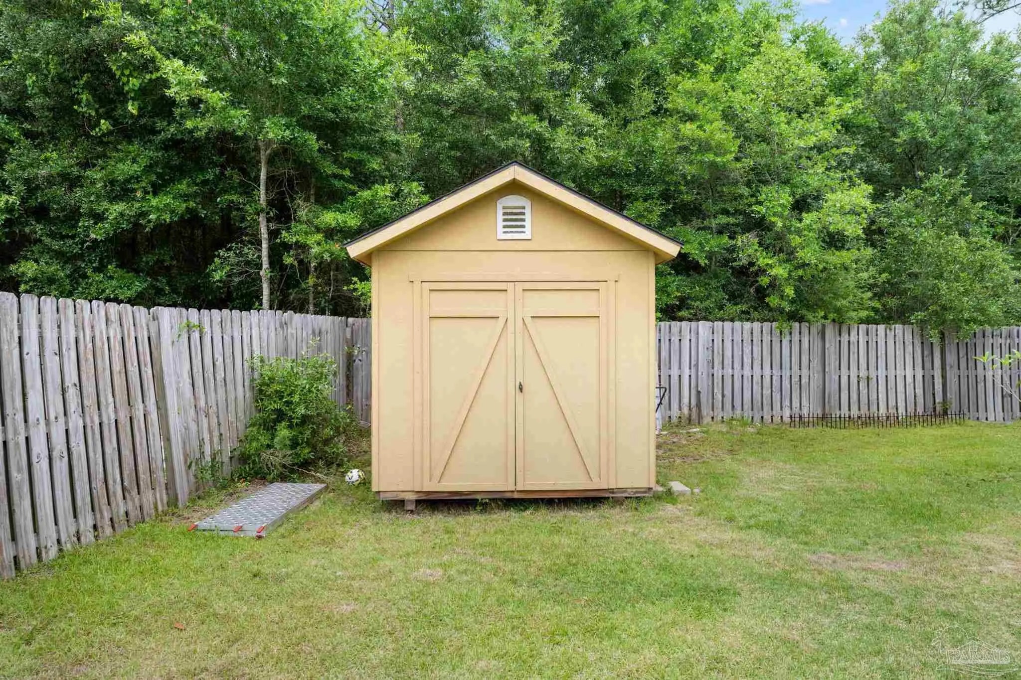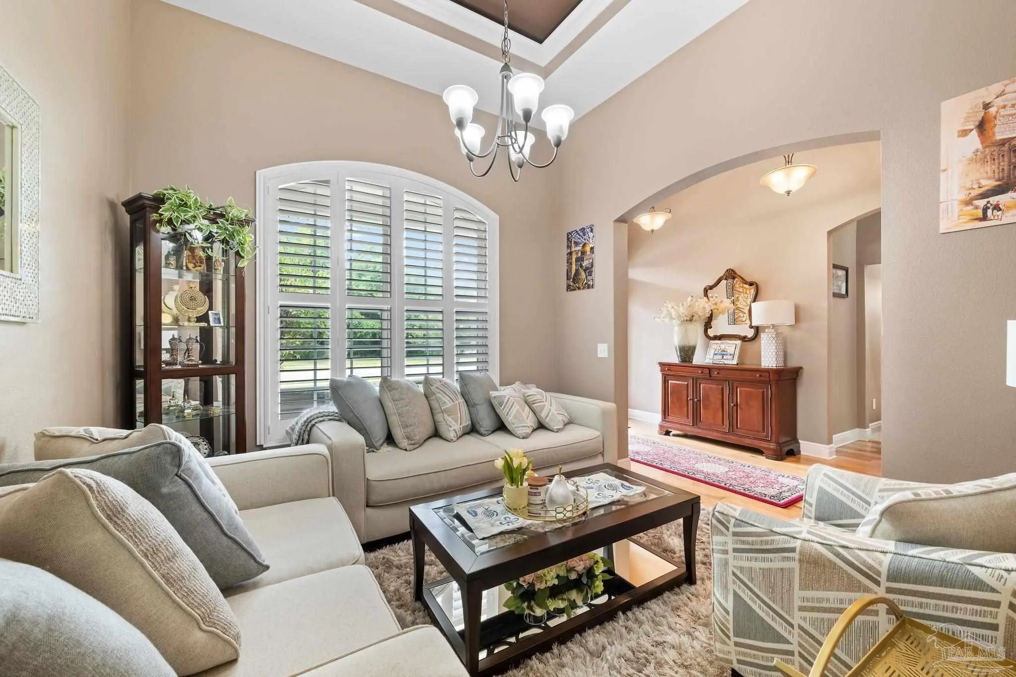 This beautiful 4 bedroom 3 bath stately Nature Trail residence is ready for you to call it home. Built in 2015 and nestled on a 0.44 acre lot (one of the largest in the neighborhood), this lovingly cared for home boasts of a luxurious master suite with new paint, tray ceiling with cove lighting, custom blinds, large master bath with dual sinks, garden tub with separate shower, and a lovely walk-in closet. The other spacious guest bedrooms have updated paint and plantation shutters and the vaulted family room (also with fresh paint) has three large windows and custom sun shades overlooking the expansive back yard with a 40x16 saltwater pool and paver surround that was added in 2019. Also overlooking the large outdoor space is a beautiful screened in area with fireplace for evenings by the pool or watching other outdoor family activities that such a large backyard can afford. The property also includes a nice storage shed for lawn equipment and other needs. Nature Trail subdivision also has a beautiful lodge with community pool, pickleball, basketball, tennis courtsĀ and miles of trails for walking and enjoying the serene and quiet nature of one of Pensacola's most beautiful gated communities. Schedule your tour today!