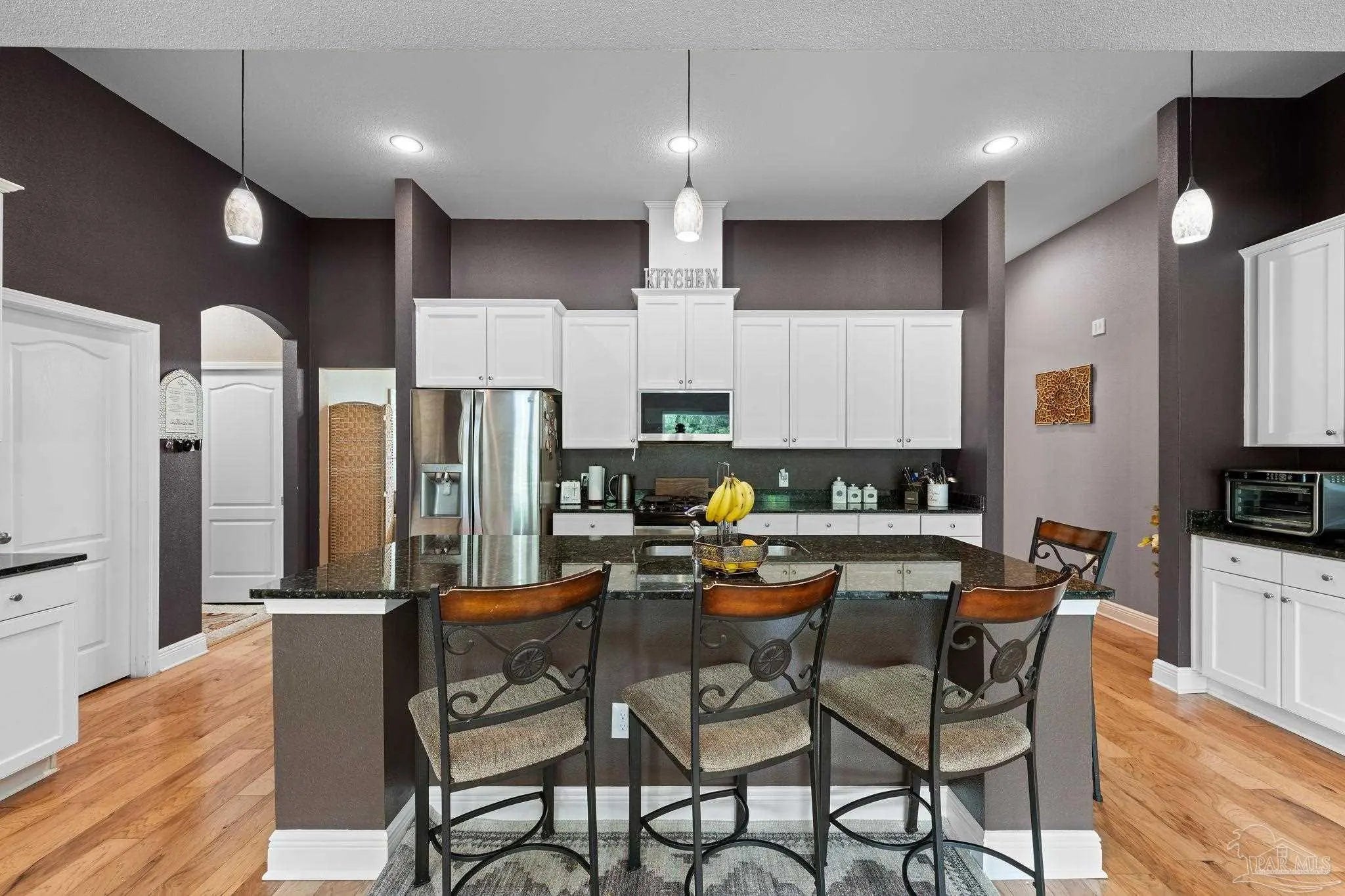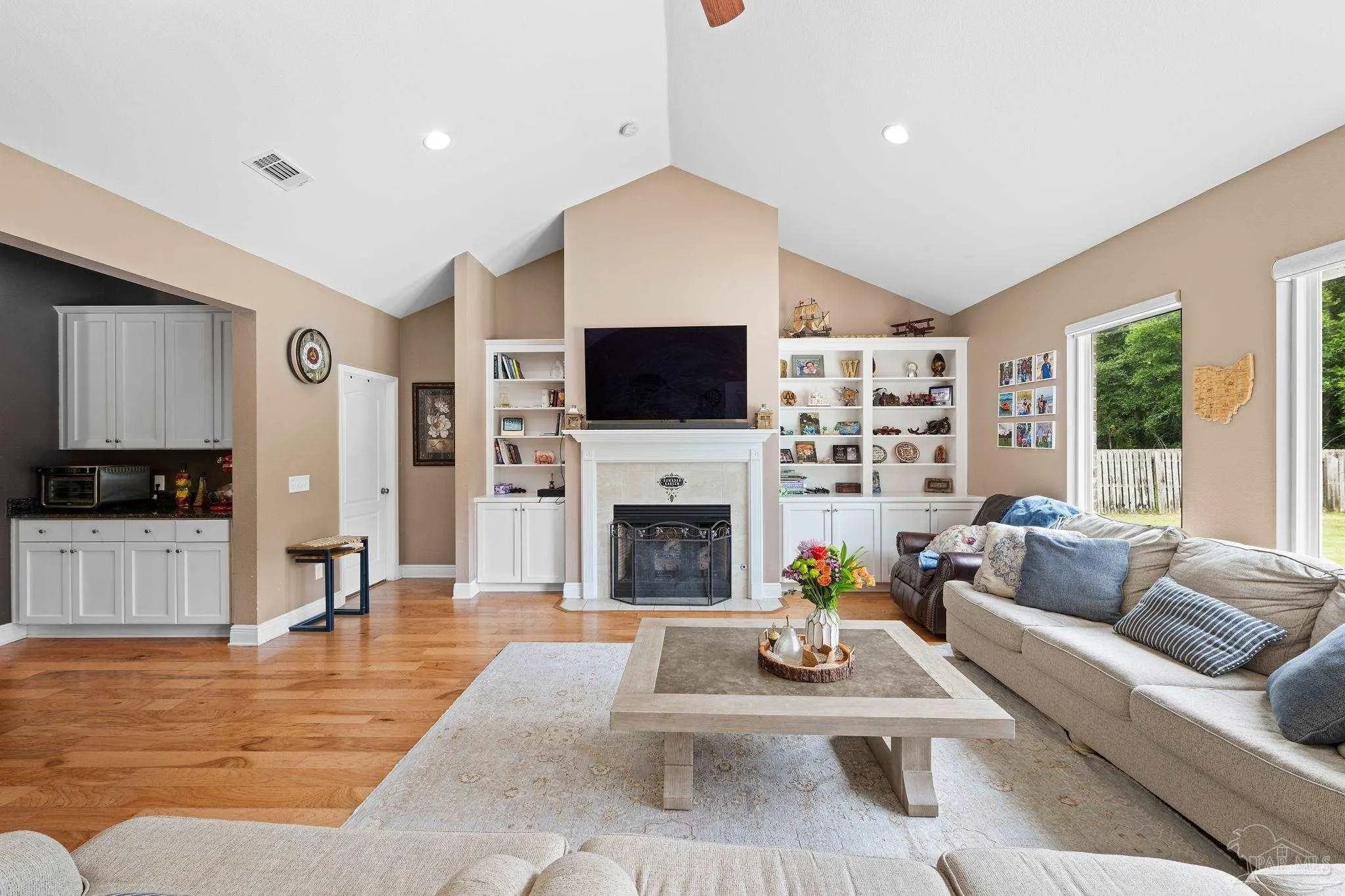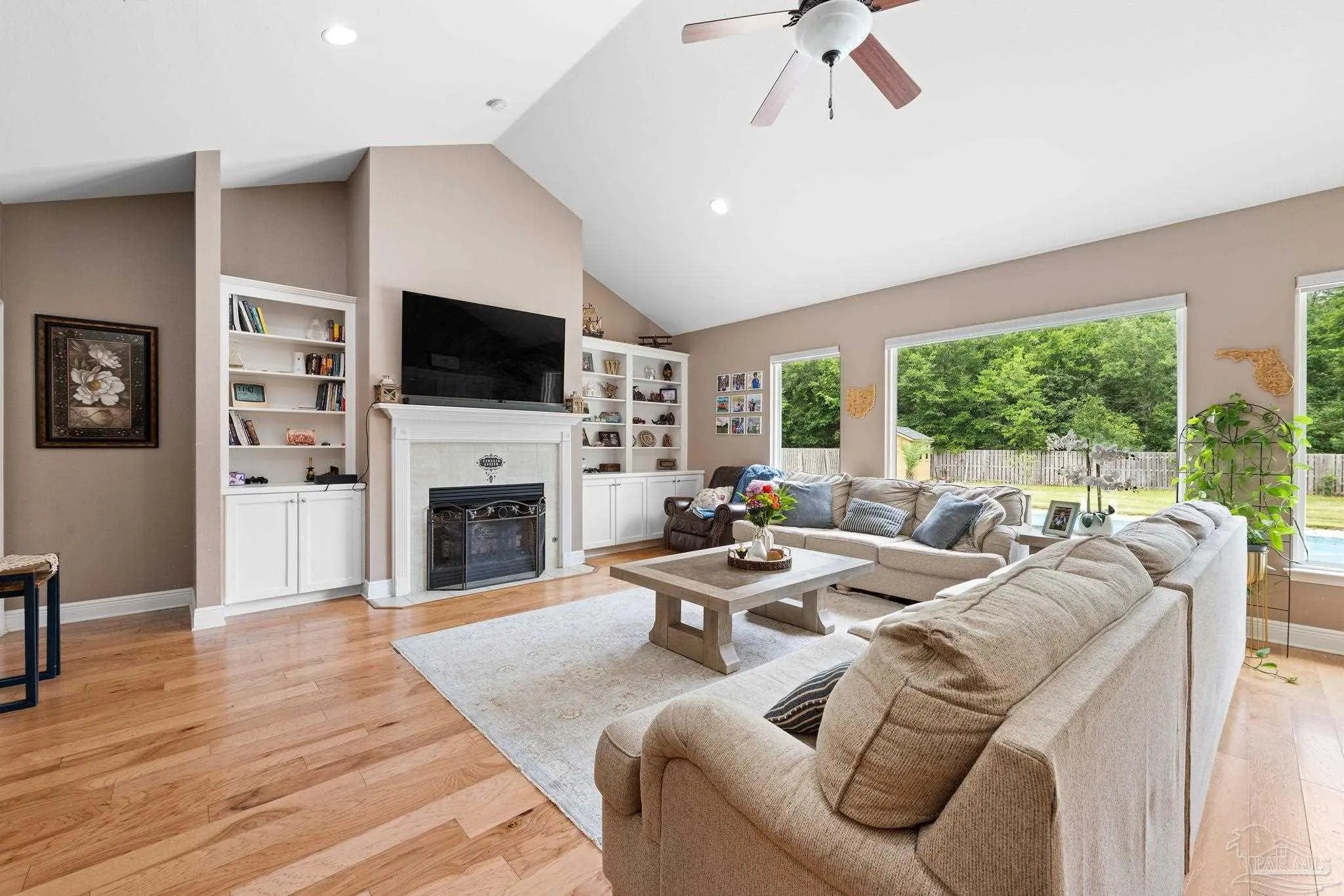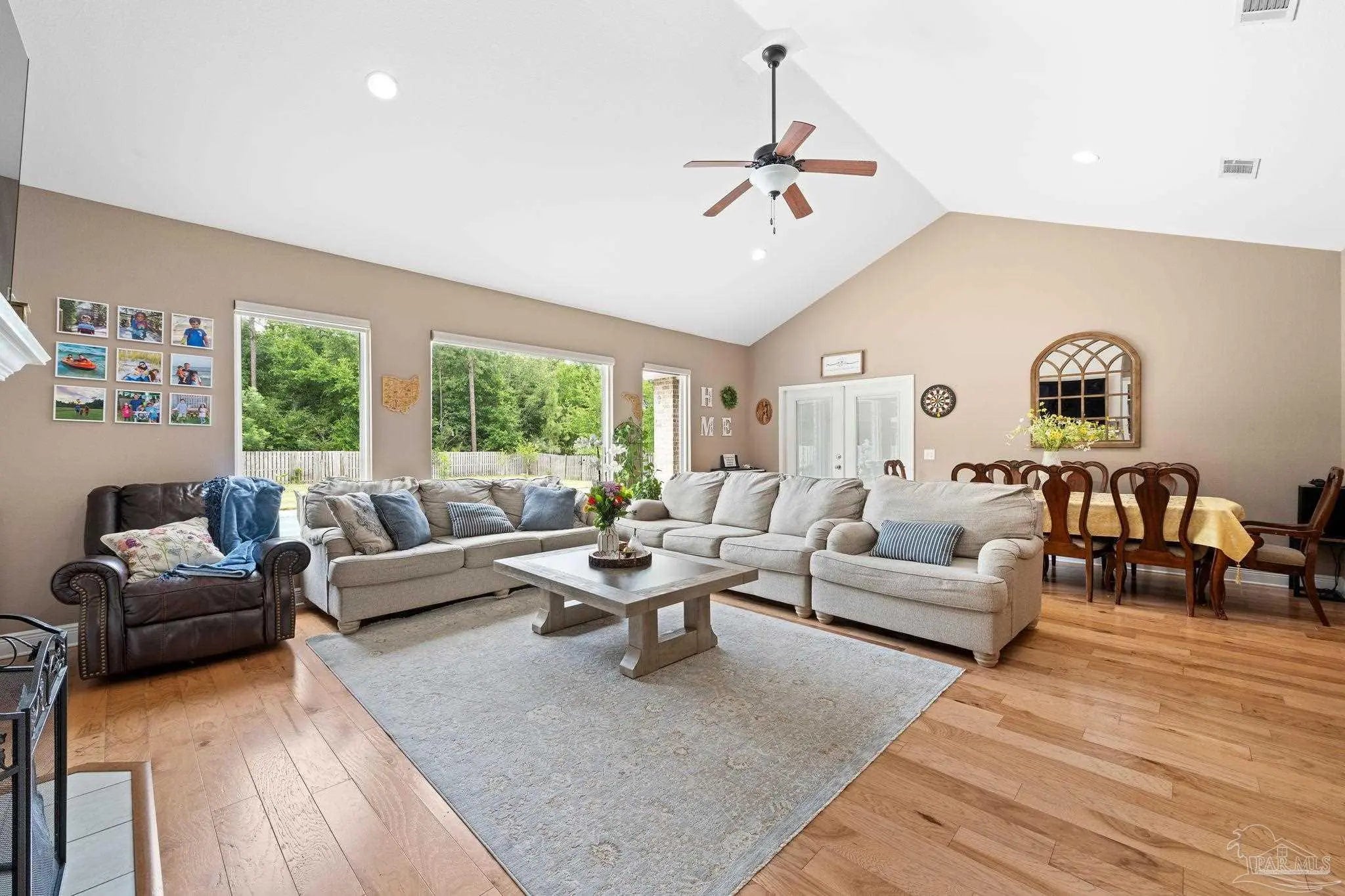 This beautiful 4 bedroom 3 bath stately Nature Trail residence is ready for you to call it home. Built in 2015 and nestled on a 0.44 acre lot (one of the largest in the neighborhood), this lovingly cared for home boasts of a luxurious master suite with new paint, tray ceiling with cove lighting, custom blinds, large master bath with dual sinks, garden tub with separate shower, and a lovely walk-in closet. The other spacious guest bedrooms have updated paint and plantation shutters and the vaulted family room (also with fresh paint) has three large windows and custom sun shades overlooking the expansive back yard with a 40x16 saltwater pool and paver surround that was added in 2019. Also overlooking the large outdoor space is a beautiful screened in area with fireplace for evenings by the pool or watching other outdoor family activities that such a large backyard can afford. The property also includes a nice storage shed for lawn equipment and other needs. Nature Trail subdivision also has a beautiful lodge with community pool, pickleball, basketball, tennis courtsĀ and miles of trails for walking and enjoying the serene and quiet nature of one of Pensacola's most beautiful gated communities. Schedule your tour today!