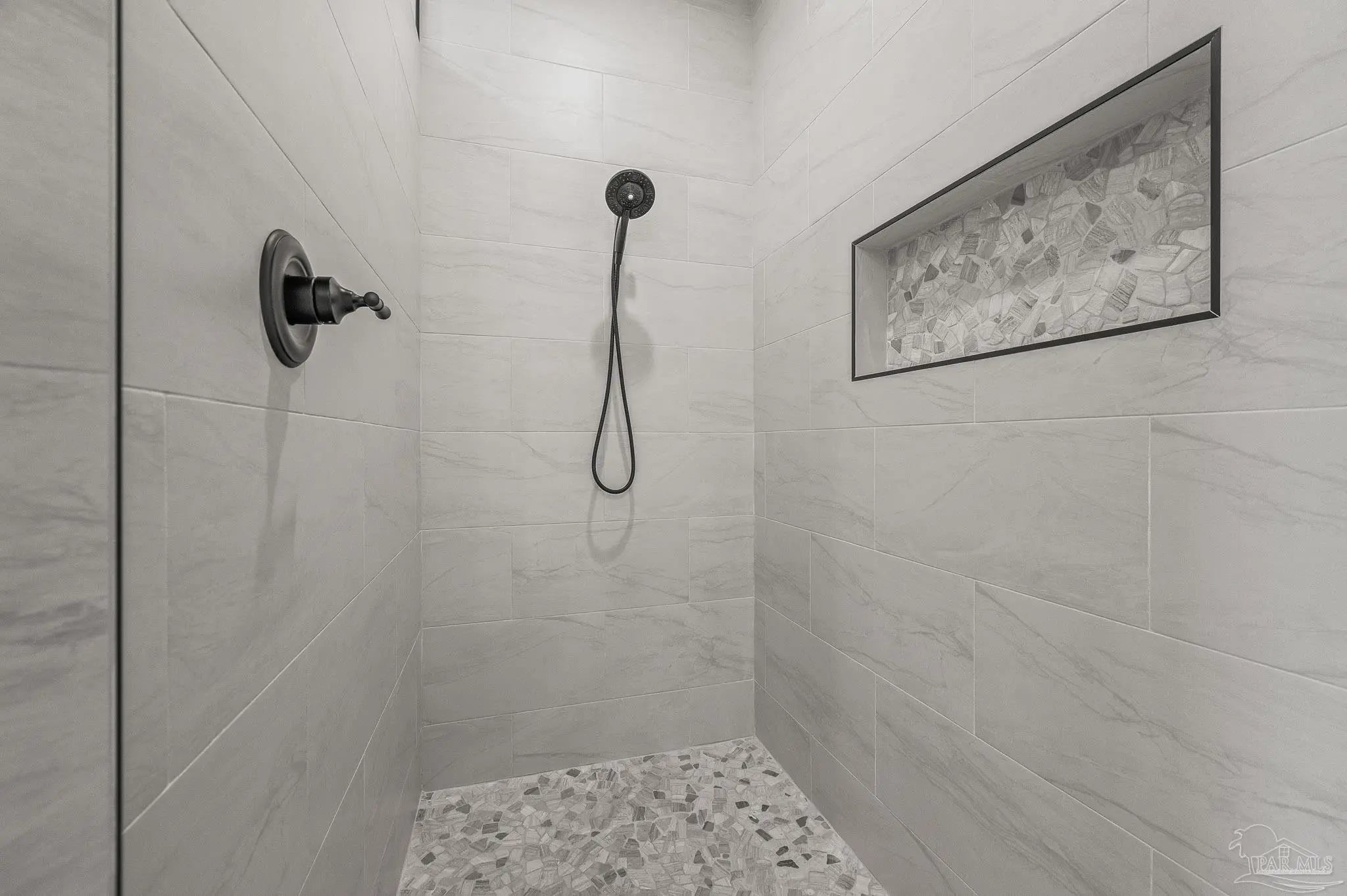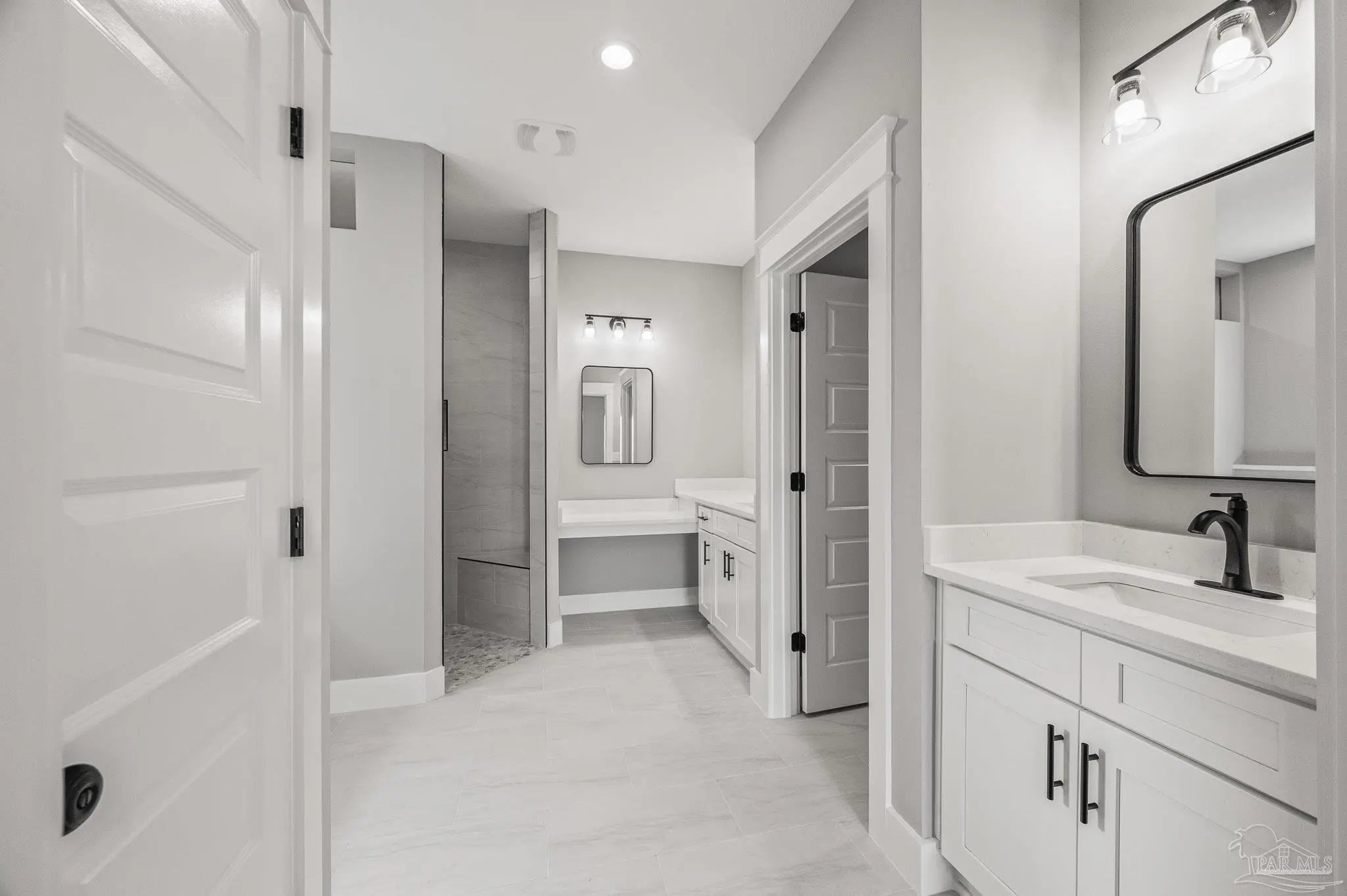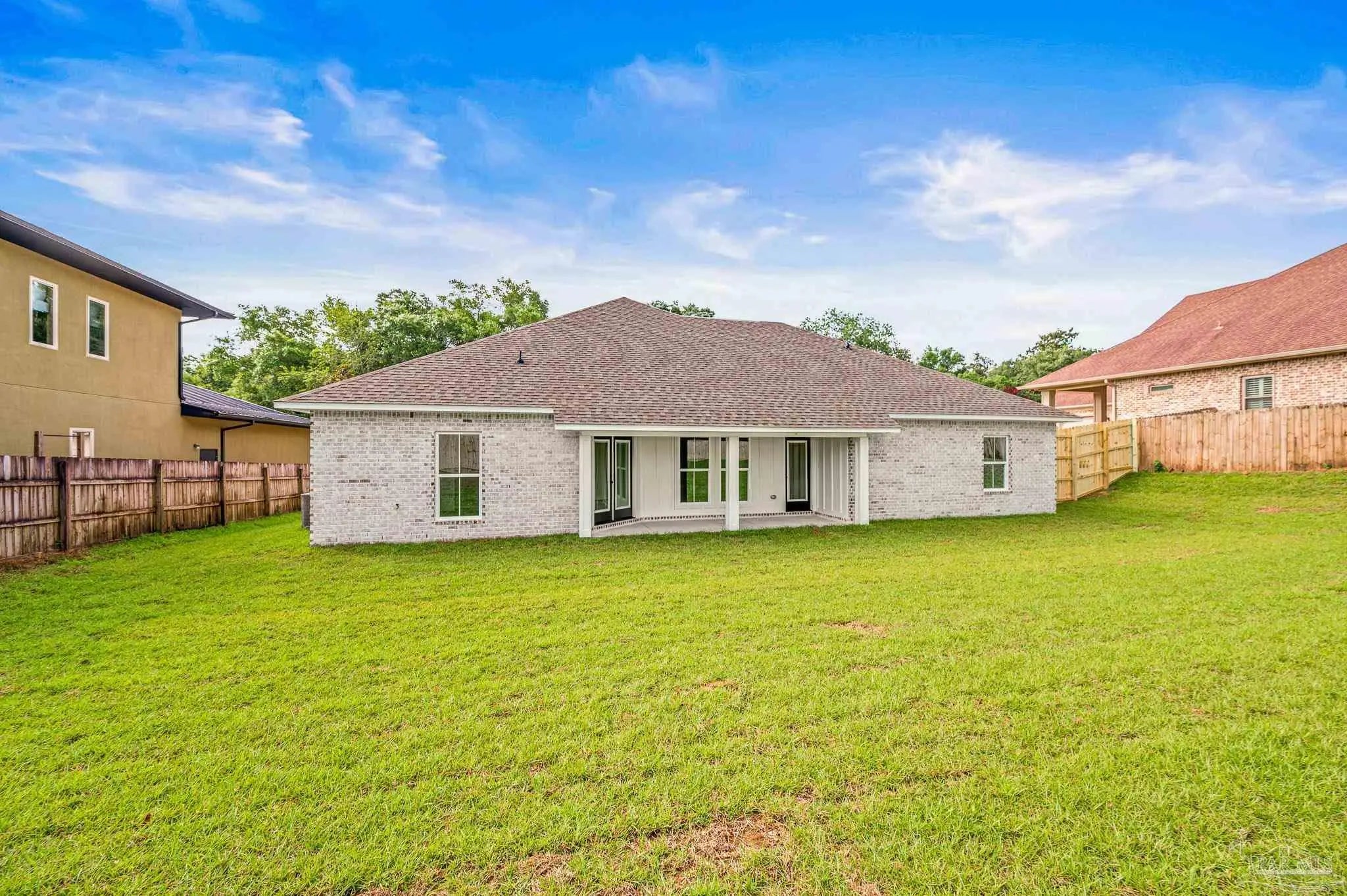 Discover this breathtaking, move-in ready new construction home in Northeast Pensacola, just minutes from local universities, hospitals, and vibrant shopping destinations! This 5-bedroom, 3-bathroom masterpiece spans 3,017 square feet, including a spacious upstairs bonus room. From the very moment you enter, you will be captivated by the open floor plan, high ceilings, and an abundance of natural light that fills every corner with warmth and life. The heart of this home is a luxurious kitchen adorned with elegant quartz countertops and sleek under-cabinet lighting—perfect for hosting memorable dinners or simply enjoying everyday moments. Just off the kitchen, a spacious living area opens to a covered patio, inviting you to savor your mornings with coffee or unwind in the evening’s tranquility. The primary suite offers a private sanctuary, complete with its own door to the patio, leading into a stunning bathroom featuring a freestanding tub, custom tile shower, and a dedicated dressing area—your personal retreat after a busy day. Four additional bedrooms are thoughtfully placed on the ground floor, while the upstairs bonus room provides cherished extra space for a home office or hobbies. Near the side-entry garage, a separate entrance grants easy access to a guest suite, perfect for visitors or extended family. The ground floor boasts beautiful tile flooring throughout, contrasting with soft, plush carpeting upstairs in the bonus room—creating the perfect balance of elegance and comfort. Outside, the fenced-in yard with a privacy fence offers peace and seclusion, while generous storage throughout the home ensures your belongings are always organized. This isn’t just a house—it’s the home where your future memories will unfold with comfort, style, and heart!