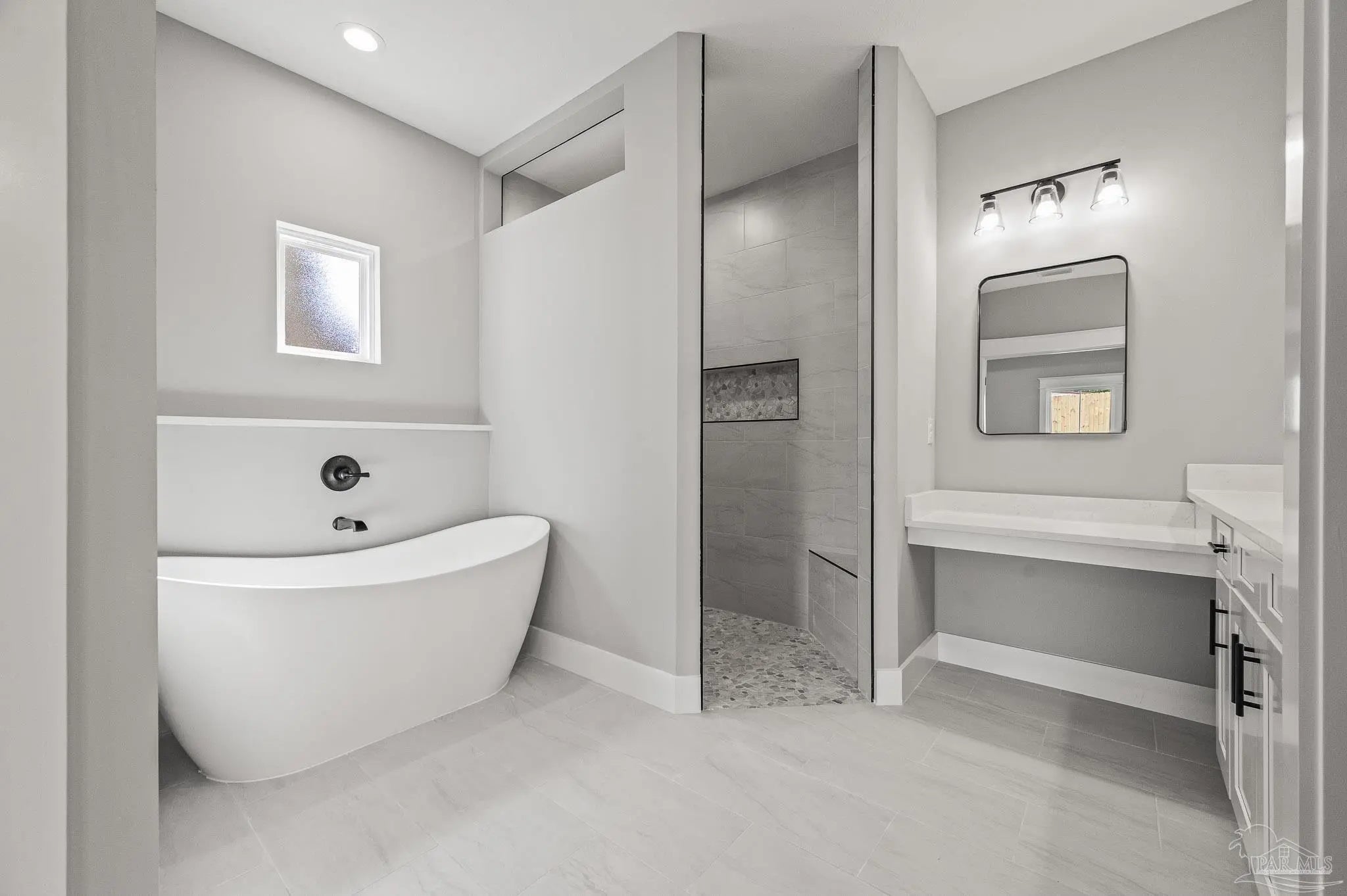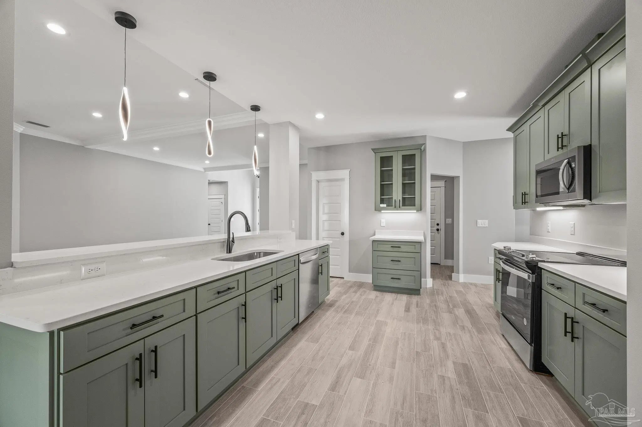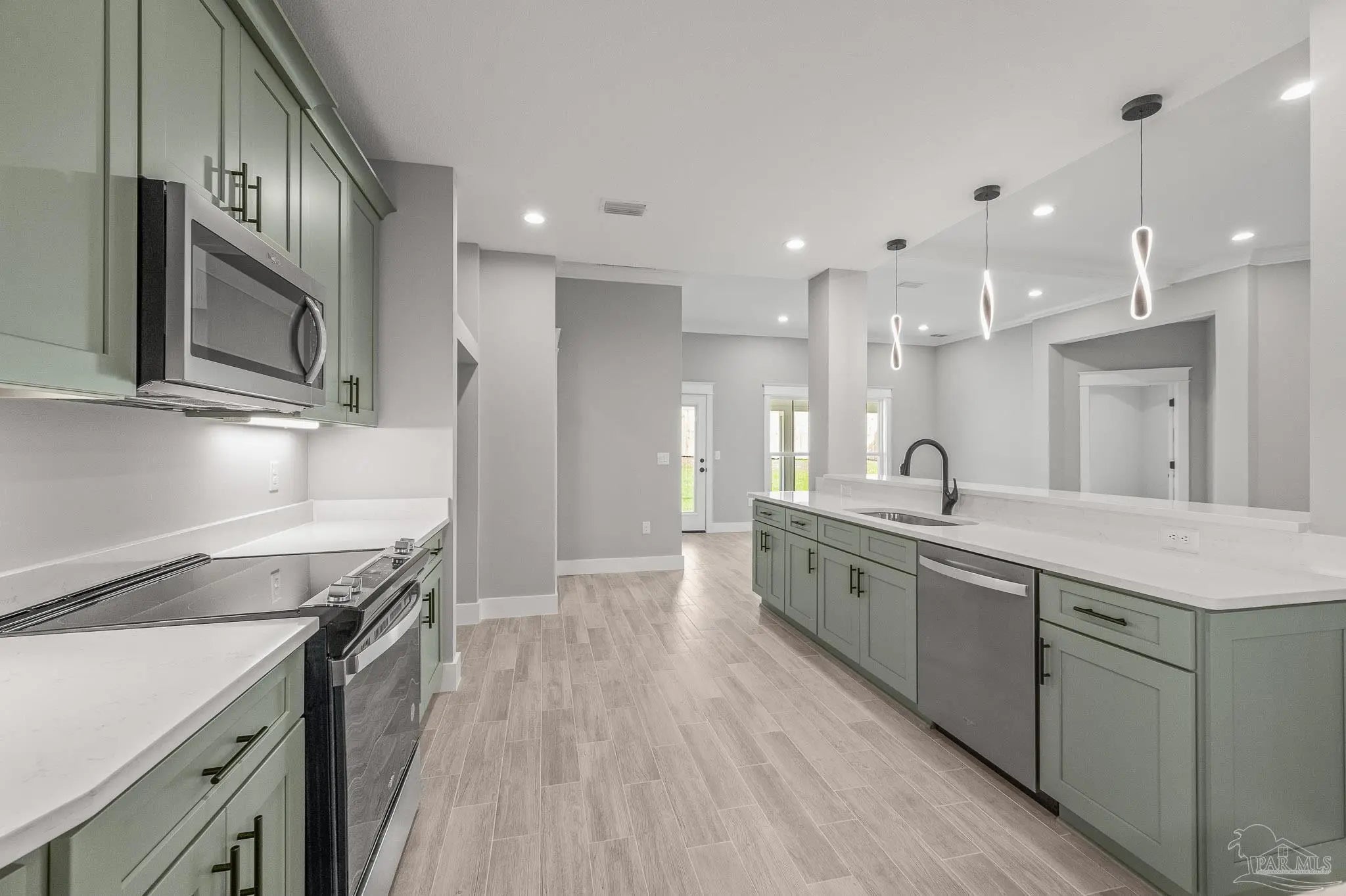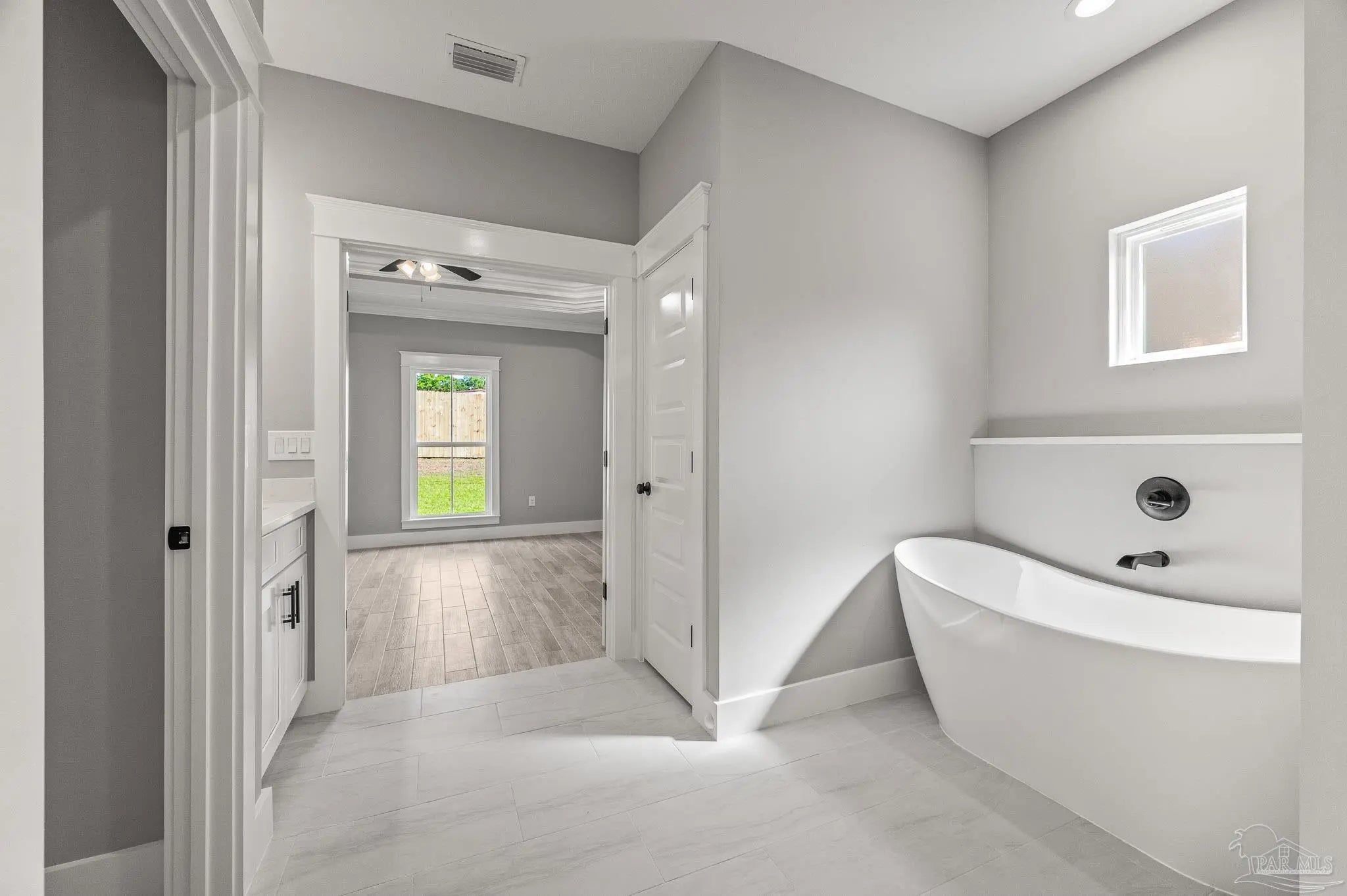 Discover this breathtaking, move-in ready new construction home in Northeast Pensacola, just minutes from local universities, hospitals, and vibrant shopping destinations! This 5-bedroom, 3-bathroom masterpiece spans 3,017 square feet, including a spacious upstairs bonus room. From the very moment you enter, you will be captivated by the open floor plan, high ceilings, and an abundance of natural light that fills every corner with warmth and life. The heart of this home is a luxurious kitchen adorned with elegant quartz countertops and sleek under-cabinet lighting—perfect for hosting memorable dinners or simply enjoying everyday moments. Just off the kitchen, a spacious living area opens to a covered patio, inviting you to savor your mornings with coffee or unwind in the evening’s tranquility. The primary suite offers a private sanctuary, complete with its own door to the patio, leading into a stunning bathroom featuring a freestanding tub, custom tile shower, and a dedicated dressing area—your personal retreat after a busy day. Four additional bedrooms are thoughtfully placed on the ground floor, while the upstairs bonus room provides cherished extra space for a home office or hobbies. Near the side-entry garage, a separate entrance grants easy access to a guest suite, perfect for visitors or extended family. The ground floor boasts beautiful tile flooring throughout, contrasting with soft, plush carpeting upstairs in the bonus room—creating the perfect balance of elegance and comfort. Outside, the fenced-in yard with a privacy fence offers peace and seclusion, while generous storage throughout the home ensures your belongings are always organized. This isn’t just a house—it’s the home where your future memories will unfold with comfort, style, and heart!