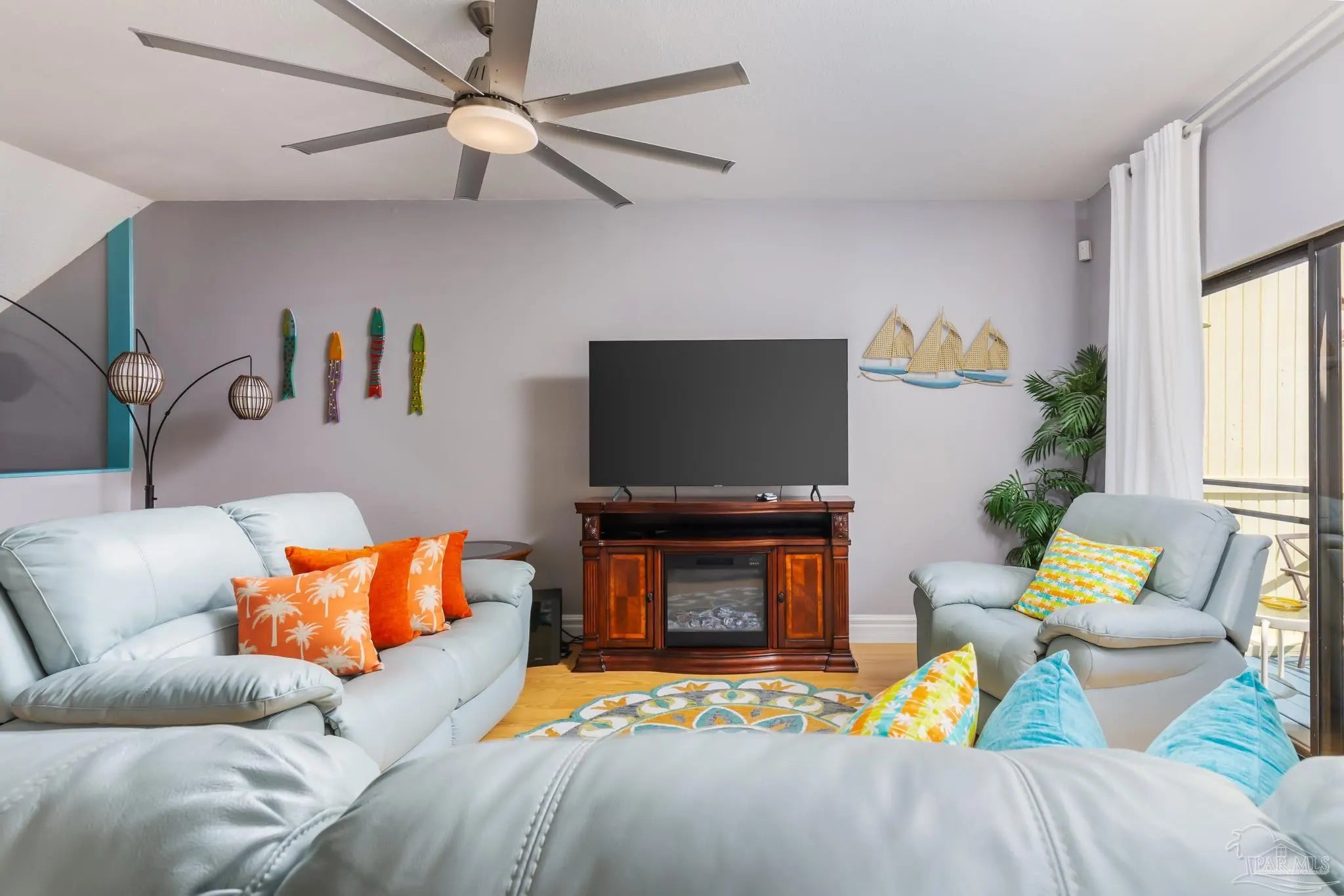 Beautifully renovated and fully furnished Navarre Beach townhome in the sought-after Buena Vida community! This property features Gulf and Sound views, an open-concept living/dining area, and a fully updated kitchen with granite counters and stainless appliances. Spacious bedrooms, including a top-floor primary suite with private balcony, oversized closet, and en suite bath. New luxury vinyl flooring, stacked washer/dryer, and mounted TVs in all bedrooms. Enjoy the large third-floor balcony and oversized deck overlooking the pool and lush grounds. Includes 1-car garage, bonus room, and 2 additional parking spaces. Assigned boat slip with power/water. Community amenities: beach, pool, tennis, and dock. Not on rental market due to renovations but has short-term rental history. Immediate occupancy available. Don’t miss this turnkey coastal gem!
