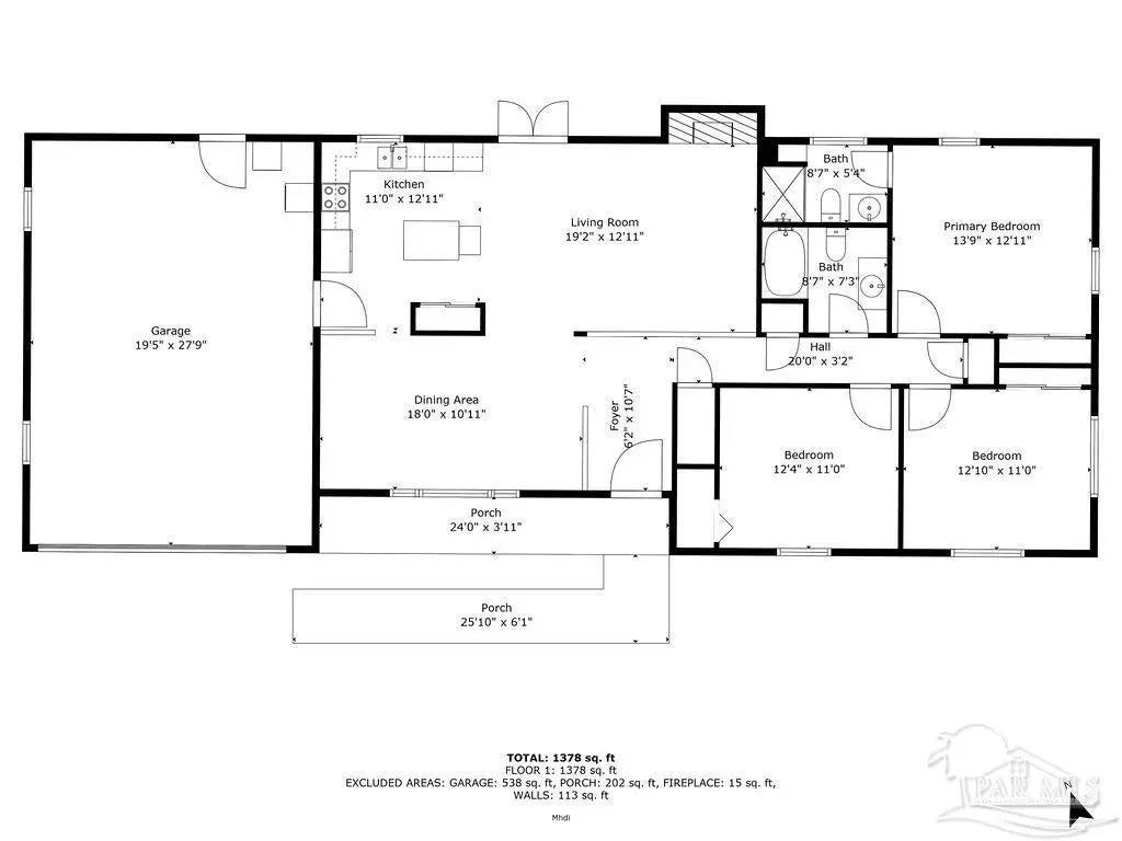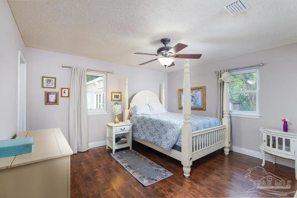 Welcome to this move-in-ready gem nestled in the heart of NE Pensacola. This charming 3-bed, 2-bath home offers 1,470 SF of well-designed living space, featuring a thoughtful layout that flows effortlessly from room to room in addition to 169 SF in a detached dwelling unit. The centerpiece of the home is the open-concept kitchen and living area, with the dining room tucked just beyond a spacious food pantry—perfect for entertaining or everyday living. Relax by the cozy wood-burning fireplace in the generously sized living room, ideal for unwinding with family or friends. Enjoy modern comforts including a tankless gas water heater, delivering endless hot water—especially appreciated in the beautifully updated master bathroom. Situated on a desirable corner lot, the property offers privacy, lush landscaping, and a fully fenced yard. The 2-car garage features coated floors, a brand-new impact-rated garage door, and plenty of storage space. Recent upgrades include a new metal roof, energy-efficient spray foam insulation, and acoustic ceiling planks, providing year-round comfort, noise reduction, and lower energy bills. Plus, a detached 13x13 heated and cooled bonus space—perfect as a man cave, she-shed, studio, or office—adds even more versatility. Recreational opportunities abound with multiple city parks nearby, including Hitzman Optimist Park and Pensacola Youth Soccer fields—both within walking distance. Downtown Pensacola is just 10 minutes away, and Pensacola Beach is an easy 20-min drive. Commuters will appreciate quick access to I-10 and Scenic Highway, with convenient travel times to the Navy Base (25 min) and UWF (20 min). You’ll also be just minutes from everyday essentials such as Cordova Mall, Pensacola Airport, Pensacola State College, and Sacred Heart Hospital. Don’t miss your chance to live the coastal lifestyle in one of Pensacola’s most convenient and sought-after neighborhoods. Schedule your private showing today and make this home yours!