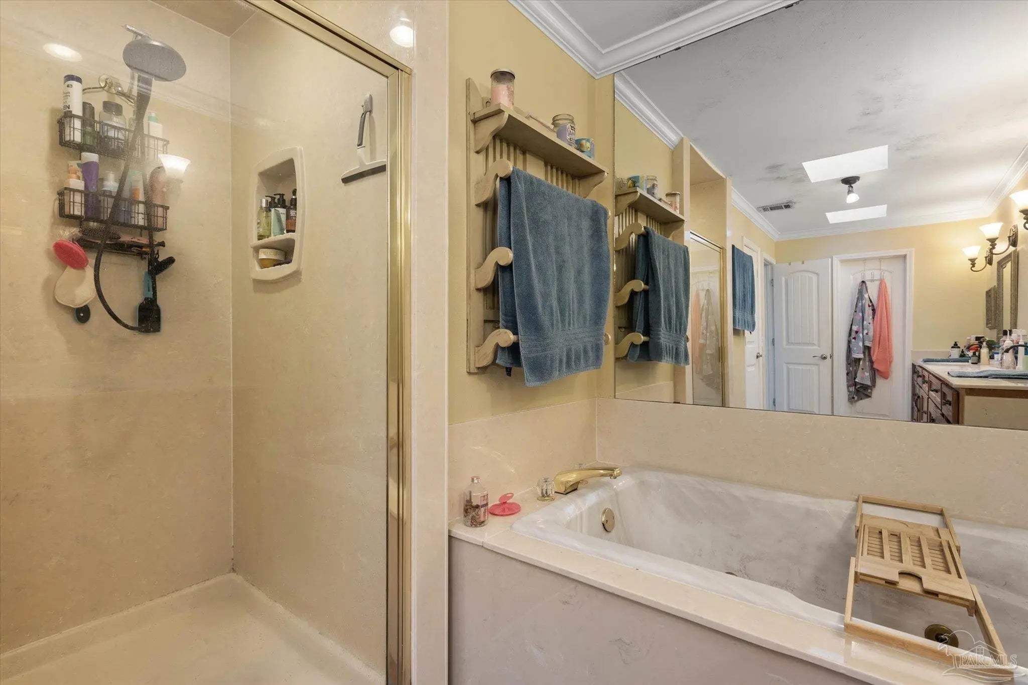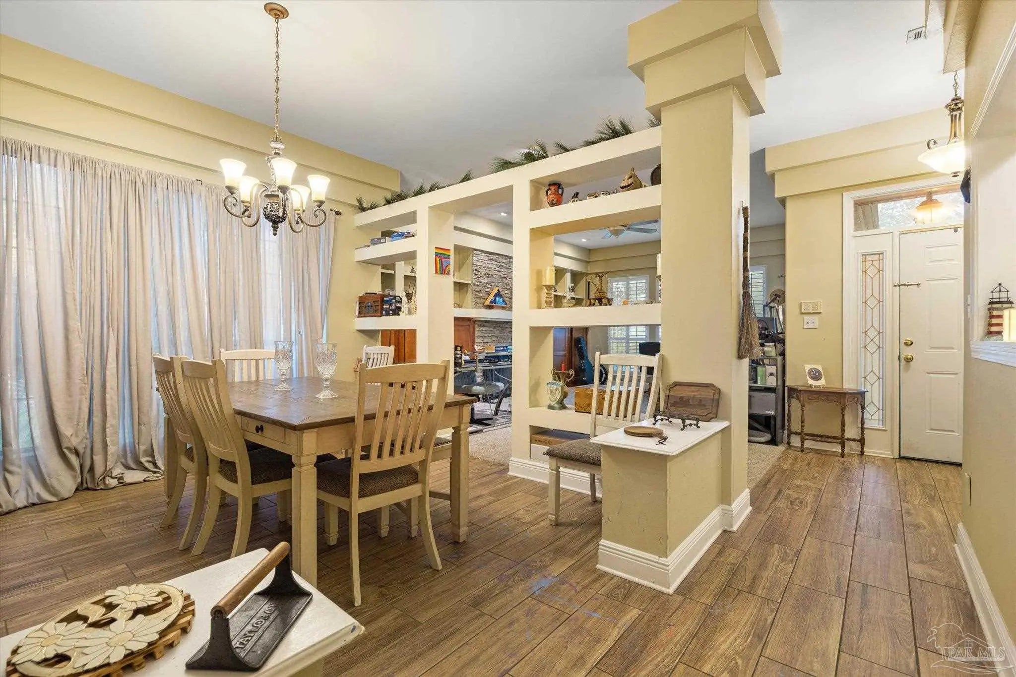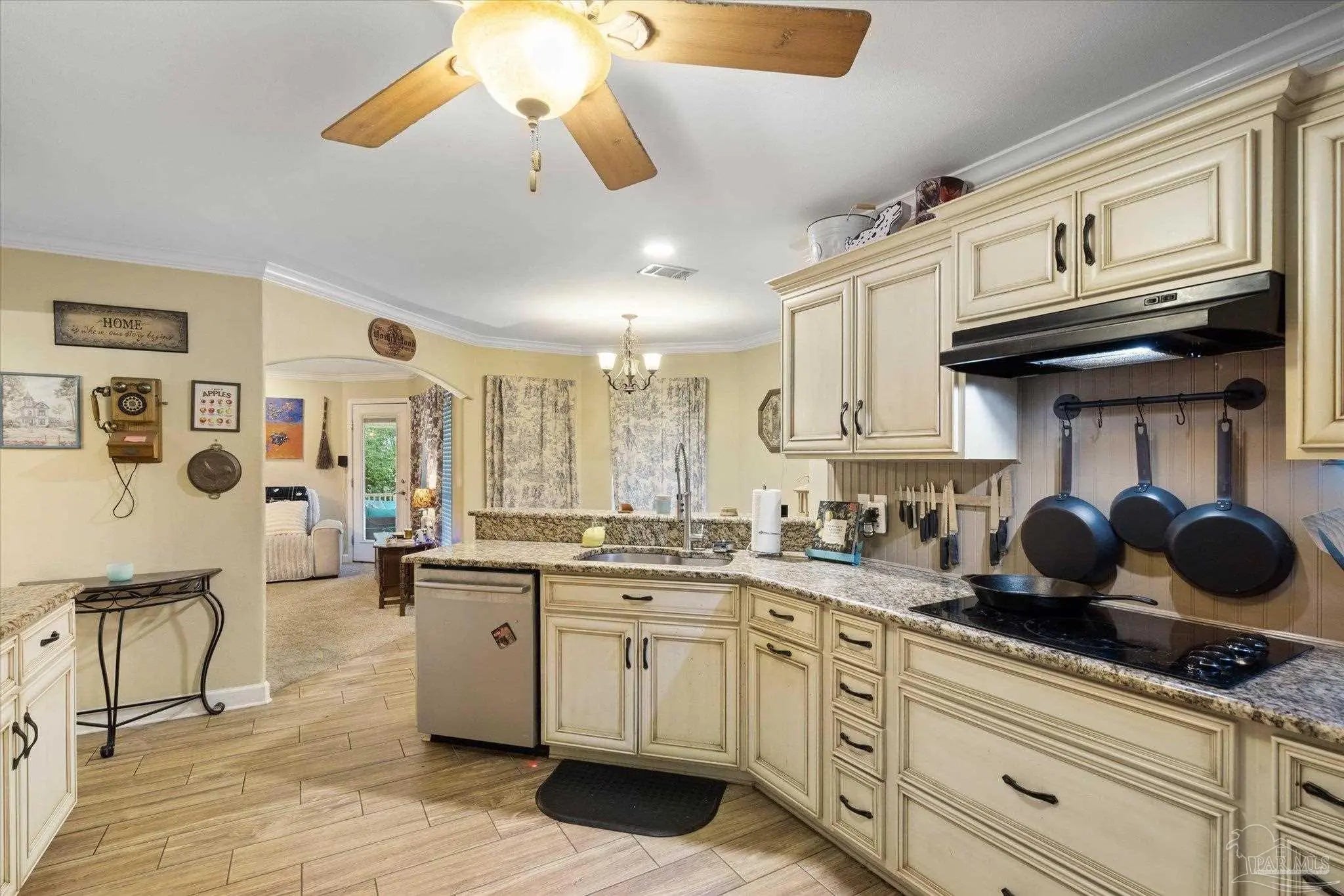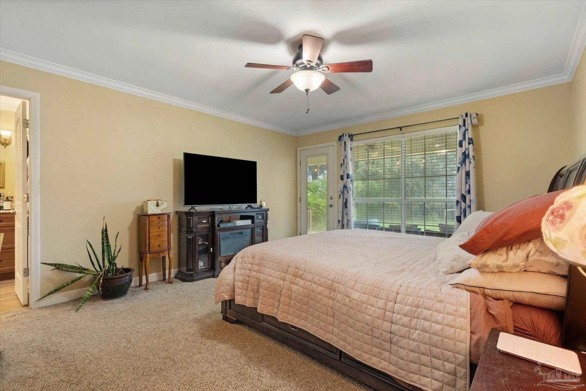 Welcome to this beautifully maintained custom home in Cantonment, FL, offering 3 bedrooms and 2 baths of comfortable Florida living. Step inside to a spacious den bathed in natural light streaming through three large windows, all adorned with custom plantation shutters. Built-in cabinetry adds to the home's refined feel. Entertain with ease in the generous formal dining area, seamlessly flowing into a custom kitchen featuring an eat-at breakfast bar and a charming breakfast nook overlooking the back deck. Need a dedicated space for relaxation or work? The spacious livingroom boasts a convenient coffee bar and small refrigerator, perfect for a cozy retreat. The master suite offers a private oasis, complete with direct access to the back deck, a well-appointed bathroom with a separate shower and dual sinks, and an exceptionally large walk-in closet. The hall bath has been tastefully updated with new cabinets, marble countertops, and a tile tub/shower. Outdoor living is a dream here! Enjoy the Florida sunshine from your covered patio or the extra-large wooden deck, ideal for gatherings. The nicely landscaped, fully fenced backyard provides ample space for recreation, featuring two walk-through gates and a double gate for convenient storage of your camper or boat. You'll also appreciate the oversized garden shed for abundant storage and a dedicated greenhouse for the avid gardener. There's plenty of flex room inside and out to truly make this home your own! Schedule your showing today!