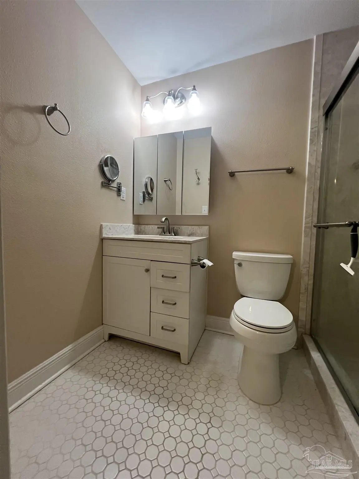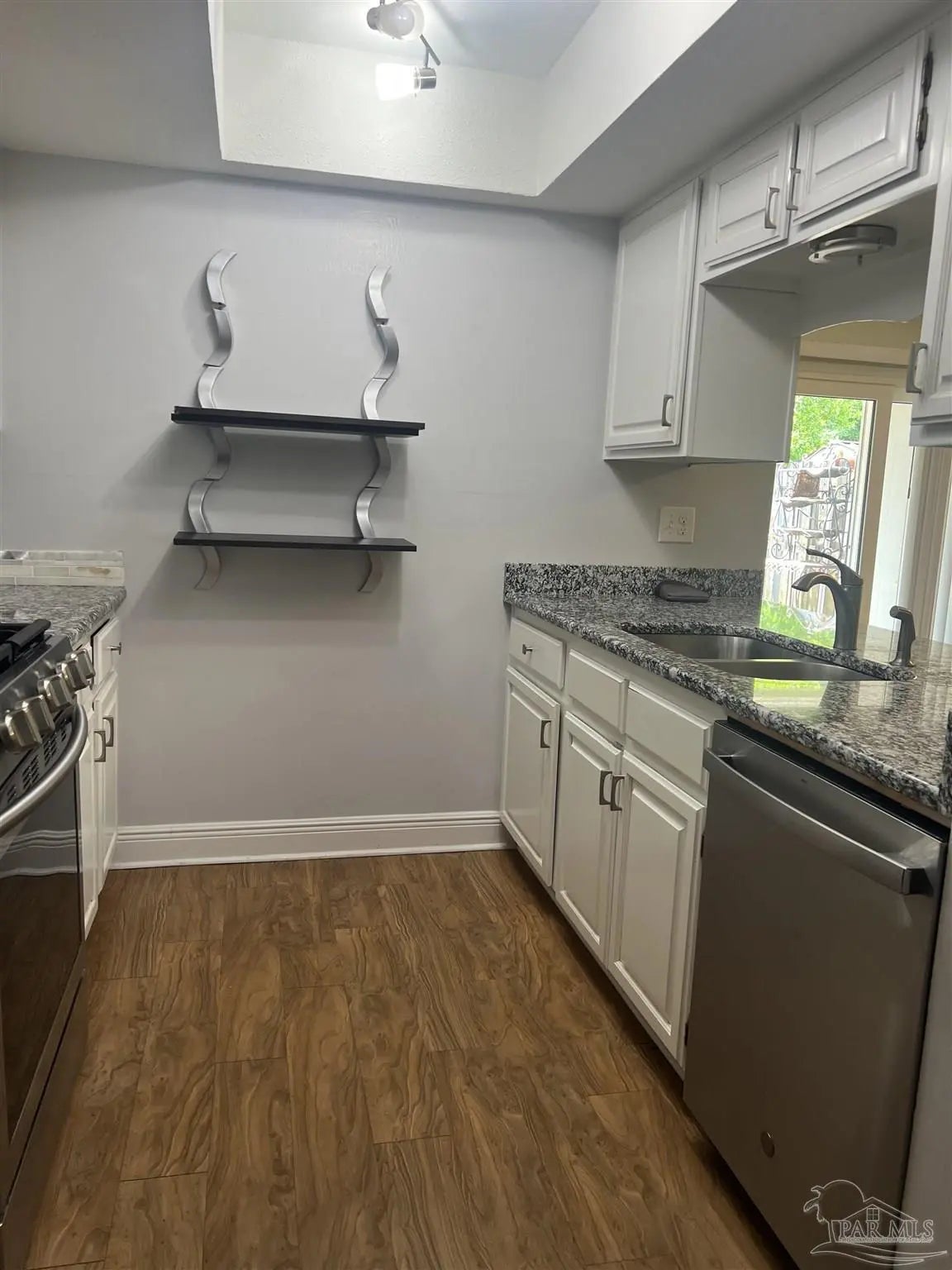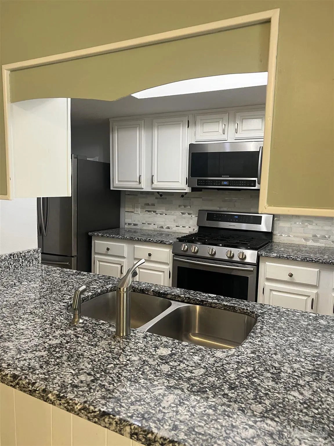 Check out this updated end-unit townhome in NE Pensacola! Convenient to schools, shopping & interstate. Formal living and separate family/dining rooms with wood-like plank flooring. Granite kitchen w/ 5-burner gas range, built-in microwave, ultra-quiet dishwasher, pantry, & fridge with bottom freezer. Powder room/half bath conveniently located downstairs. Large rear family room opens to inside laundry & covered back patio and yard. Upstairs main bedroom has 2 closets & private bath with tile, dual shower heads, glass doors, cultured marble top, & furniture-grade vanity. Two guest BRs with wood-like plank flooring, ceiling fans, & ample closets. Full hall bath with tile & tub/shower combo with easy access to both additional bedrooms. These final amenities round out this home making it a move-in-and-live scenario: Storm door, blackout blinds, double-pane tilt-sash windows, tankless water heater, whole-house Generac generator, covered patio and Chicago brick open patio, privacy-fenced yard, back yard storage building and large gated side yard!