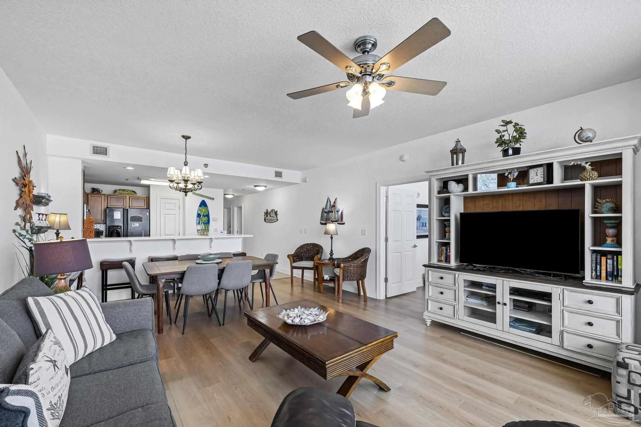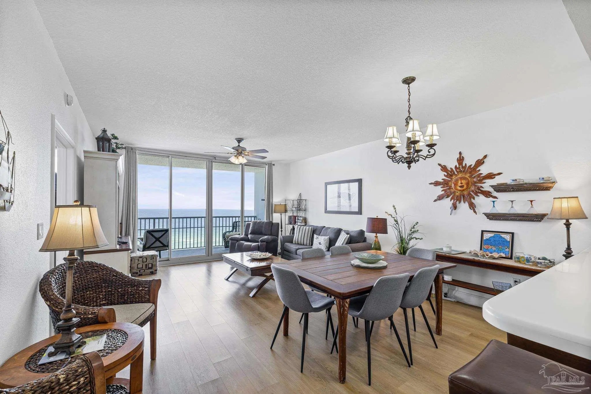 Welcome to your beachfront escape at Emerald Dolphin, where sugar-white sands, emerald waters, and endless Gulf views set the scene for unforgettable winter getaways and holiday gatherings. Perched on the 12th floor, this 3-bedroom, 2-bath condo offers 1,372 square feet of coastal elegance designed for relaxation and celebration. New luxury vinyl plank flooring (May 2024) complements the soft, coastal palette and open-concept layout—perfect for entertaining guests or cozying up by the window as the waves roll in. The private balcony invites you to start your mornings with warm coffee and end your evenings with breathtaking sunsets over the Gulf. Hosting the holidays here feels effortless. The spacious kitchen and dining area flow seamlessly into the living room, offering plenty of room for family and friends to gather, feast, and make lasting memories—all while the Gulf shimmers in the background. Enjoy the best of beachside living with rare perks like garage parking and a private storage unit. Emerald Dolphin’s amenities include a resort-style pool, fitness center, and boat parking, plus a convenient trolley stop right outside for exploring the island’s restaurants and shops. Whether you’re seeking a winter retreat, a holiday host’s dream, or a year-round slice of paradise, this beachfront condo delivers the warmth, beauty, and tranquility of Pensacola Beach—no matter the season.