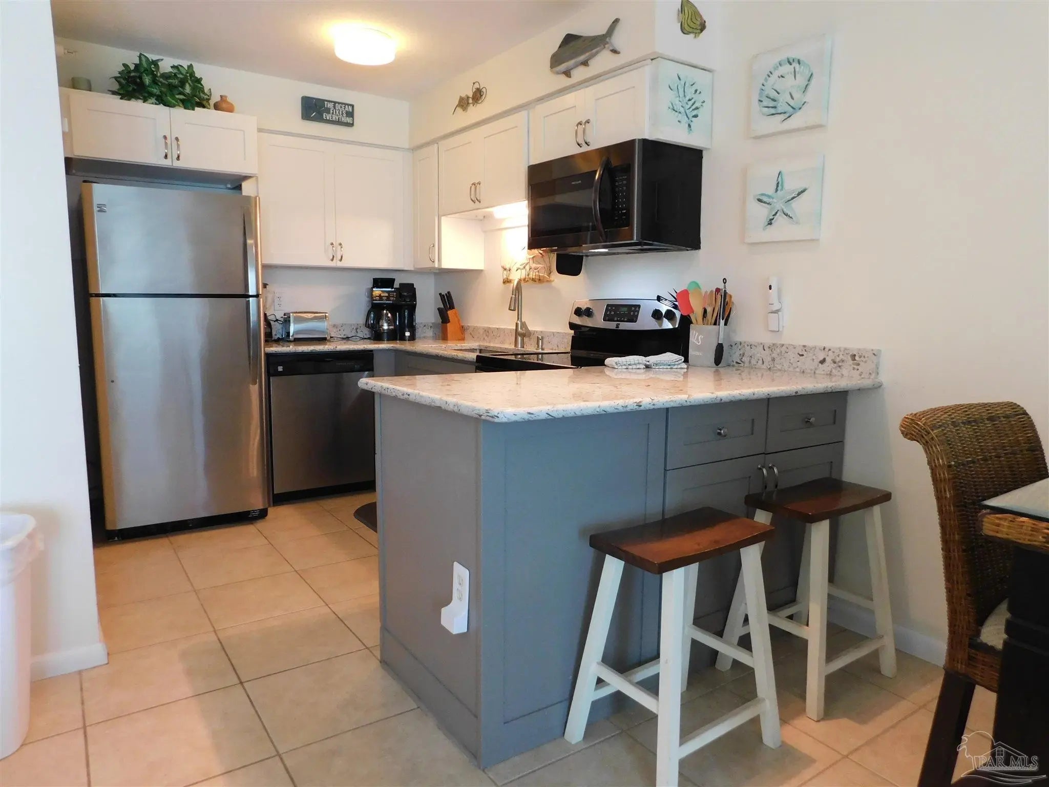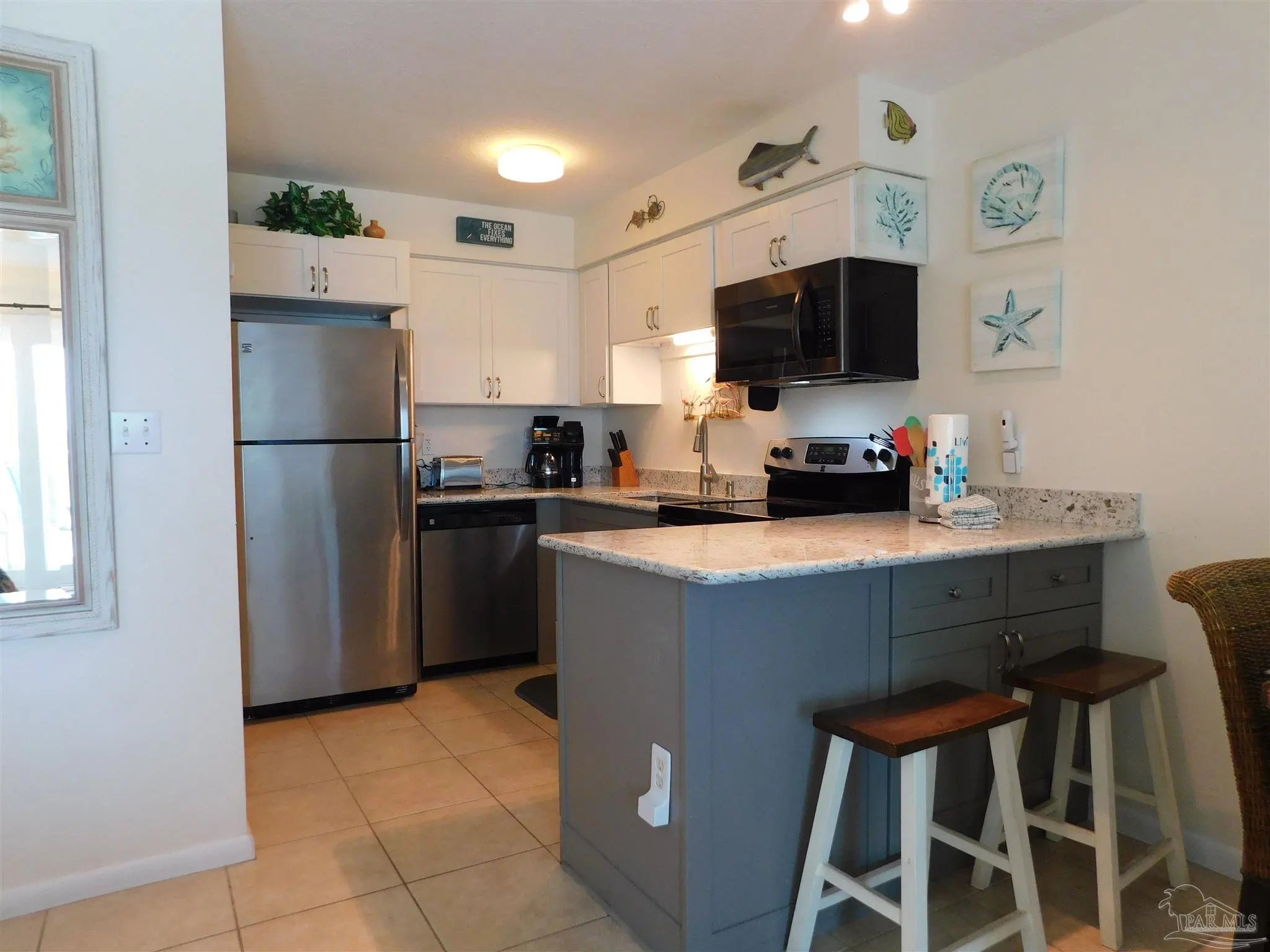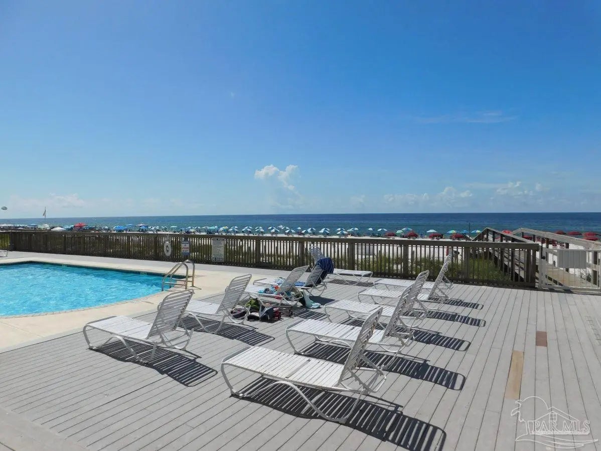 Welcome to this lovely, GULF FRONT condo, with a fantastic view of one of Florida's most gorgeous beaches! Located on beautiful Perdido Key, this tastefully decorated beach hideaway comes completely furnished, and has accommodations for a family of 6! Whether you're looking for a personal retreat to relax and unwind, or an income generating investment property, this one has it all. TURN KEY and ready for you to enjoy, this unit features a new king size bed with nightstands in the master bedroom (2024), bunk beds in the hall (mattresses replaced 2022), new living room furniture, including TV and a double bed sleeper couch (replaced 2022), and a washer & dryer. Plus... a remodeled kitchen, with all new SS appliances, new kitchen cabinets, new granite countertops and new hardware (2021-2022). The private balcony is the perfect spot to sit back with a glass of wine, breathe in the salt air, and enjoy the sweeping view of the sugary sand beach and shimmering waves as they roll into shore. There is so much to love here, with community amenities like a gulf front, heated swimming pool, a private beach walkway with outdoor shower, a fitness room and a community room. And it's conveniently located right across the street from the Villagio Centre, with its popular restaurants and shops. Additional recent upgrades include, new front door and door frame, new windows and slider, new roof, and new pool deck coating. Plus the building exterior has been resurfaced, painted and sealed.