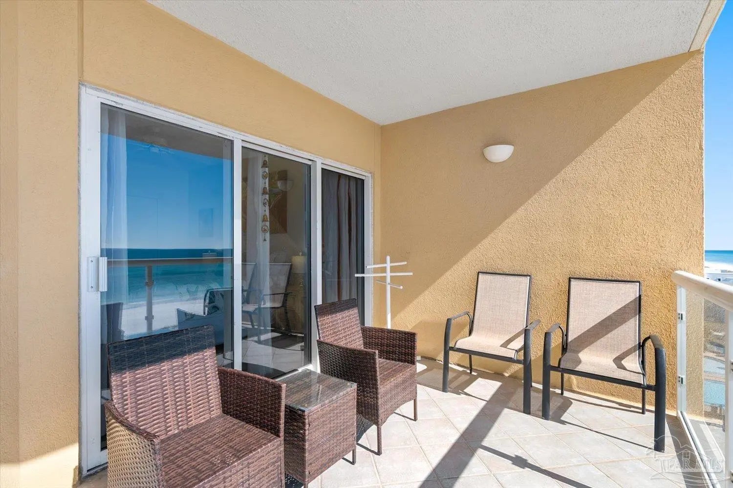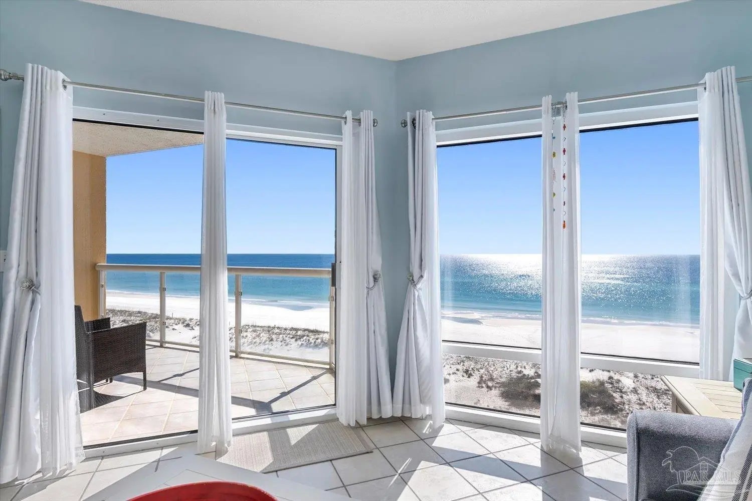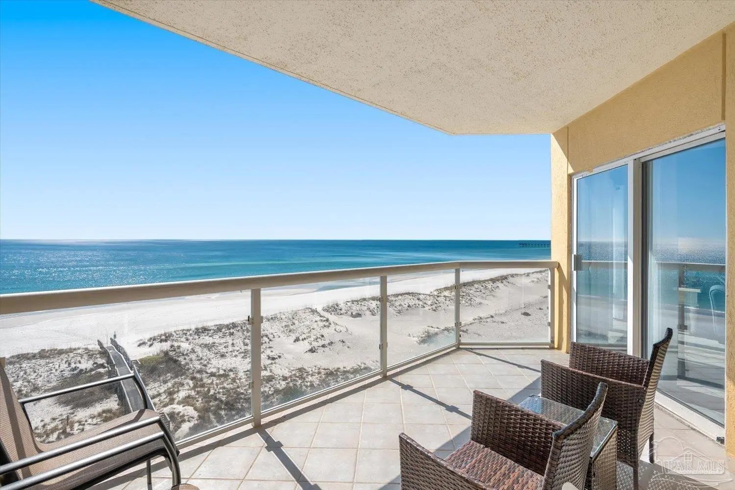 Experience the epitome of vacation home or vacation rental investment at Emerald Isle Unit 604, an exquisite 2-bedroom, 2-bathroom condominium nestled in the heart of picturesque Pensacola Beach. This rare gem offers stunning water vistas from both bedrooms, with a Gulf view in the primary bedroom and a serene Sound view from the additional bedroom. Immerse yourself in the allure of this fully furnished and tastefully decorated condo, featuring floor-to-ceiling windows that provide unobstructed panoramas of the ocean, extending to the horizon. Moreover, the unit is strategically positioned at eye-level for the annual Blue Angels Air Show, promising an unforgettable and distinctive spectacle, all while enjoying the comfort of the condo's interior with views of the pristine white beach sand. Centrally located in Pensacola Beach, this condo ensures convenient access to a plethora of restaurants and activities, making it the perfect destination for an ideal vacation getaway. Ready for occupancy, this condo comes fully furnished to be ready to be a vacation rental or your new home!