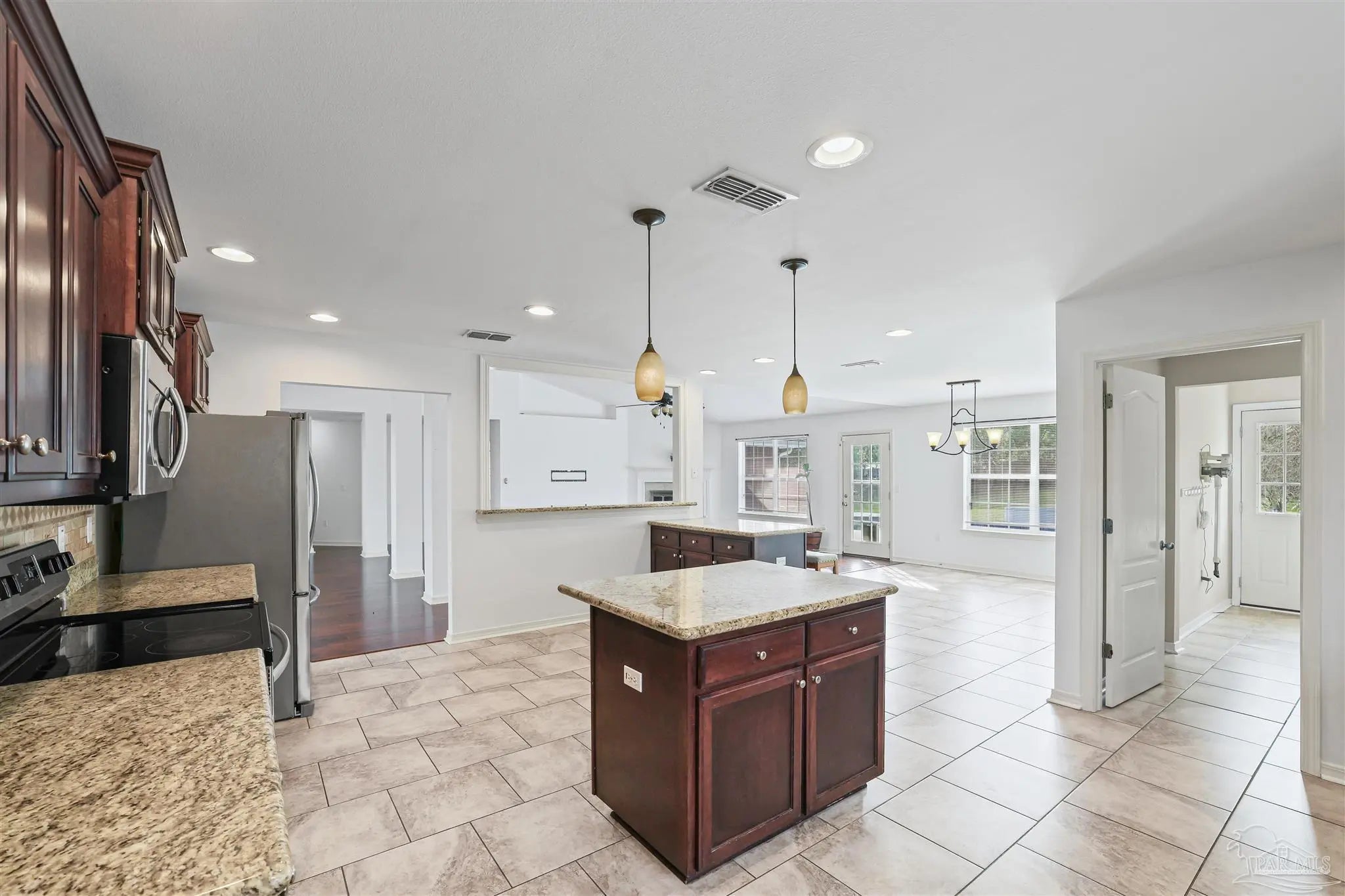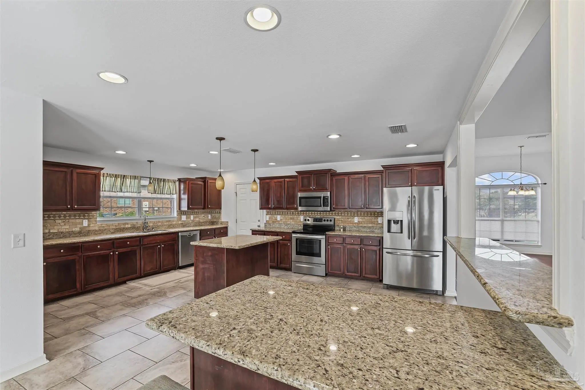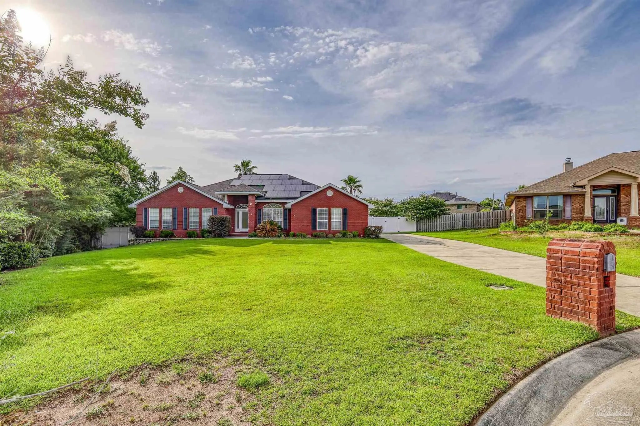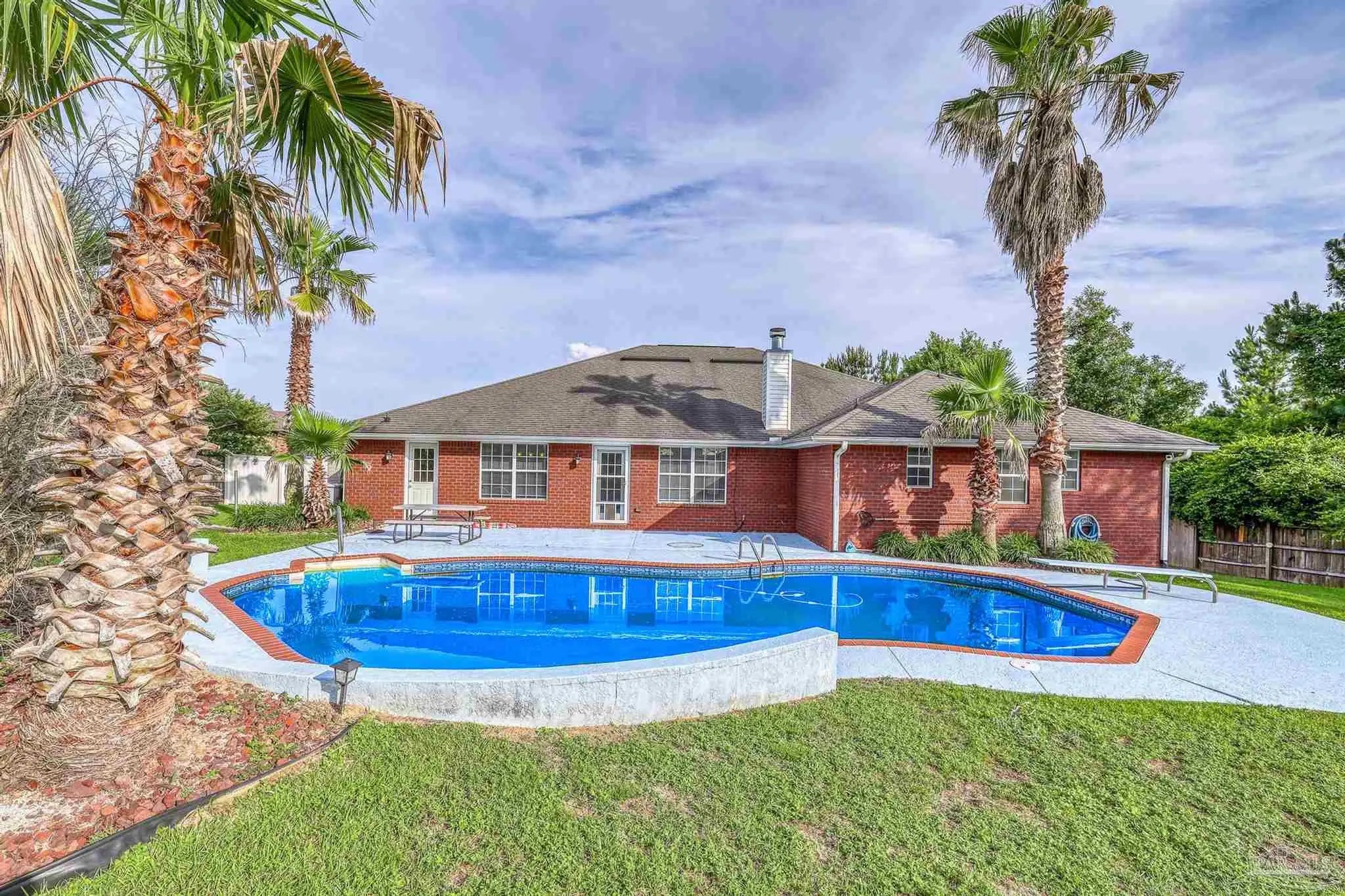 A MUST SEE***BEST VALUE in the neighborhood! SPACIOUS home tucked away in a quiet cul-de-sac in a well-established neighborhood. This 4-bedroom, 3-bath brick home offers a perfect blend of comfort, space, and style. From the oversized driveway and side-entry garage to the inviting front entry, this home welcomes you with open arms. Step inside to find vaulted ceilings, a bright formal dining area, and a spacious living room with a corner gas fireplace and elegant pillars that define the space while keeping it open. The chef-style kitchen is a standout, featuring granite countertops, a center island, breakfast bar, ample cabinetry, and a walk-in pantry that connects to the laundry room and backyard. The adjacent breakfast nook is large enough for an 8-person table and could easily serve as a second dining space, office, or hobby area. On one side of the home, you’ll find all four bedrooms and three full baths. The primary suite offers high ceilings, two walk-in closets, and a luxurious en suite with a soaking tub, tiled shower, and dual vanities. Guest rooms are generously sized with spacious closets and share access to two full guest baths. Fresh, neutral paint throughout gives you a clean canvas to personalize. The true showstopper is the in-ground pool, surrounded by palm tree landscaping and a new liner (2024). The large patio offers plenty of space for outdoor dining, grilling, and relaxing. Sitting on over a quarter of an acre, this backyard is built for entertaining. Paid-off solar panels provide energy savings for years to come. Current eclectic bill is around $25 a month. This Milton home is the ideal setting for peaceful living and joyful gatherings. Schedule your private tour today and fall in love with your new retreat!