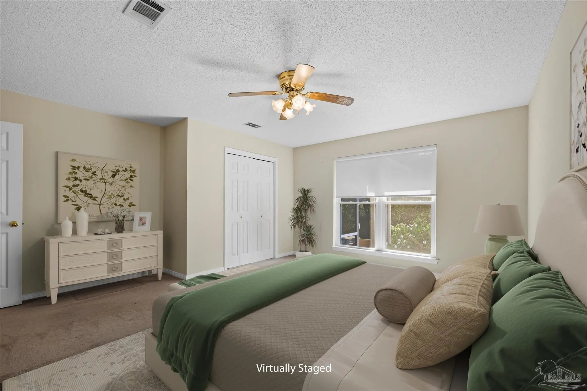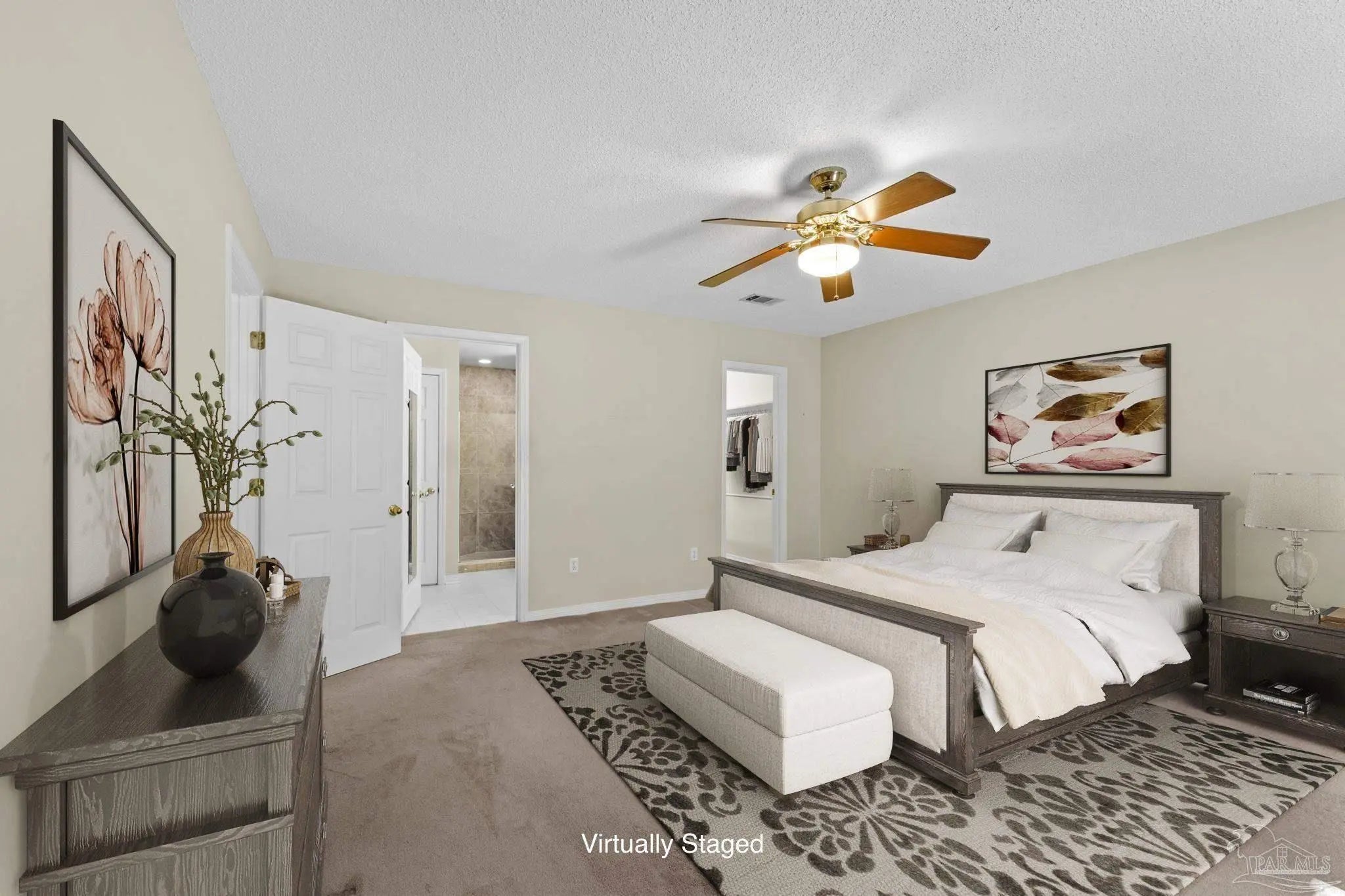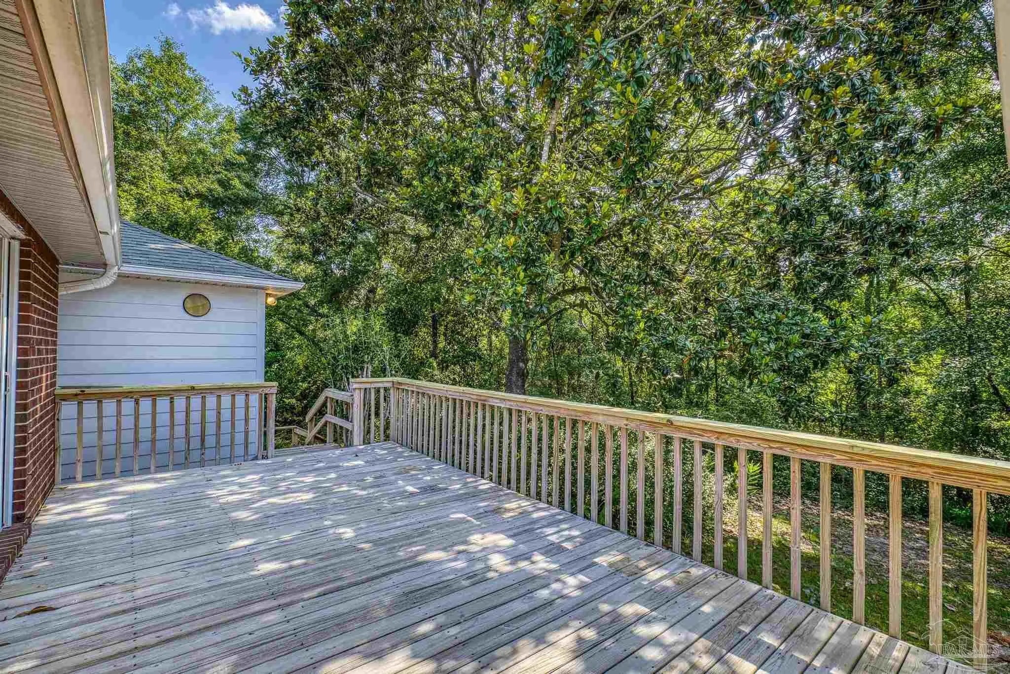 Set on just over an acre of peaceful, tree-lined land, this well-maintained 3-bedroom, 2-bathroom home offers space, privacy, and a functional layout. The split floor plan places the primary suite in its own wing off the kitchen, featuring a large ensuite with double vanities, a standing shower, custom-shelved walk-in closet, and sliding glass doors that open to a wooden deck overlooking the trees—fantastic for bird watching. Two additional bedrooms on the opposite side of the home share a full jack-and-jill bath and offer large closets. The semi-open kitchen includes a cozy breakfast nook with a wet bar and connects to a spacious living area with high ceilings. Double doors lead to a bright sunroom with its own mini-split A/C, providing year-round comfort and backyard views. At the rear of the lot, a manmade pond with a wooden walkway and small deck creates a tranquil spot for nature watching. A sprinkler system pulls from the pond to keep the landscape lush. The home features an attached two-car garage plus a detached garage ideal as a workshop or studio. Additional highlights include a whole-home generator (recently serviced and covered through 2025), a new water heater installed in 2024, septic with lift station, functional kitchen appliances, and freshly deep-cleaned carpets. This property combines comfort, practicality, and serene outdoor living—all in a private, natural setting.