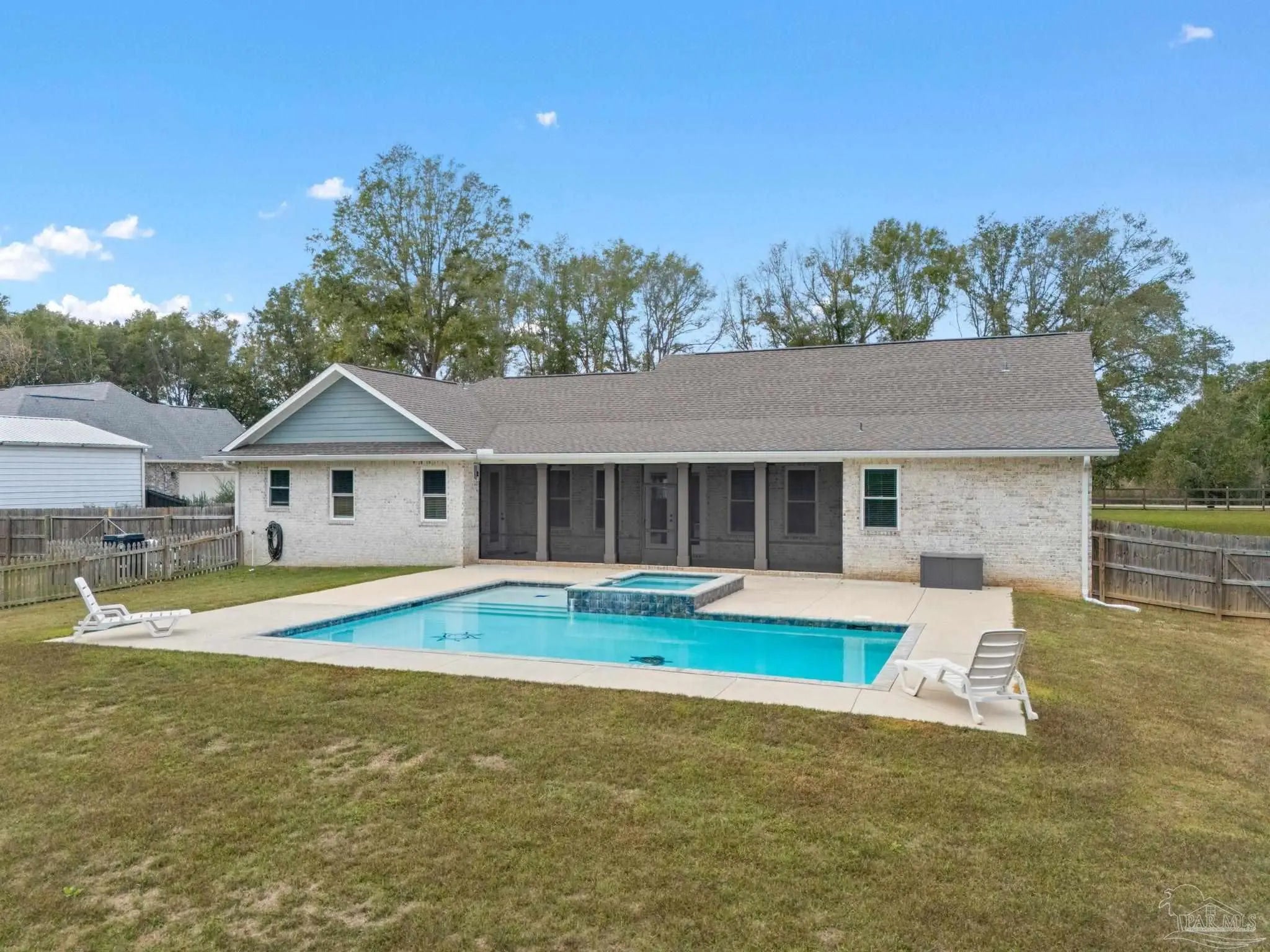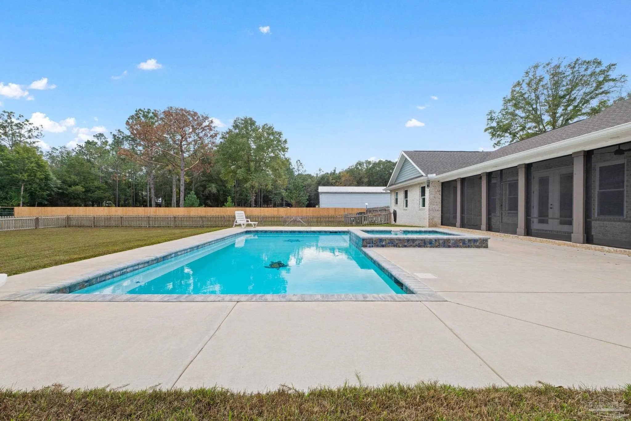 Discover unparalleled craftsmanship and peaceful country living in this one-of-a-kind custom-built estate nestled on nearly 5 pristine acres. Featuring 4 spacious bedrooms, 2.5 baths, 2,524 sq. ft. of living space, plus an office/flex room, this home offers thoughtful design, quality finishes, and the perfect blend of comfort and style. Step inside to an inviting open-concept living area with a split floor plan, high ceilings throughout, and a stunning vaulted great room accented by a wood beam. The gourmet kitchen is an entertainer’s dream, showcasing a massive 4' x 8' center island, granite countertops, shaker-style soft-close cabinetry, tile backsplash, hood vent over the range, and a walk-in pantry with custom built-in shelving. Hand-crafted barn doors add charm to the office and master bathroom entries, while durable luxury vinyl plank flooring flows seamlessly throughout the home for easy maintenance. The serene master suite features a trey ceiling, private access to the back porch, and a luxurious ensuite offering a custom tile shower, freestanding soaking tub, and dual vanities. A tankless gas water heater ensures endless hot water. Each guest bedroom includes walk-in closets and ceiling fans, providing comfort and functionality for family or guests. Outdoor living is elevated with oversized covered front and back porches. Enjoy breathtaking sunsets from the west-facing front porch, or host gatherings on the back porch—already plumbed and ready for a future outdoor kitchen. The showstopper of this property is the custom gunite pool with integrated hot tub, designed for year-round enjoyment. Both the pool and hot tub are heated and cooled, making them perfect for all seasons—whether you’re unwinding in summer or soaking under the stars on a cool evening. Additional bonuses include a brand-new 24’ x 24’ shop with roll-up door, perfect for hobbies, storage, or a workshop, plus a 40-ft Connex storage container for added convenience. This exceptional prope
