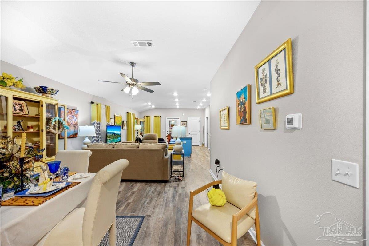 Welcome to 138 Georgia Street, a beautifully maintained 3-bedroom, 2-bathroom home perfectly situated in a prime, short distance location—just a little bit from dining, shopping, and major employers. This residence seamlessly blends modern updates with classic charm, offering both comfort and convenience for everyday living. Step inside to an open-concept layout filled with natural light, where luxury vinyl plank floors flow throughout and soaring 9-foot ceilings create an airy, inviting atmosphere. Every detail has been thoughtfully curated to balance style and functionality, making this home ideal for both relaxing and entertaining. Whether you’re hosting a casual brunch or preparing a dinner for friends, this kitchen offers ample space and modern touches to make every meal an experience. The adjoining dining and living areas provide a seamless transition for gatherings, family time, or cozy evenings by the fire. Retreat to the serene primary bedroom or one of the two additional bedrooms. Two full bathrooms ensure ample space for family, guests, or a home office. Step outside to the covered back porch, a peaceful spot to enjoy your morning coffee, unwind after work, or entertain under the Florida skies. The oversized one-car garage adds extra storage and convenience, while the beautiful yard enhances the curb appeal of this charming property.