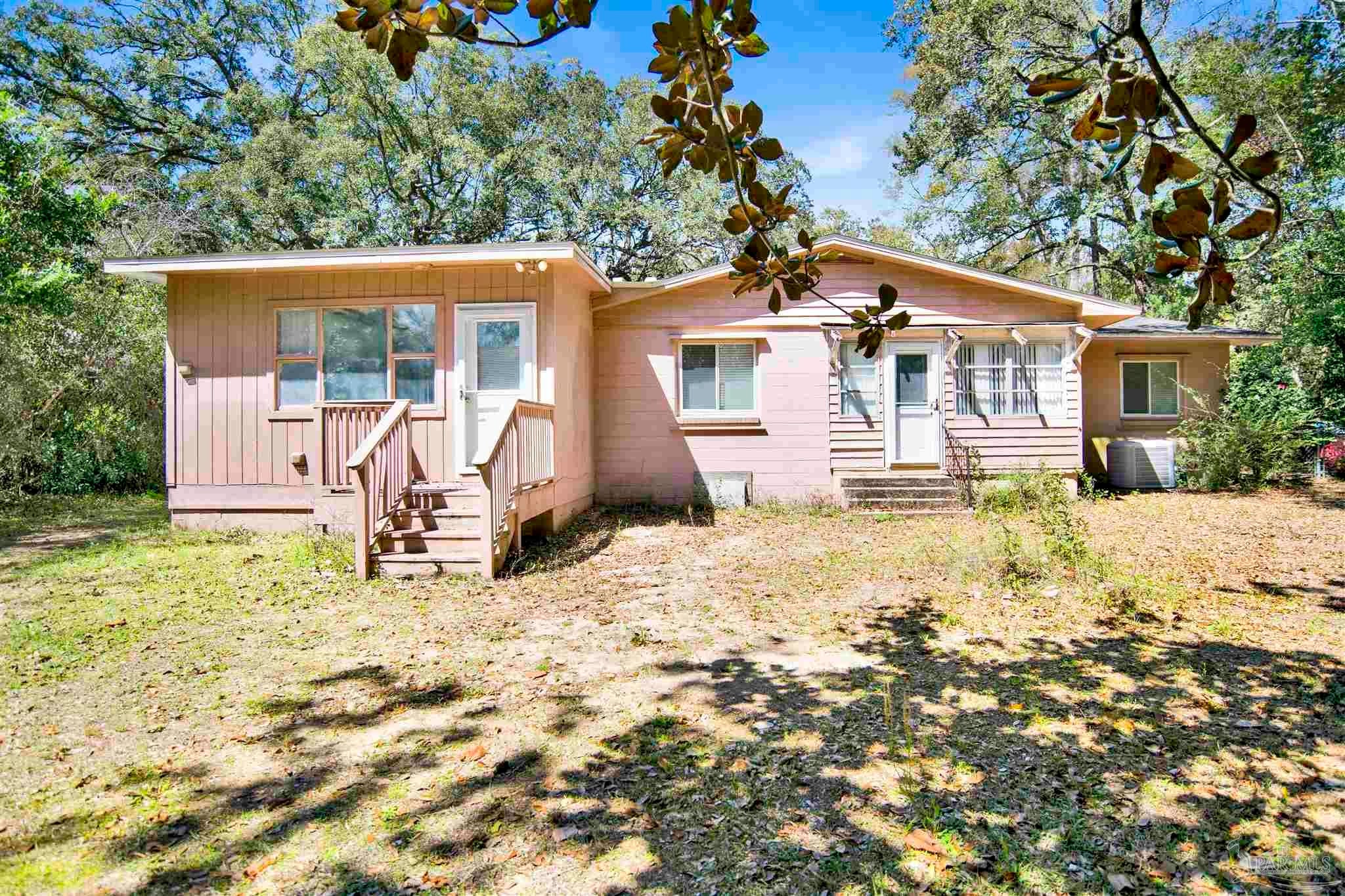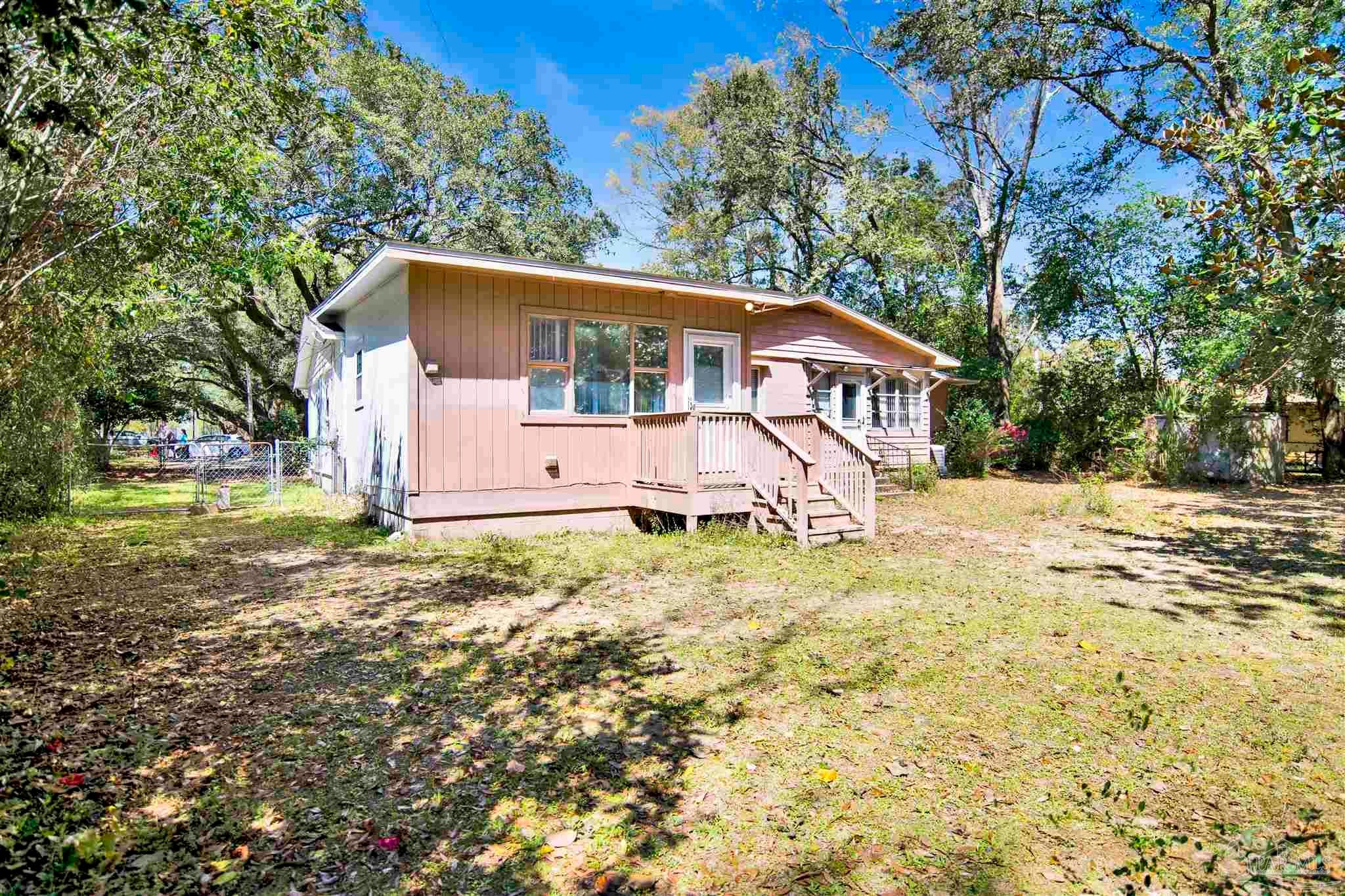 ATTENTION INVESTORS, FLIPPERS, BUILDERS....... investment opportunity on nearly an acre in Pensacola! This versatile property in Pensacola city limits offers a 3-bedroom, 2-bathroom main house with the potential to create a 1-bedroom, 1-bathroom apartment—perfect for establishing a dual rental income stream. Both dwellings can easily have separate utilities, enhancing rental potential. Situated on .87 acre, this expansive lot features mature trees, ample outdoor space, and beautiful spring-flowering camellia bushes in the front yard. Original hardwood flooring runs throughout the main house, including all bedrooms, adding character and timeless appeal. Additional features include inside laundry and two sizable storage sheds equipped with electricity, providing practical solutions for storage or potential workshop space. Conveniently located, this property is minutes away from Cordova Mall, Sacred Heart Hospital, Baptist Hospital, Woodlands Medical Facility, shopping venues, and Pensacola International Airport. Don't miss out on this unique opportunity to maximize investment potential or create a multi-generational living space in a prime, central location.