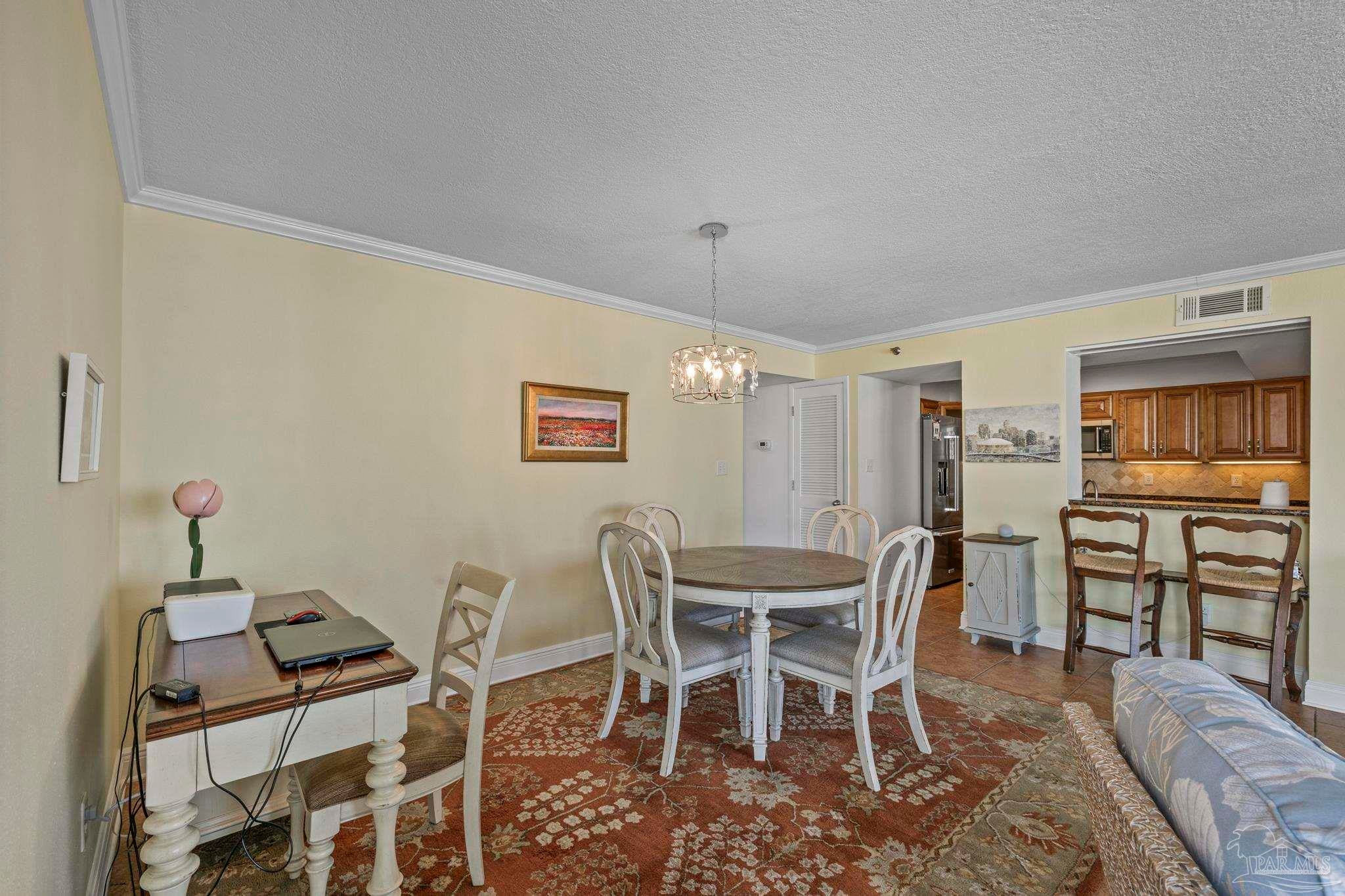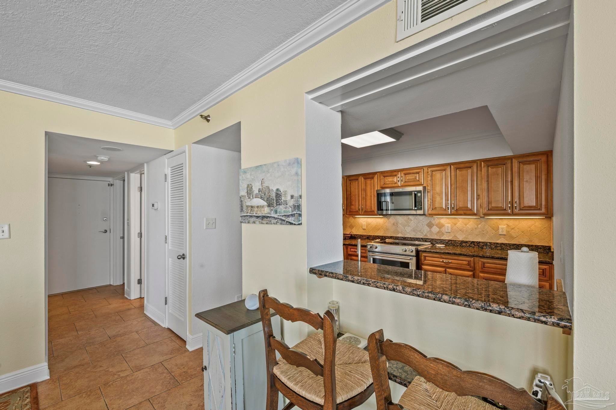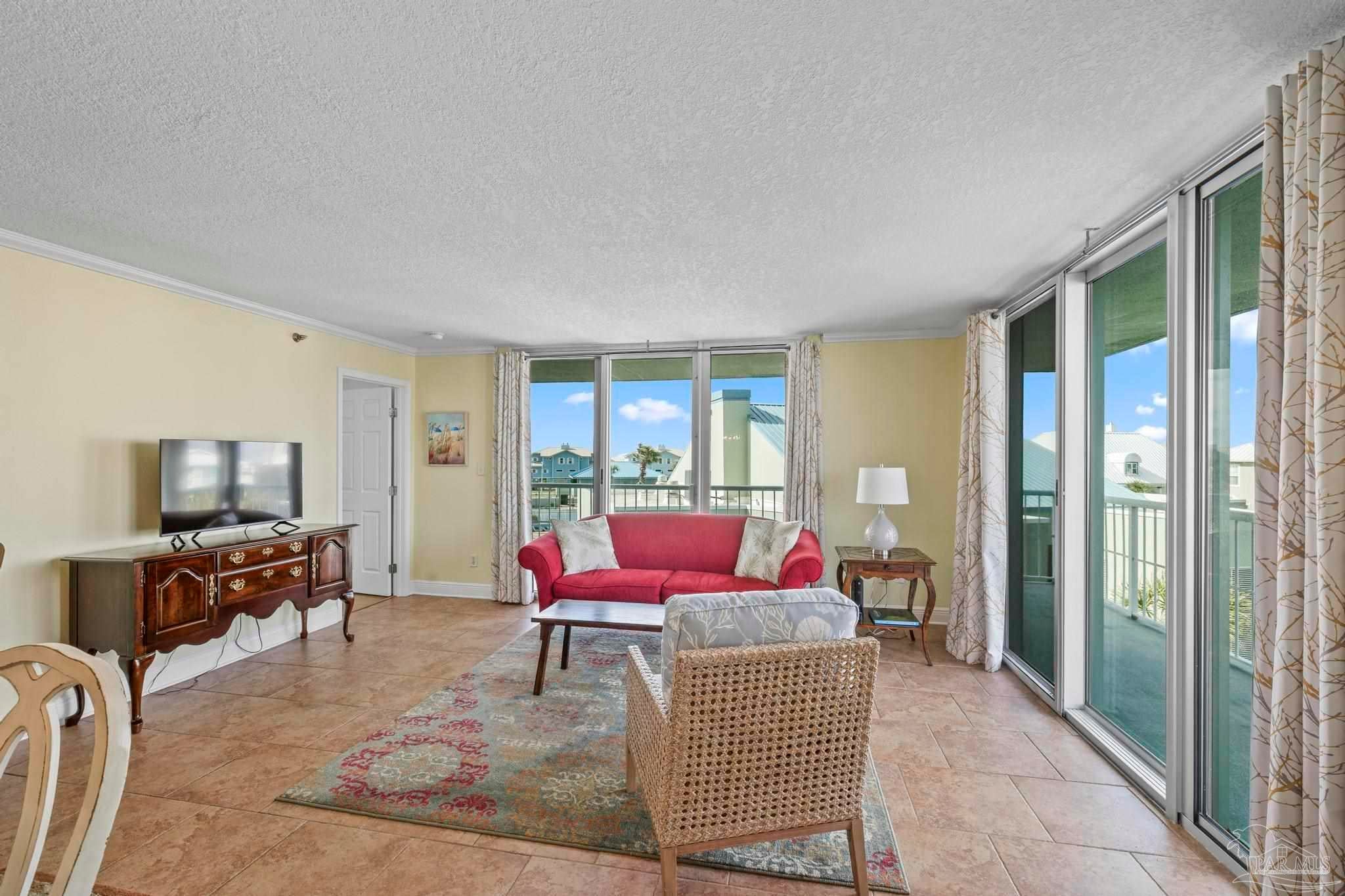 Experience the beauty of Pensacola Beach from this stunning 2-bedroom, 2-bath corner unit in the highly sought-after Tristan Towers. Located just steps from the sugar-white sands and calm waters of the Gulf, this beautifully renovated condo offers breathtaking views of Santa Rosa Sound and a glimpse of the Gulf of Mexico. Floor-to-ceiling sliding glass doors open to a spacious wrap-around balcony—perfect for enjoying coastal breezes and sunsets. This condo features a modern kitchen with granite countertops, ample cabinetry, and stainless steel appliances. The large master suite boasts bamboo wood flooring, balcony access with Gulf views, a walk-through closet with built-ins. HVAC system (2017), water heater, and in-unit washer/dryer (2019).Tristan Towers is a gated community offering exceptional amenities: a waterfront pool, tennis courts, fitness center, clubhouse, and a private fishing pier. Whether you're looking for a full-time residence, a vacation getaway, or a strong investment opportunity, this property checks all the boxes. Don’t miss your chance to own a slice of paradise on Pensacola Beach!
