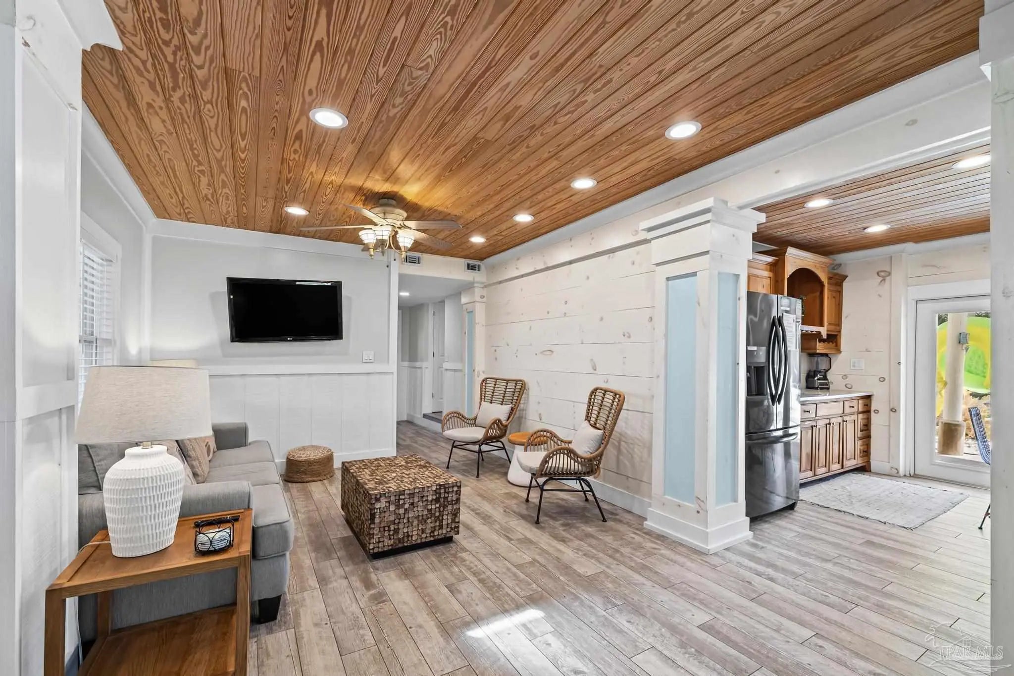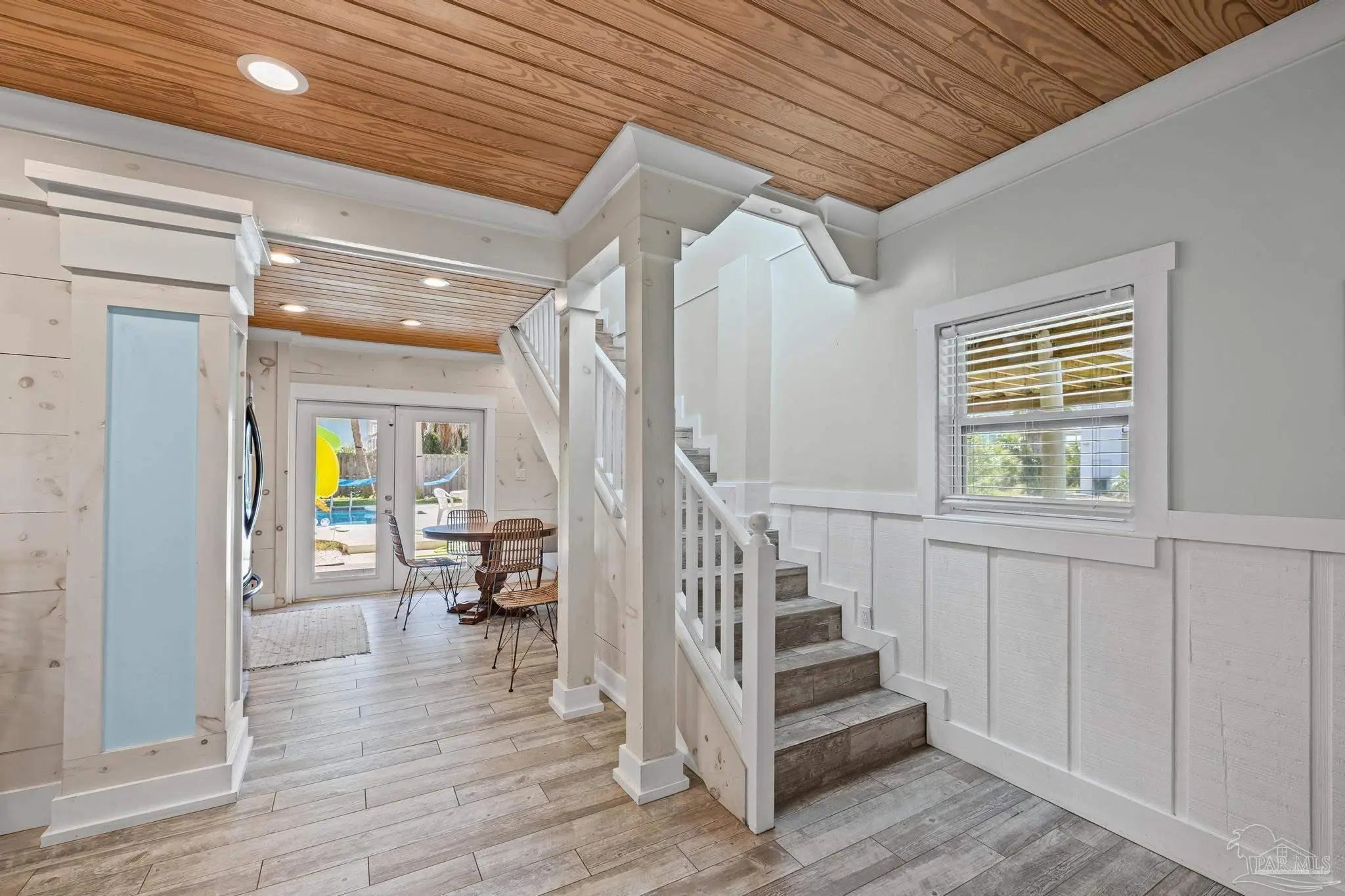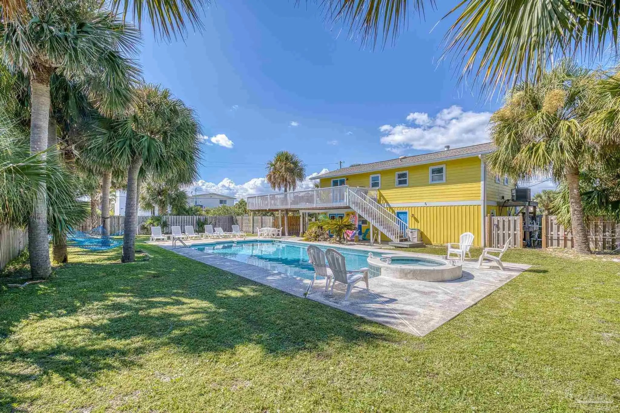 Welcome to Your Slice of Paradise! Get ready to soak up the sun and dive into the beach life in this dreamy two-story coastal retreat! With a sparkling 20 x 40 saltwater heated pool (hello, built-in hot tub!) and a breezy upper deck perfect for sunset cocktails, this home is the ultimate staycation spot—or a fabulous income-producing short-term rental! ?? Upstairs, you’ll find a bright and open living/dining/kitchen combo made for good vibes and great gatherings. Two comfy bedrooms and a beautifully remodeled bathroom offer the perfect blend of beachy charm and comfort. Downstairs (grandfathered in for insurance!) features a spacious master suite with a cozy sitting area and a fun, flexible family room—perfect for movie nights or turning into your own game zone. Just off the pool, there’s a wet bar with plenty of cabinet space and a full-size fridge, ideal for serving up poolside snacks and sunset drinks. And here’s the cherry on top: this beach beauty is being sold fully furnished! Just bring your swimsuit and start living the dream. Major recent upgrades include: • Brand new upstairs and downstairs HVAC • New pool equipment: computer, pump, spa pump, and heater • New electrical panel • New roof (2021) new windows, hurricane shutters, and roof straps through Rebuild NW Florida (2015) Just a short stroll to the sugar-white sands and emerald waters of the Gulf—or head north to the peaceful Intracoastal Waterway. Whether you’re looking for a dreamy full-time home, a vacation getaway, or a turn-key short-term rental, this one has it all. Paradise found—don’t let it slip away!